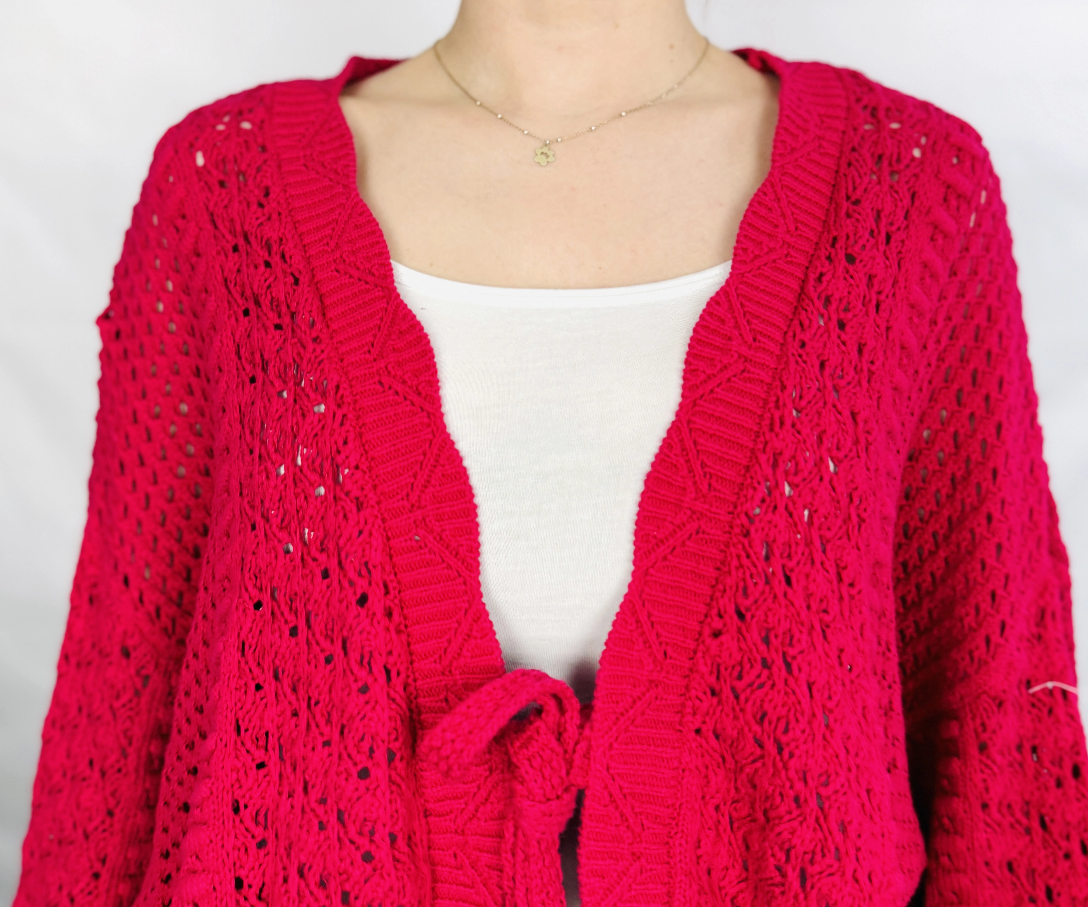 Amarantowy ażurowy kardigan z wiązaniem 4XL/5XL