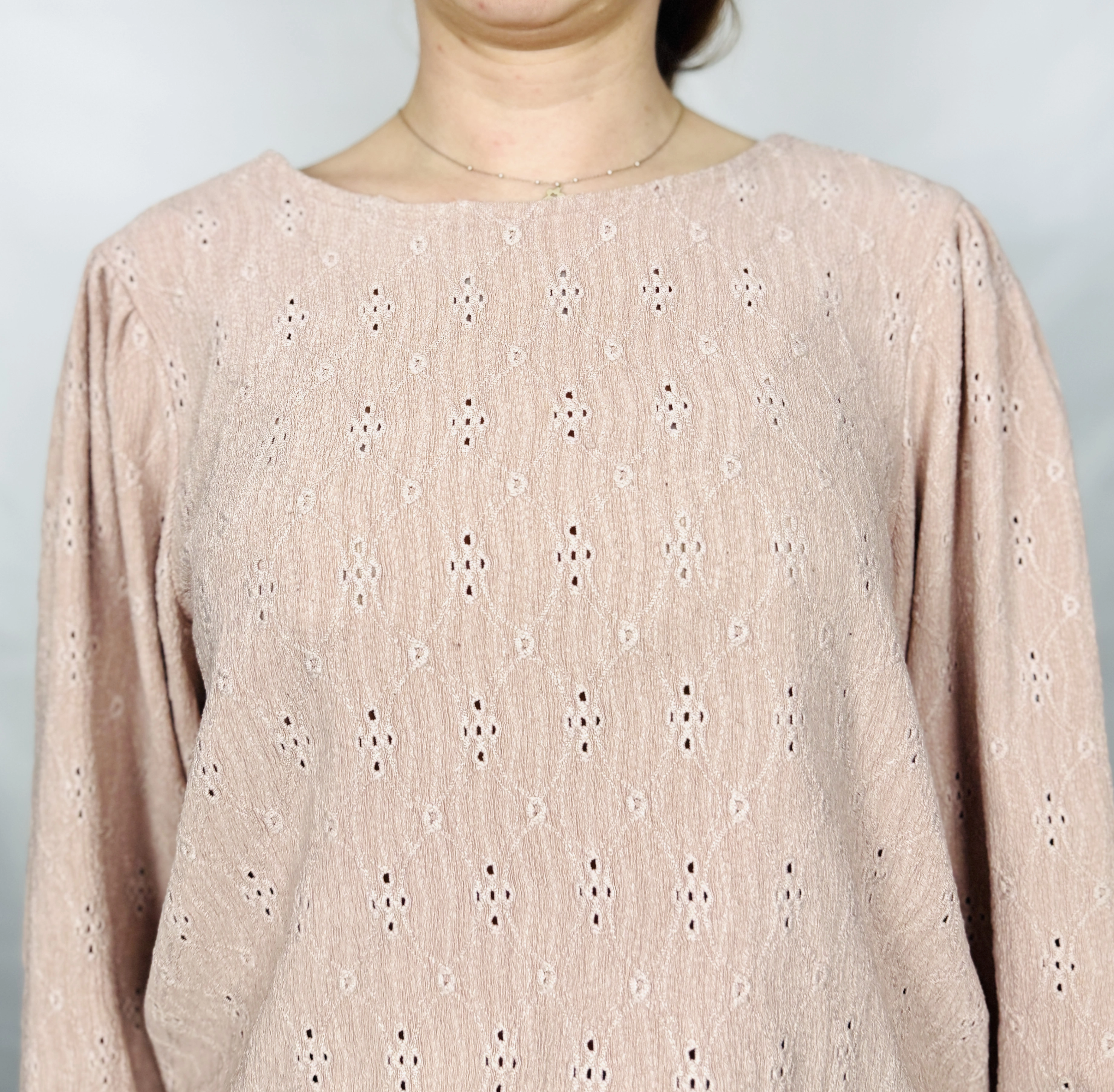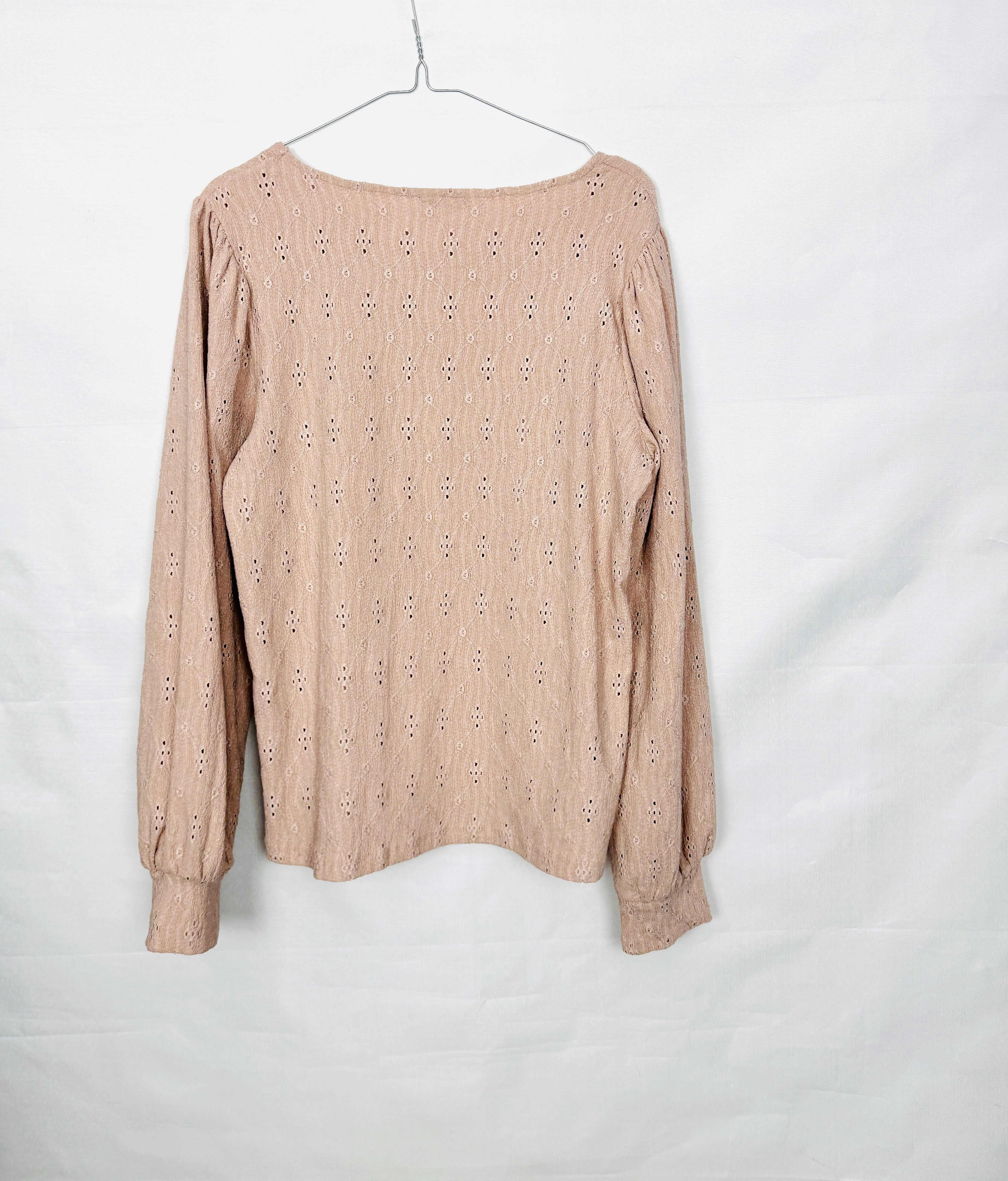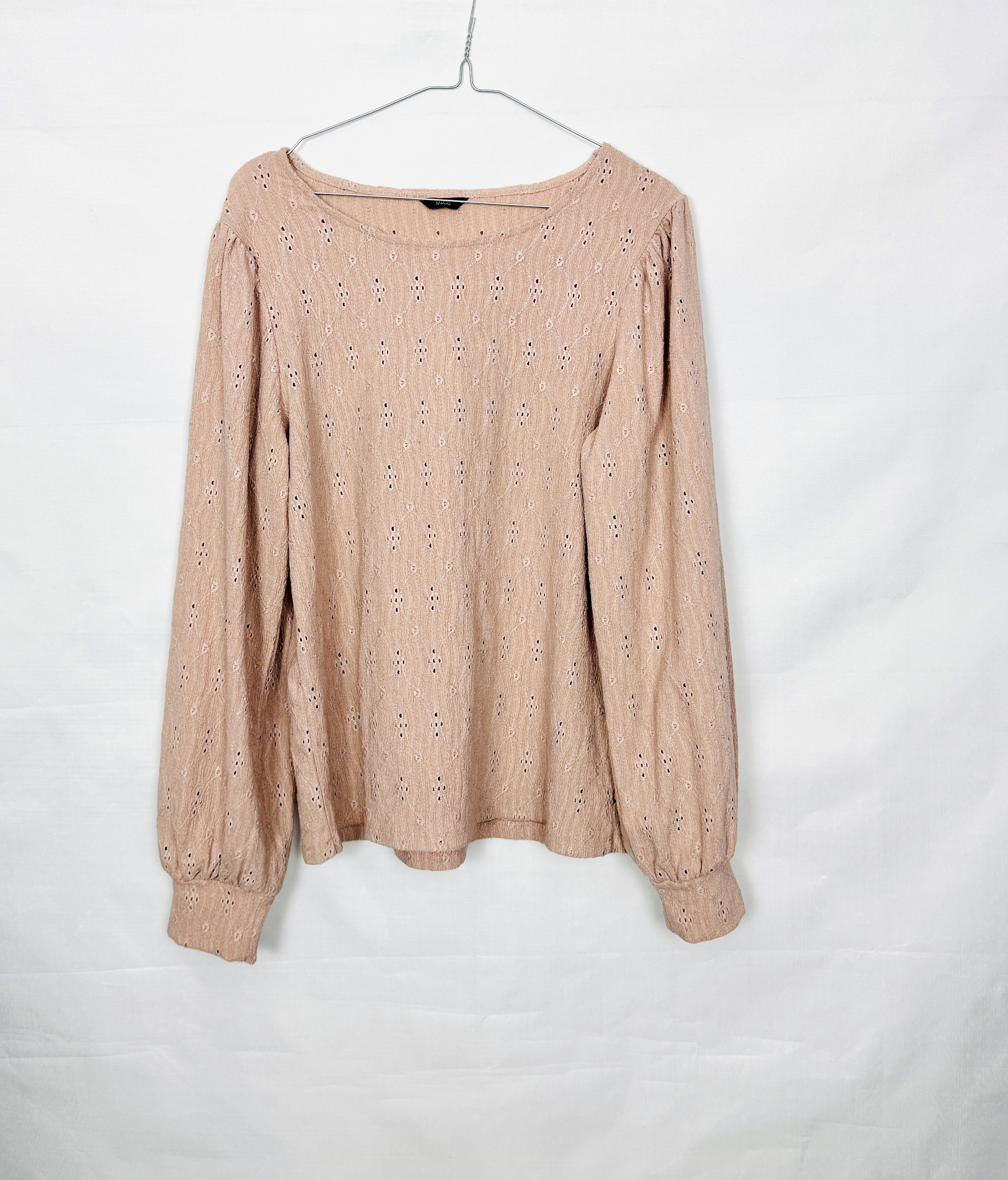 Ażurowa bluzka w pudrowym różu XL 42