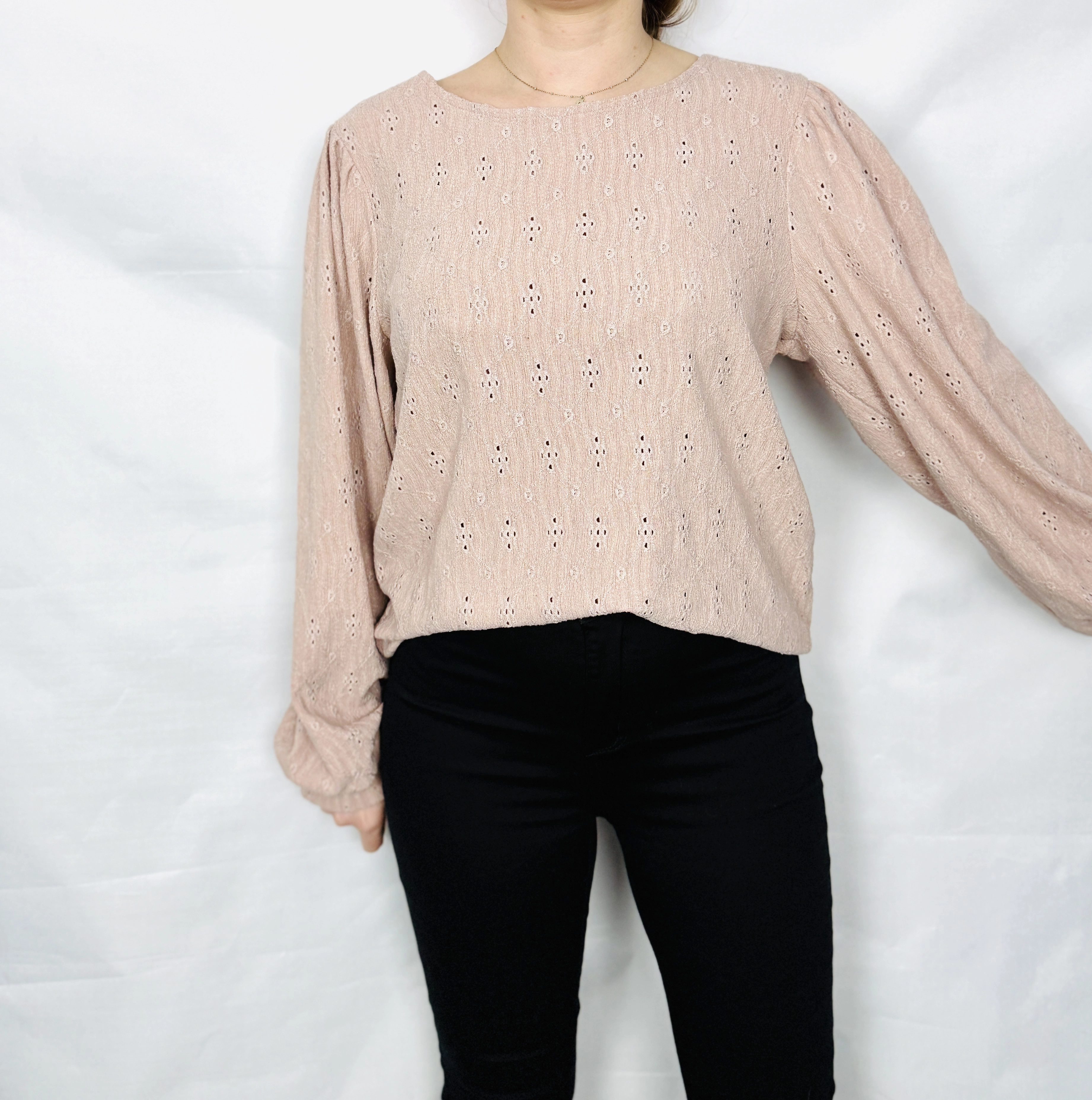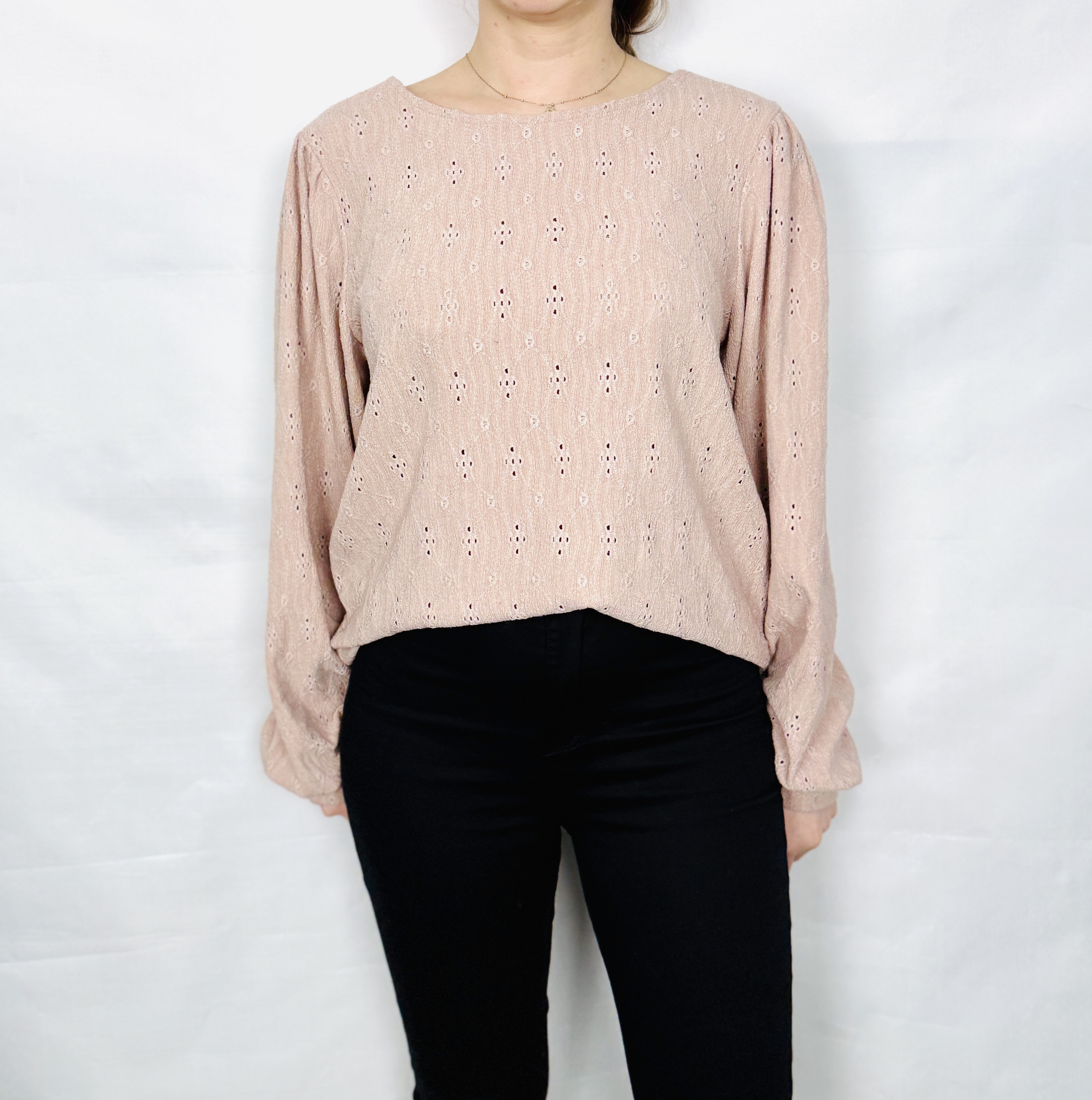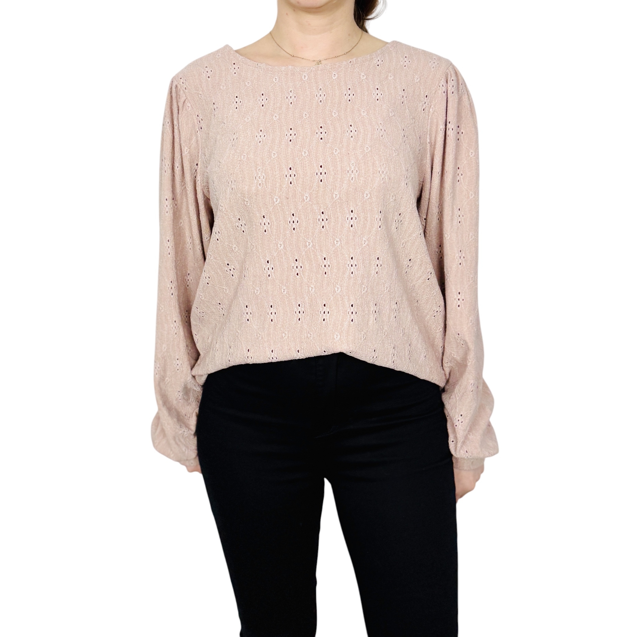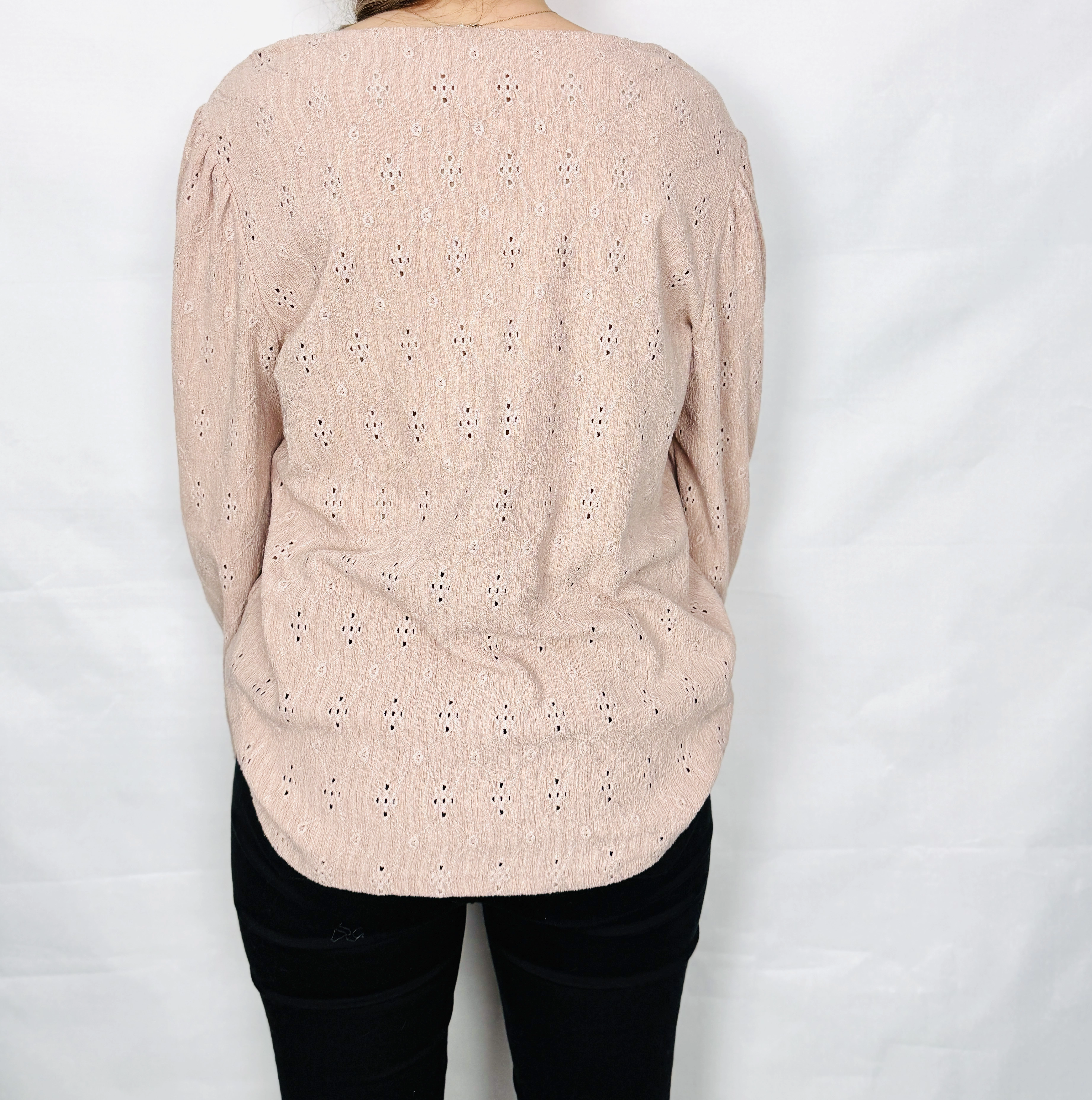 Ażurowa bluzka w pudrowym różu XL 42