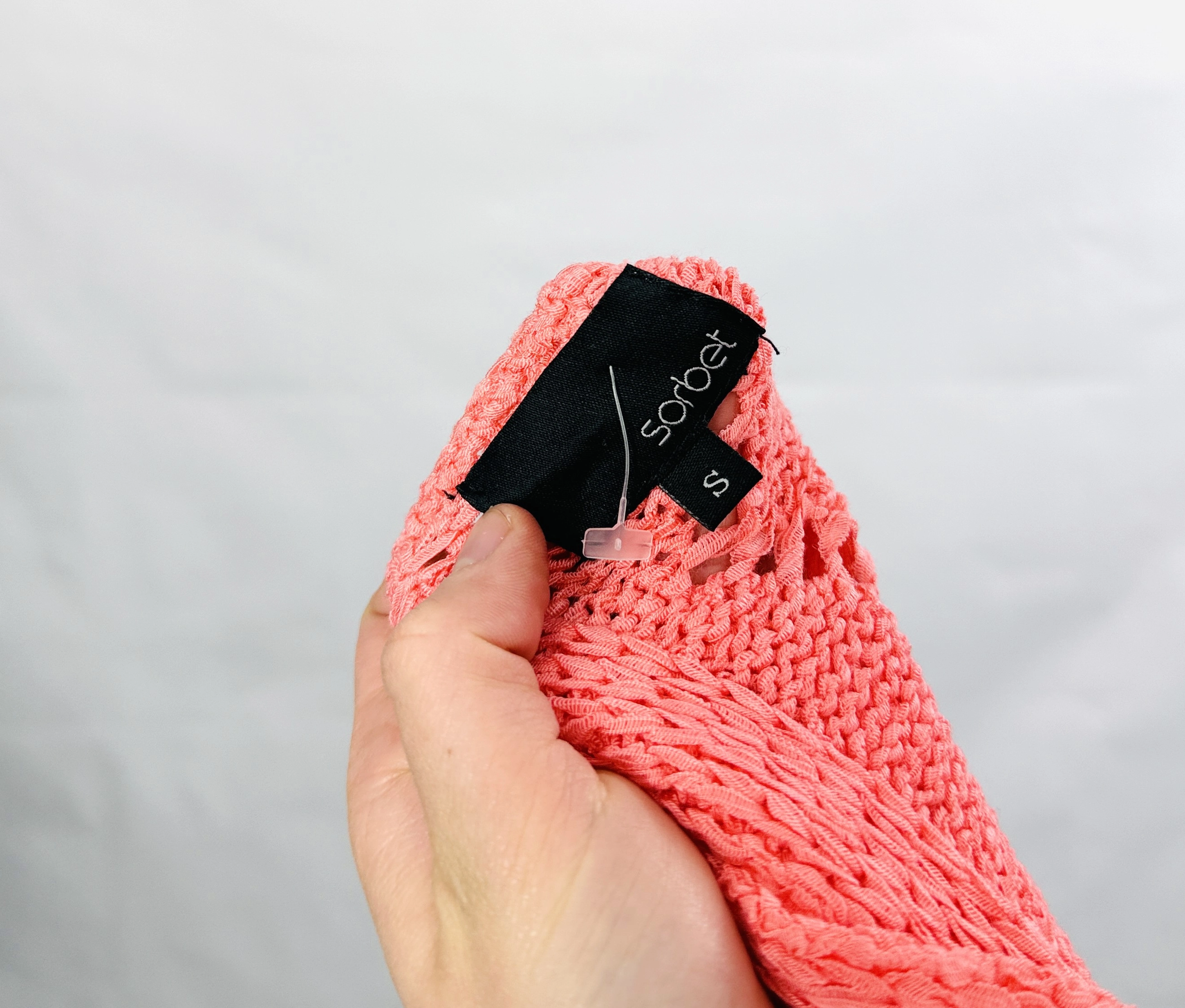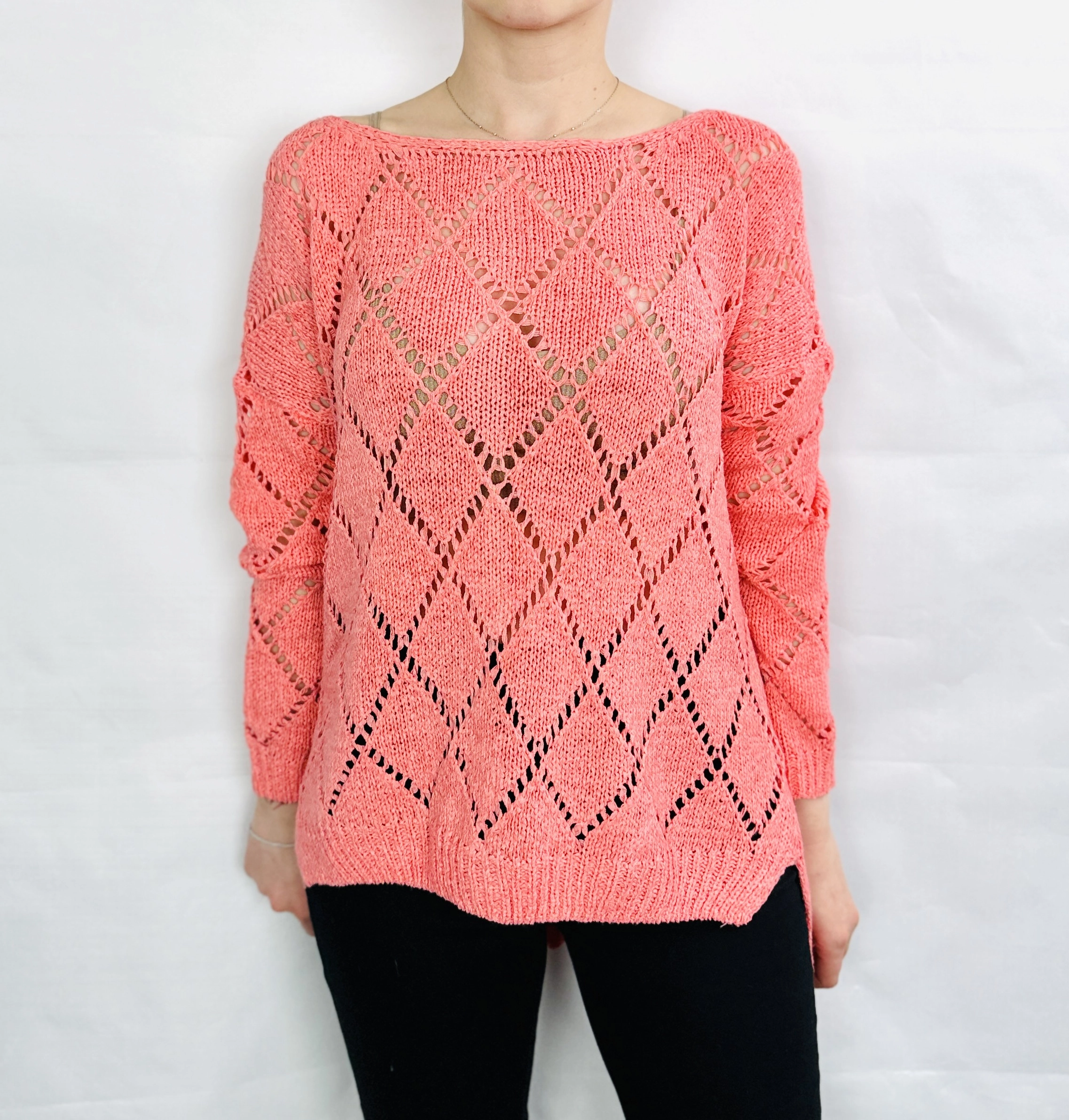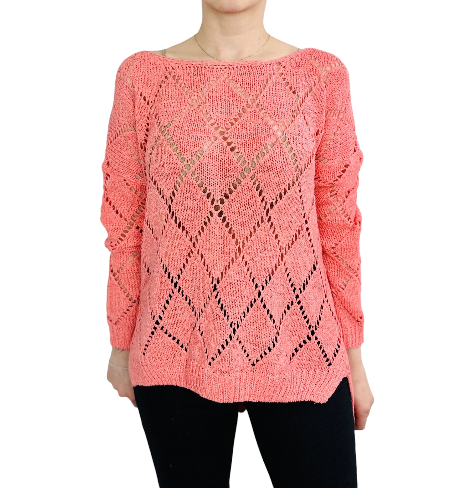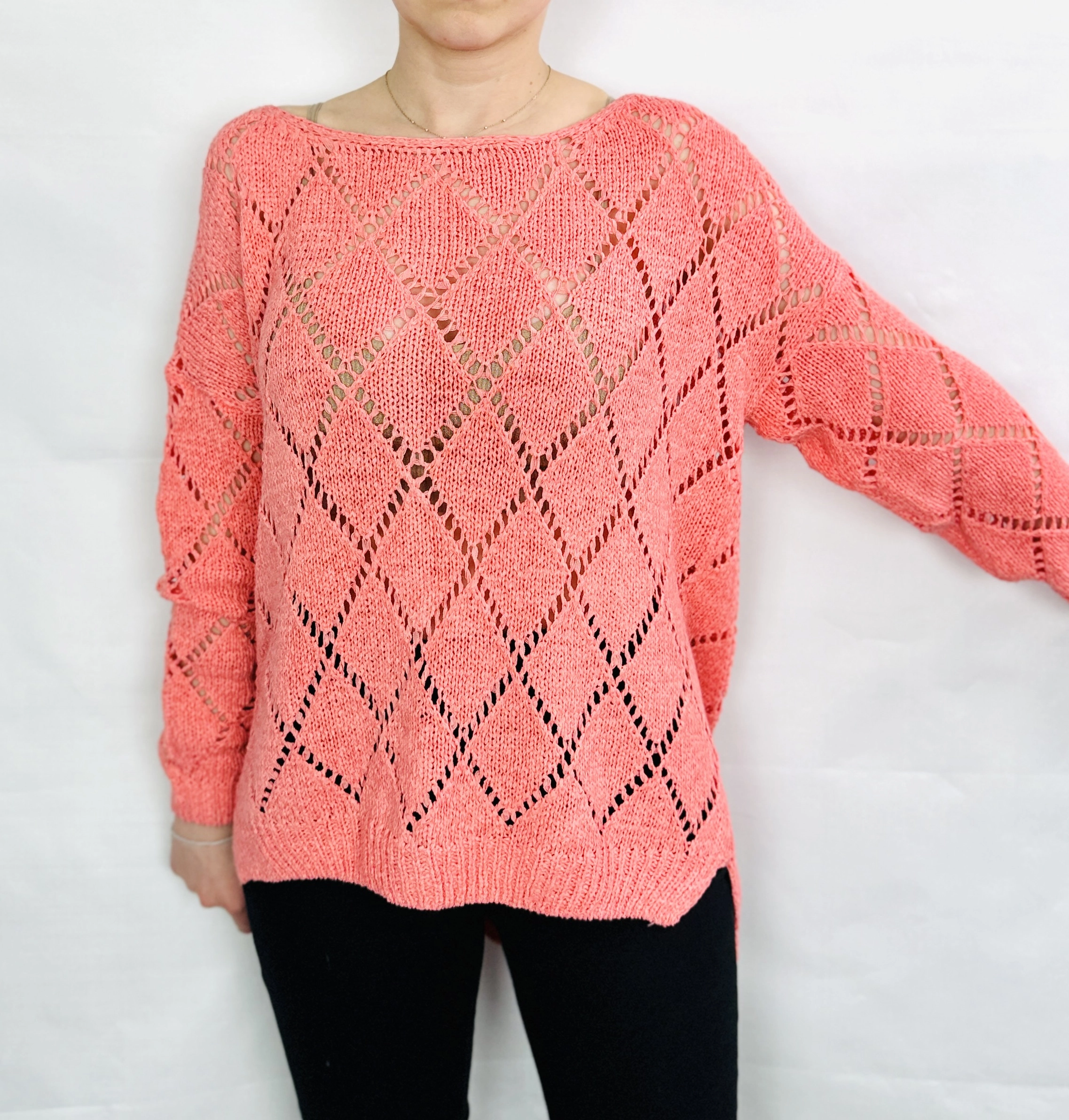 Ażurowy sweter w koralowym odcieniu S 36