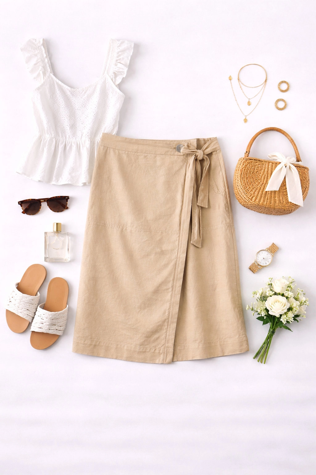W kwestii stylizacji beżowa lniana spódnica kopertowa midi to niezwykle wszechstronny element garderoby, który odnajdzie się w wielu letnich zestawach. Na co dzień stworzy idealny duet z prostym, białym topem na ramiączkach lub dopasowanym body oraz skórzanymi sandałkami, tworząc look pełen miejskiego luzu. Do pracy, w stylu smart casual, świetnie zaprezentuje się w połączeniu z lnianą koszulą w pastelowym odcieniu i klasycznymi espadrylami, podkreślając profesjonalny, a zarazem letni wizerunek. Beż spódnicy przepięknie komponuje się z bielą, błękitem, szałwiową zielenią oraz wszelkimi odcieniami brązu i złota. Na wieczorny spacer wystarczy dodać ażurowy sweter i delikatną biżuterię, by uzyskać stylizację pełną romantycznego wdzięku i kobiecej klasy.