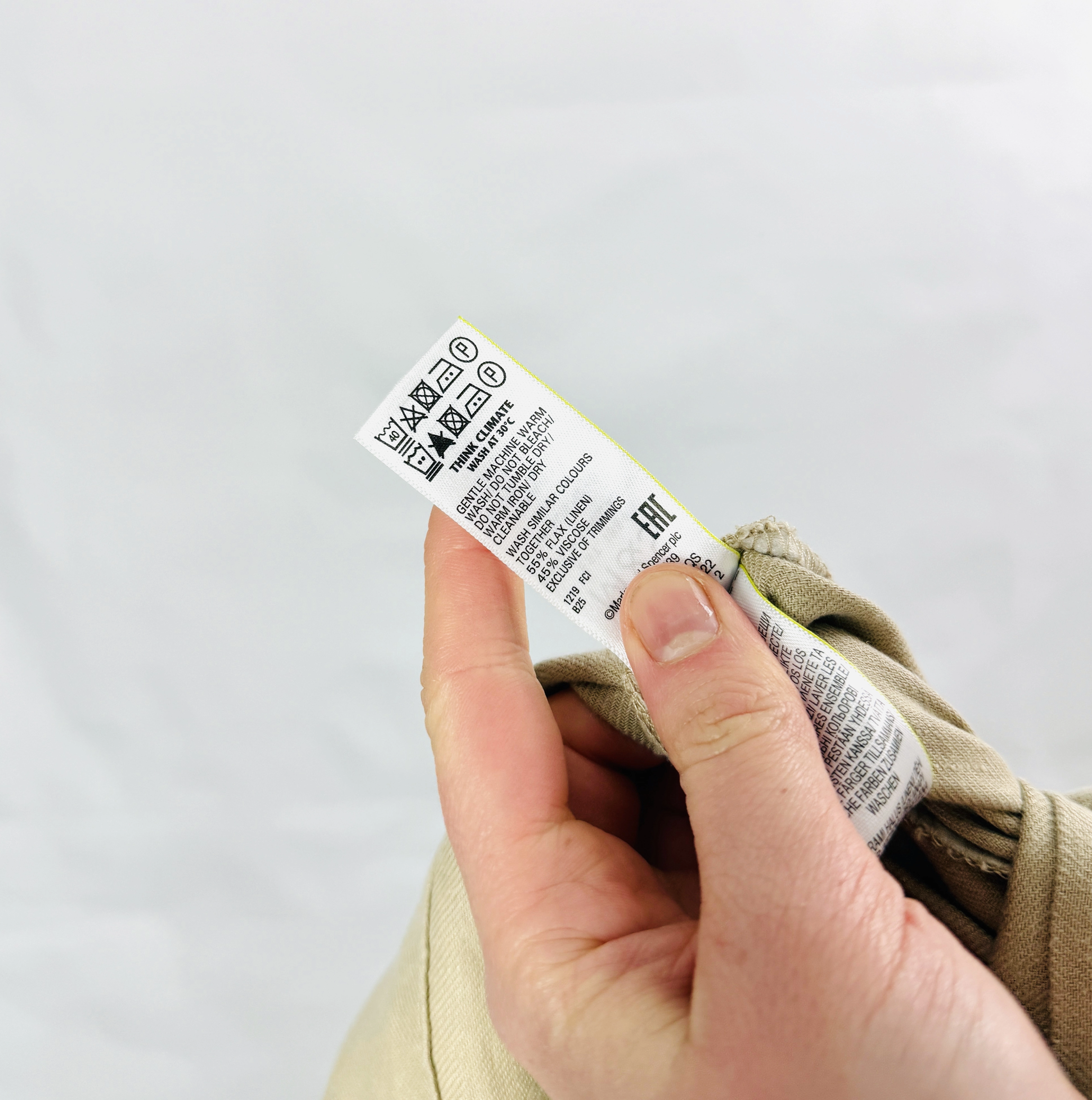 Materiał, z którego wykonano spódnicę, jest lekki i zwiewny, o charakterystycznej dla lnu, delikatnie nieregularnej strukturze, która podkreśla naturalny i szlachetny charakter ubrania. Tkanina jest matowa i przyjemnie chłodna w dotyku, co gwarantuje najwyższy komfort noszenia nawet w największe upały. Dzięki swojej strukturze spódnica miękko układa się na ciele, tworząc naturalne, estetyczne załamania, które dodają stylizacji autentyczności. Jasny beż materiału jest nasycony i jednolity, co sprawia, że całość prezentuje się bardzo świeżo i nowocześnie.