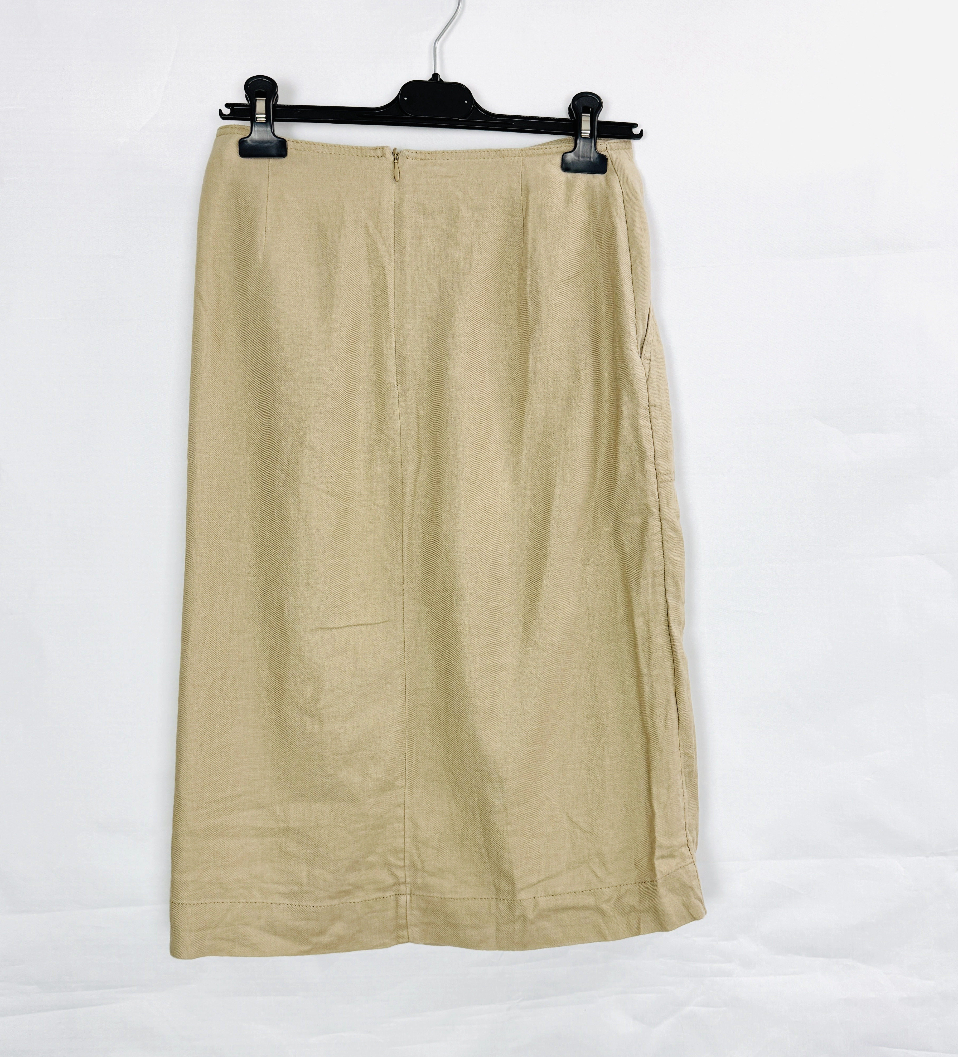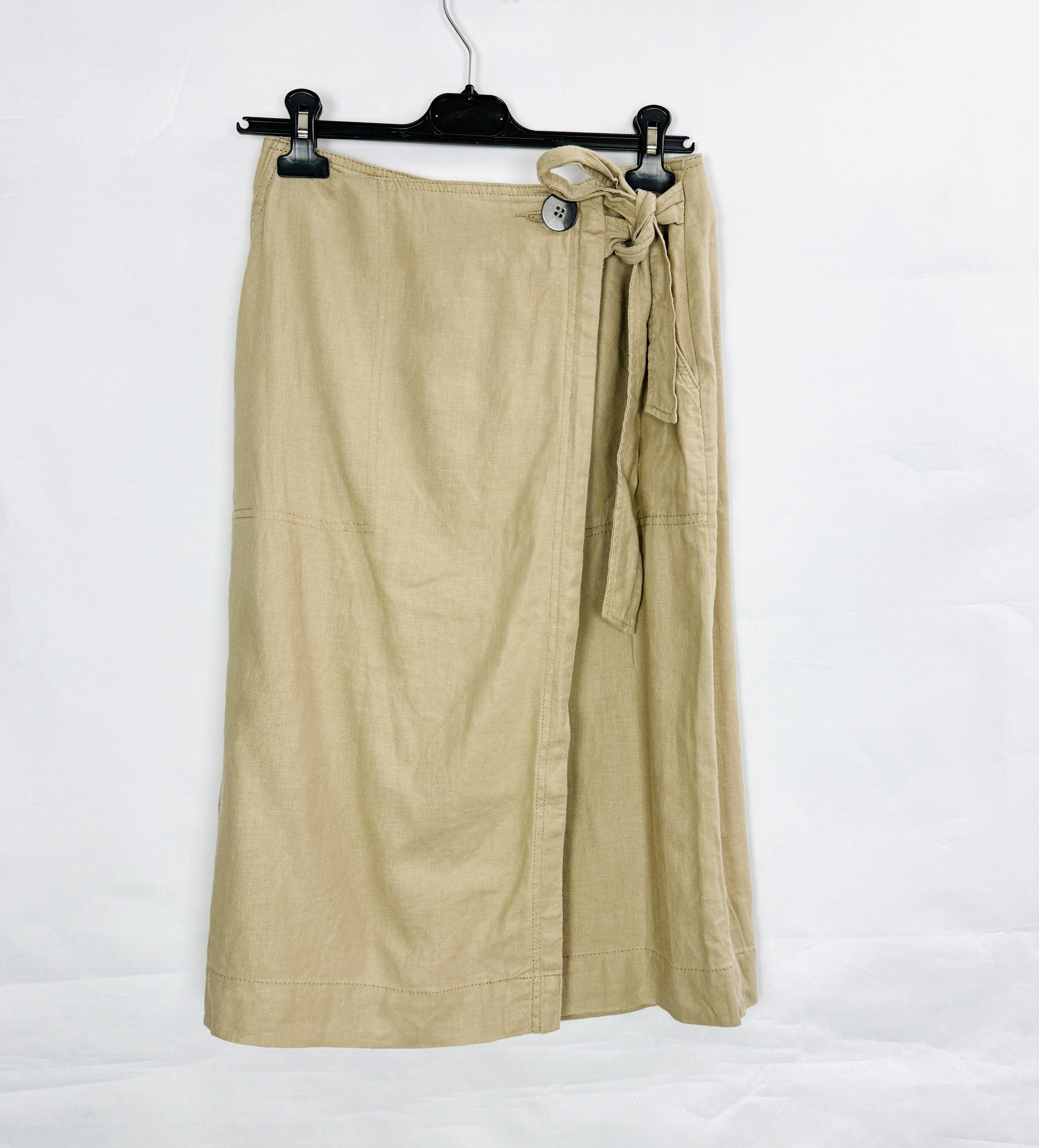 Beżowa lniana spódnica kopertowa midi S 36
