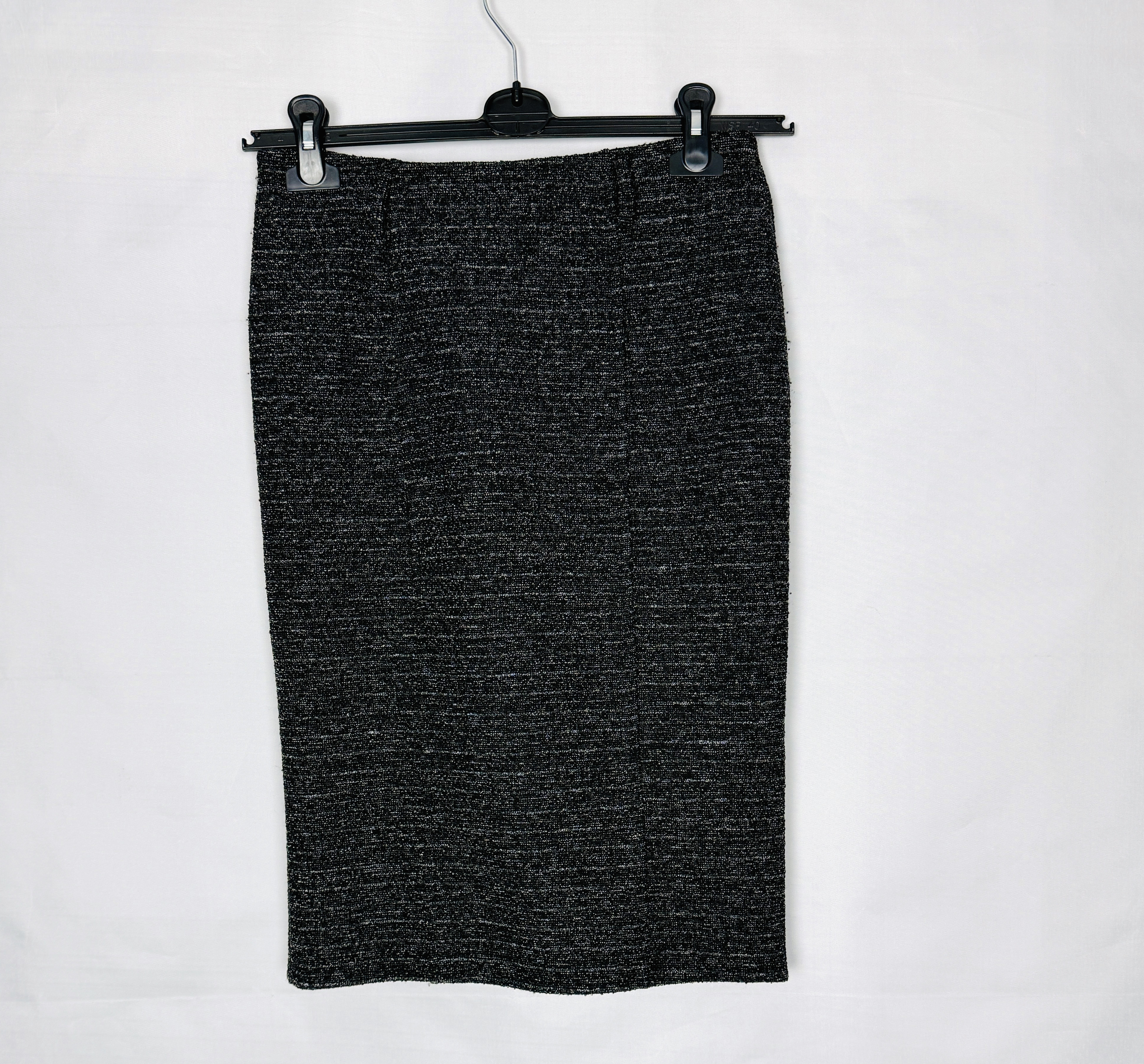 Powierzchnia materiału ma miękko układający się, lekko aksamitny wygląd o matowym wykończeniu; tkanina tworzy delikatne fałdki przy zgięciach, które dodają spódnicy naturalnego rytmu i autentycznego charakteru. Góra zachowuje zwartą, uporządkowaną linię, natomiast dół swobodnie opada, podkreślając lekko rozkloszowany profil. Dzięki temu spódnica ładnie balansuje pomiędzy formą a ruchem — nie opinając nadmiernie, nadaje sylwetce kobiecej lekkości.