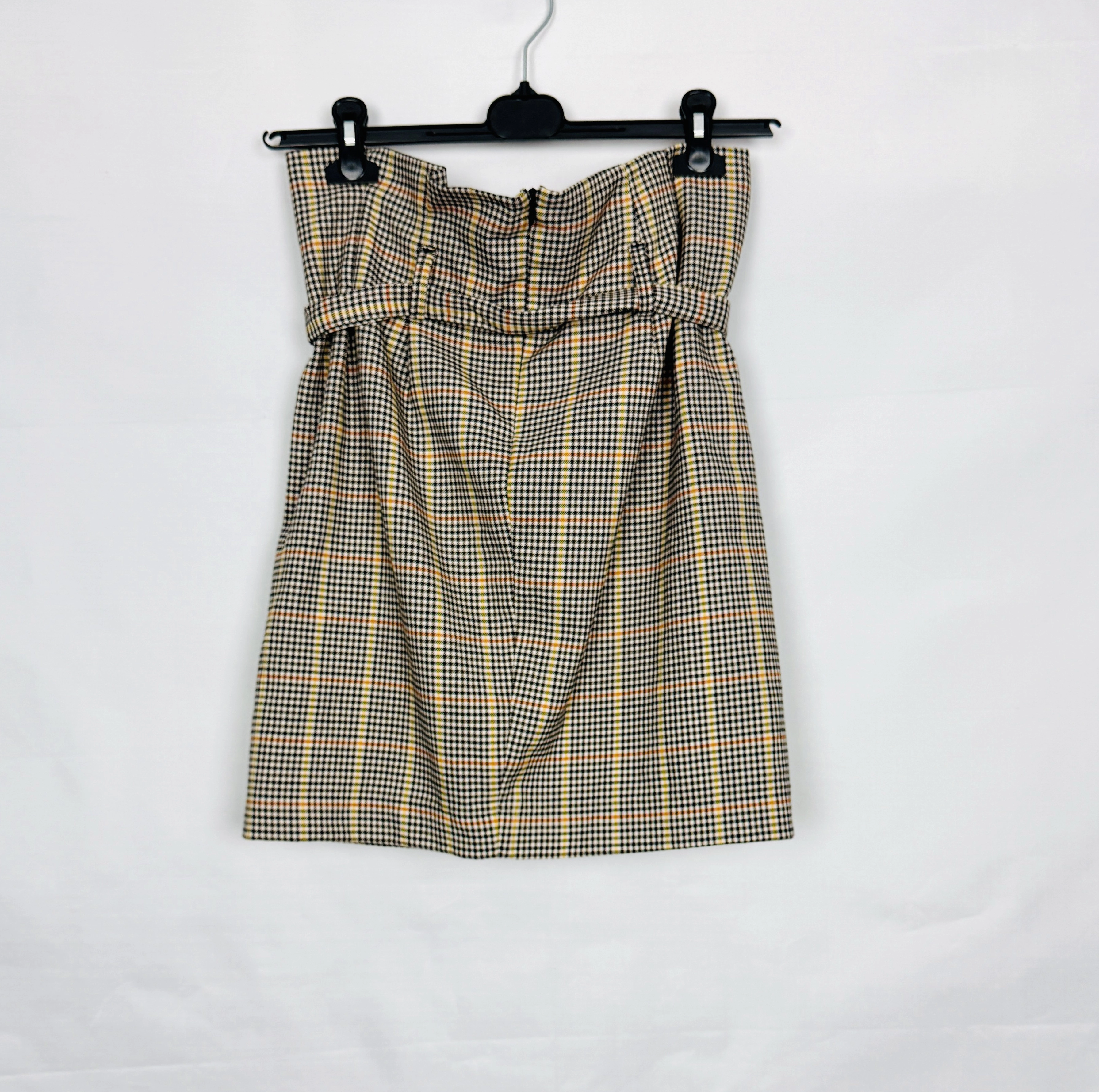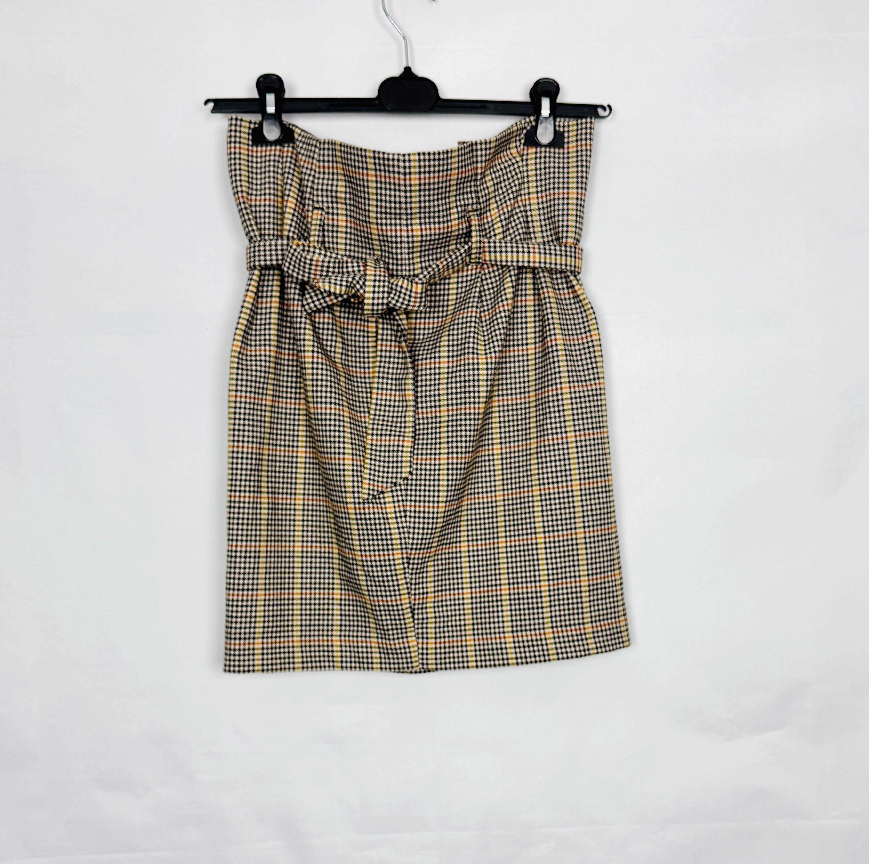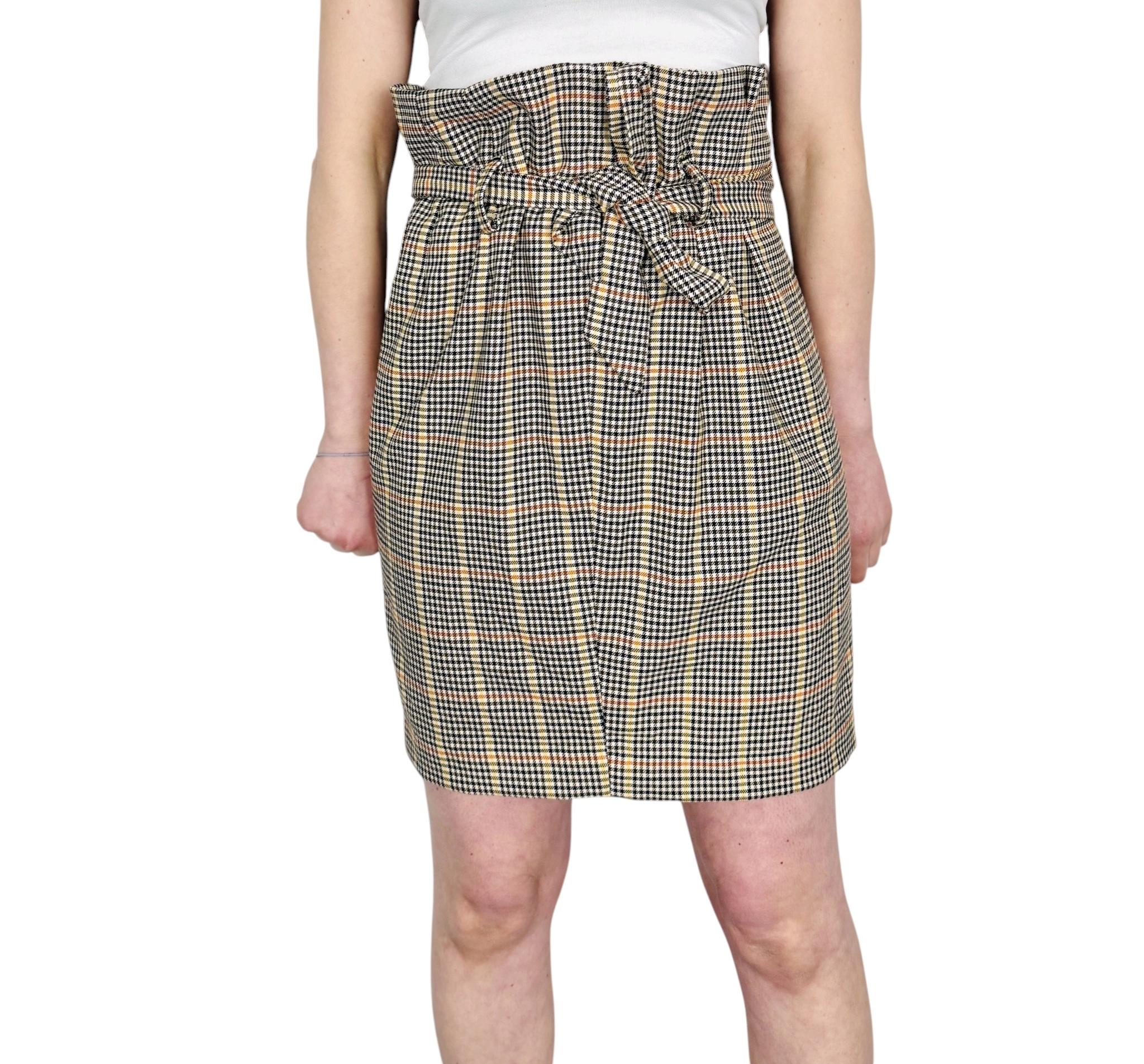 Ta spódnica to połączenie klasycznej elegancji i lekko dziewczęcej nuty — delikatna kratka w beżowo czarnych tonach z subtelnym akcentem cieplejszego koloru tworzy wzór pełen wyrazu, a jednocześnie zachowuje stonowaną, kobiecą aurę. Projekt emanuje uporządkowanym szykiem z lekkim retro sznytem; to element garderoby, który potrafi dodać stylizacji wyrafinowania bez nadmiaru ozdób, oferując raczej subtelną opowieść o dobrym guście niż krzykliwy efekt.