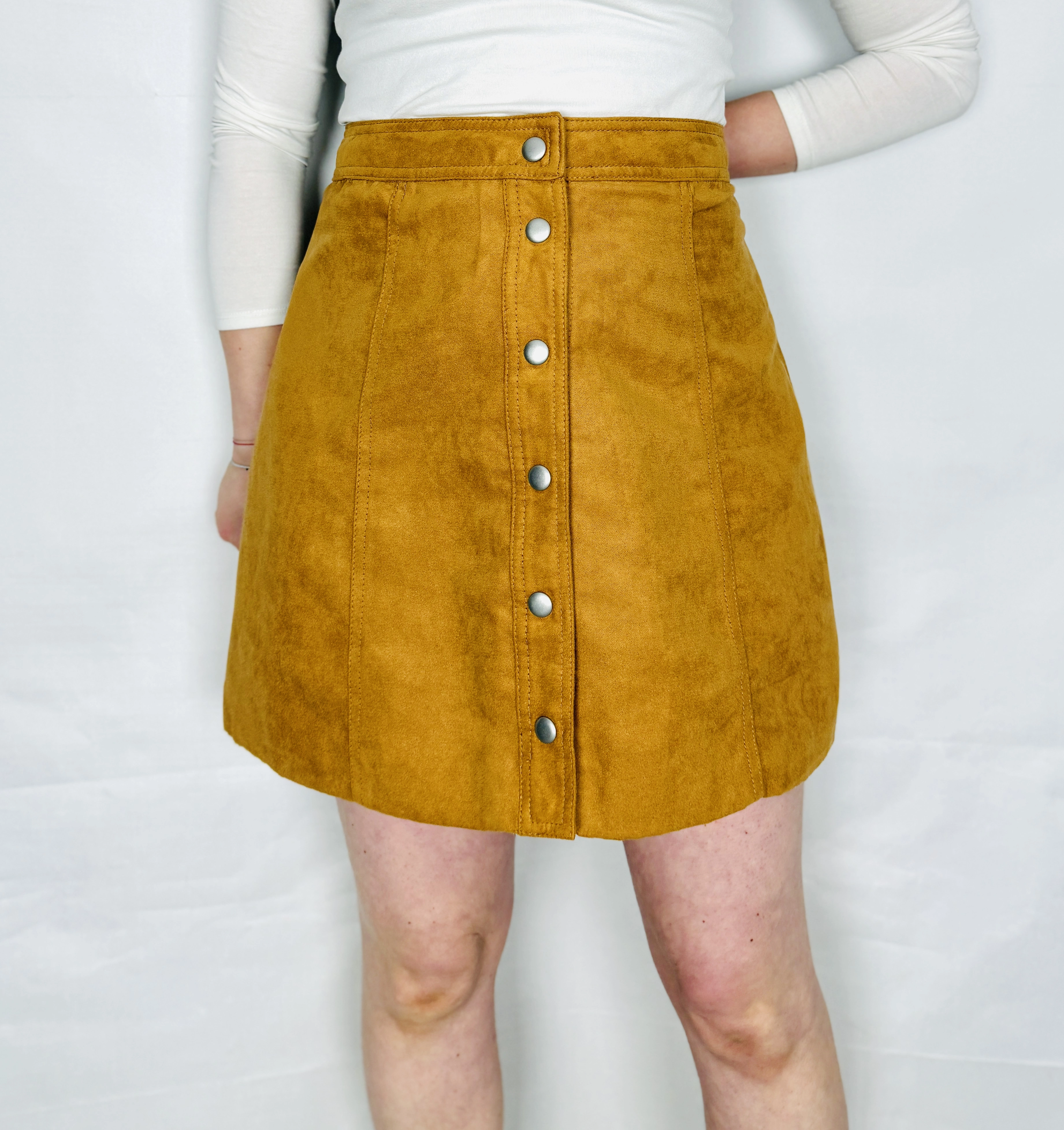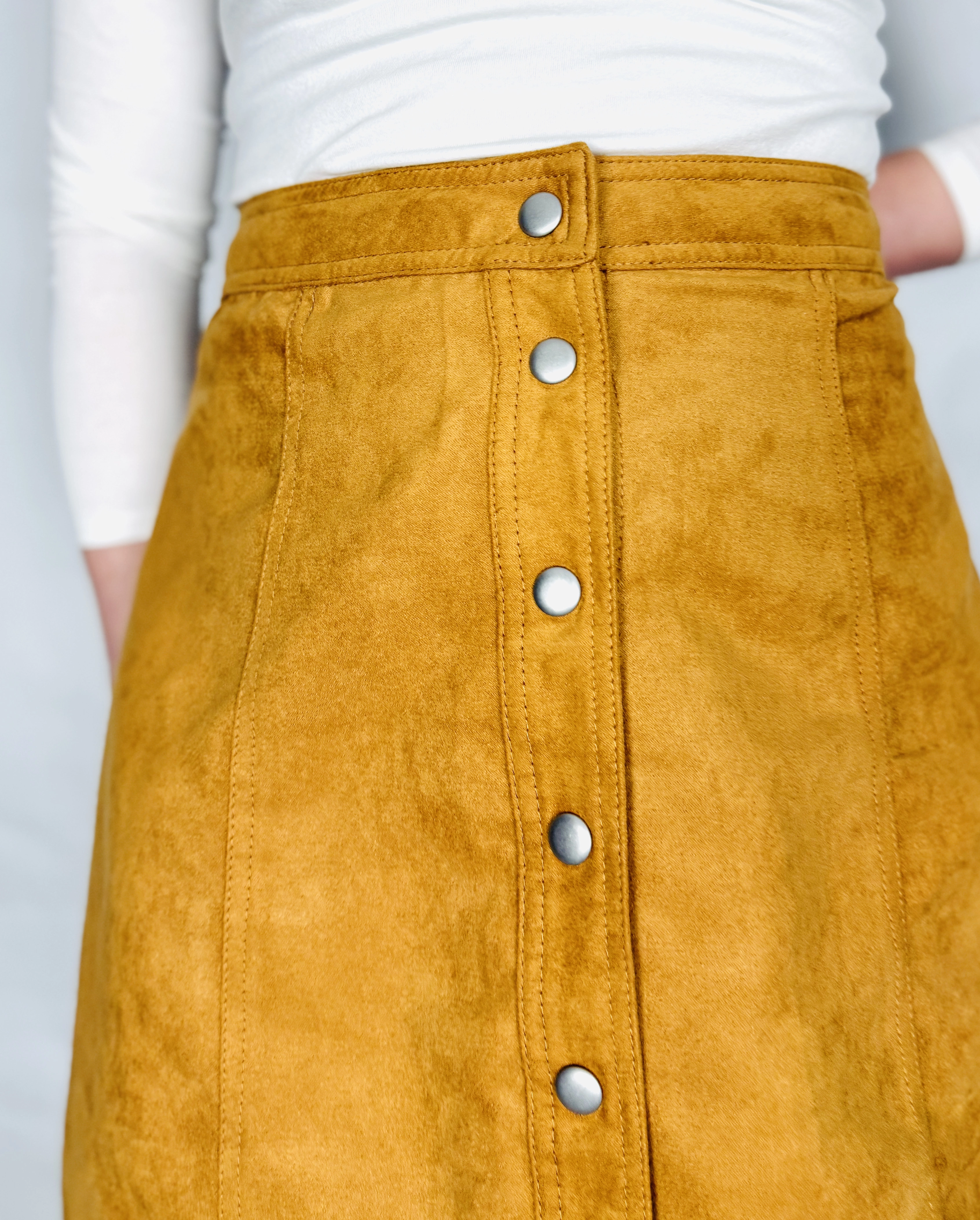 Beżowa spódnica zamszowa na guziki M 38