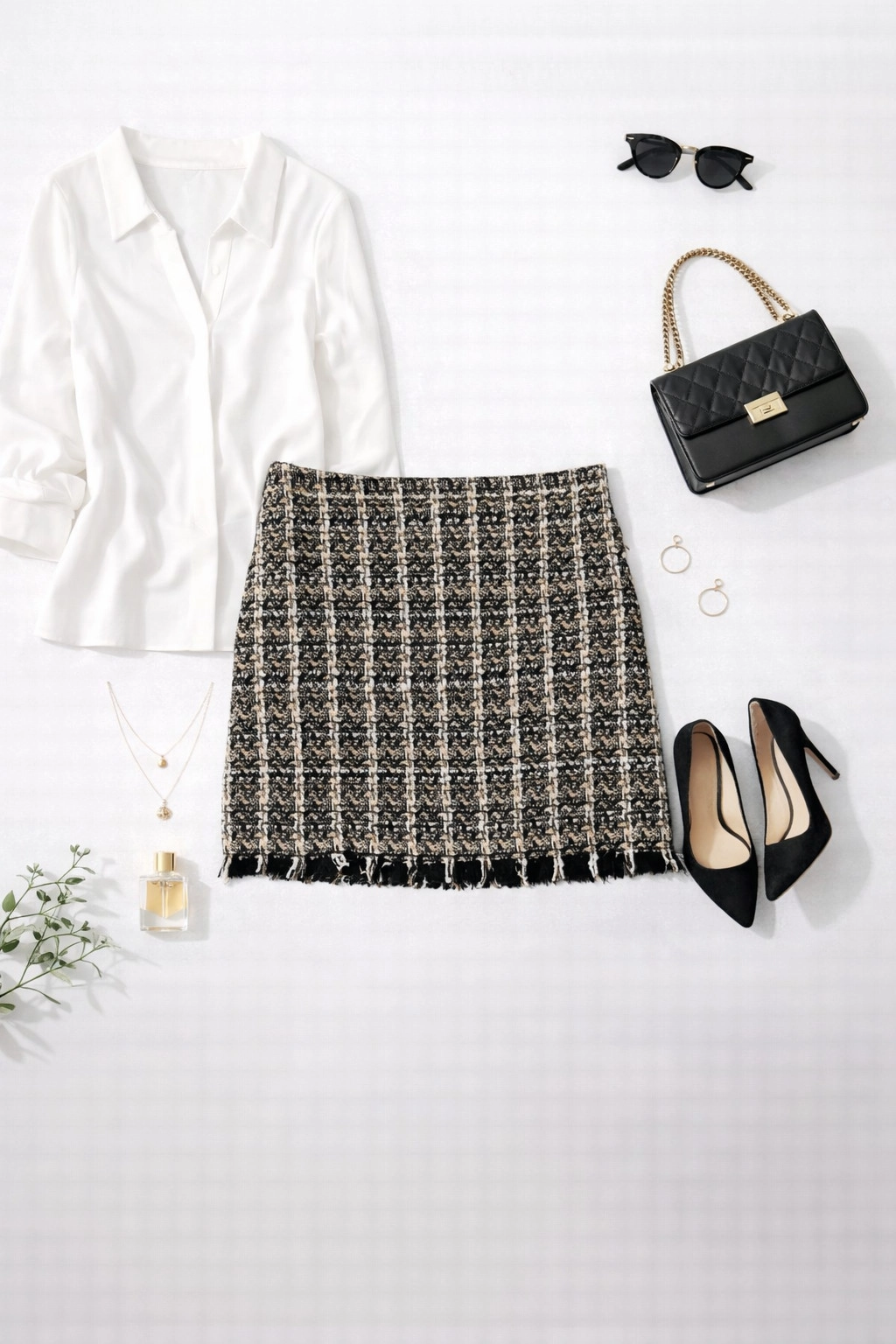 Ta spódnica mini w odcieniach beżu i czerni zachwyca eleganckim, klasycznym charakterem z nutą nowoczesnego wykończenia. Wyrazista struktura tkaniny tworzy efekt subtelnej kraty, który nadaje całości głębi i wyrafinowania. To model inspirowany ponadczasową estetyką, który świetnie odnajduje się zarówno w codziennych stylizacjach, jak i bardziej eleganckich zestawach.
