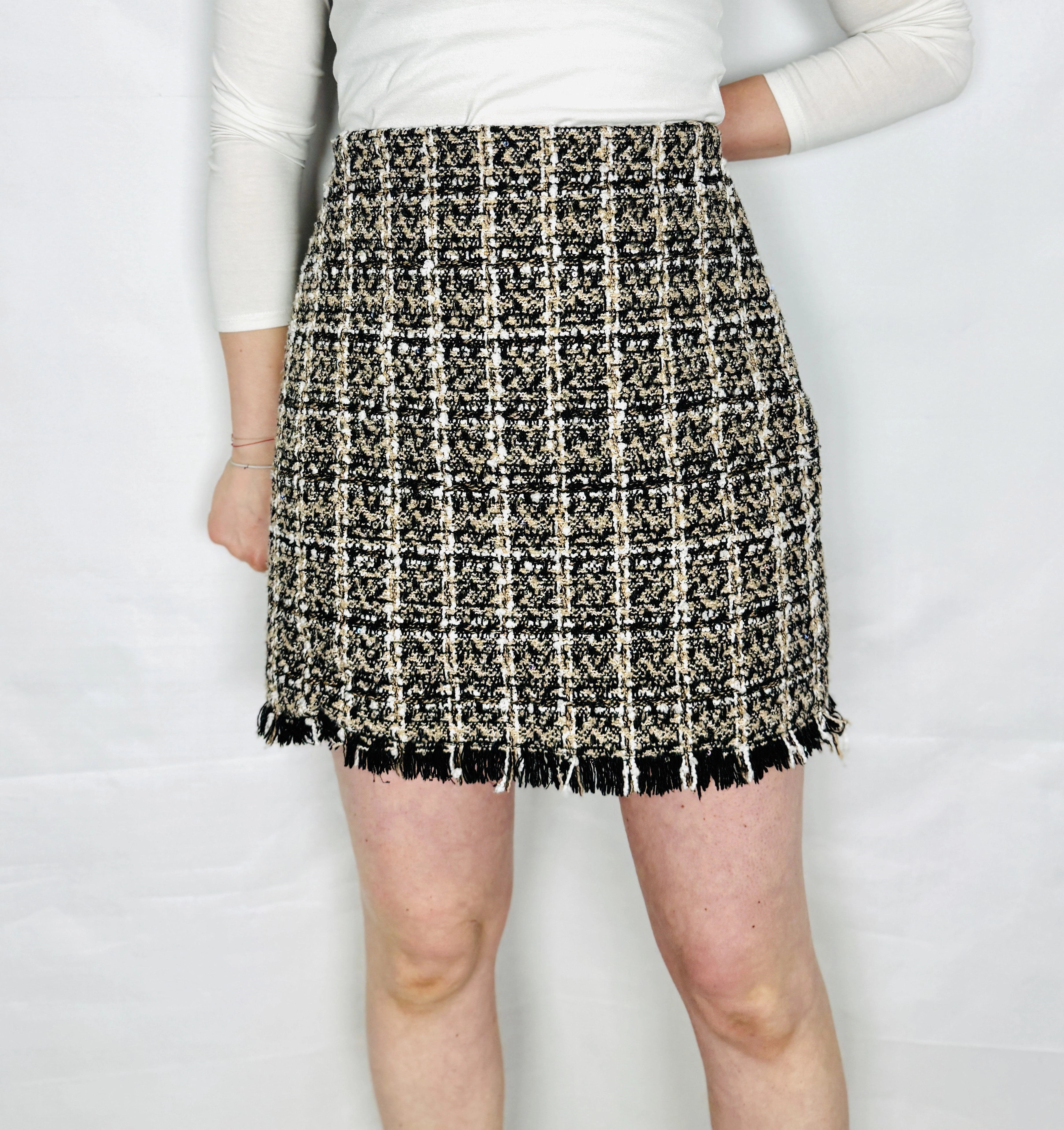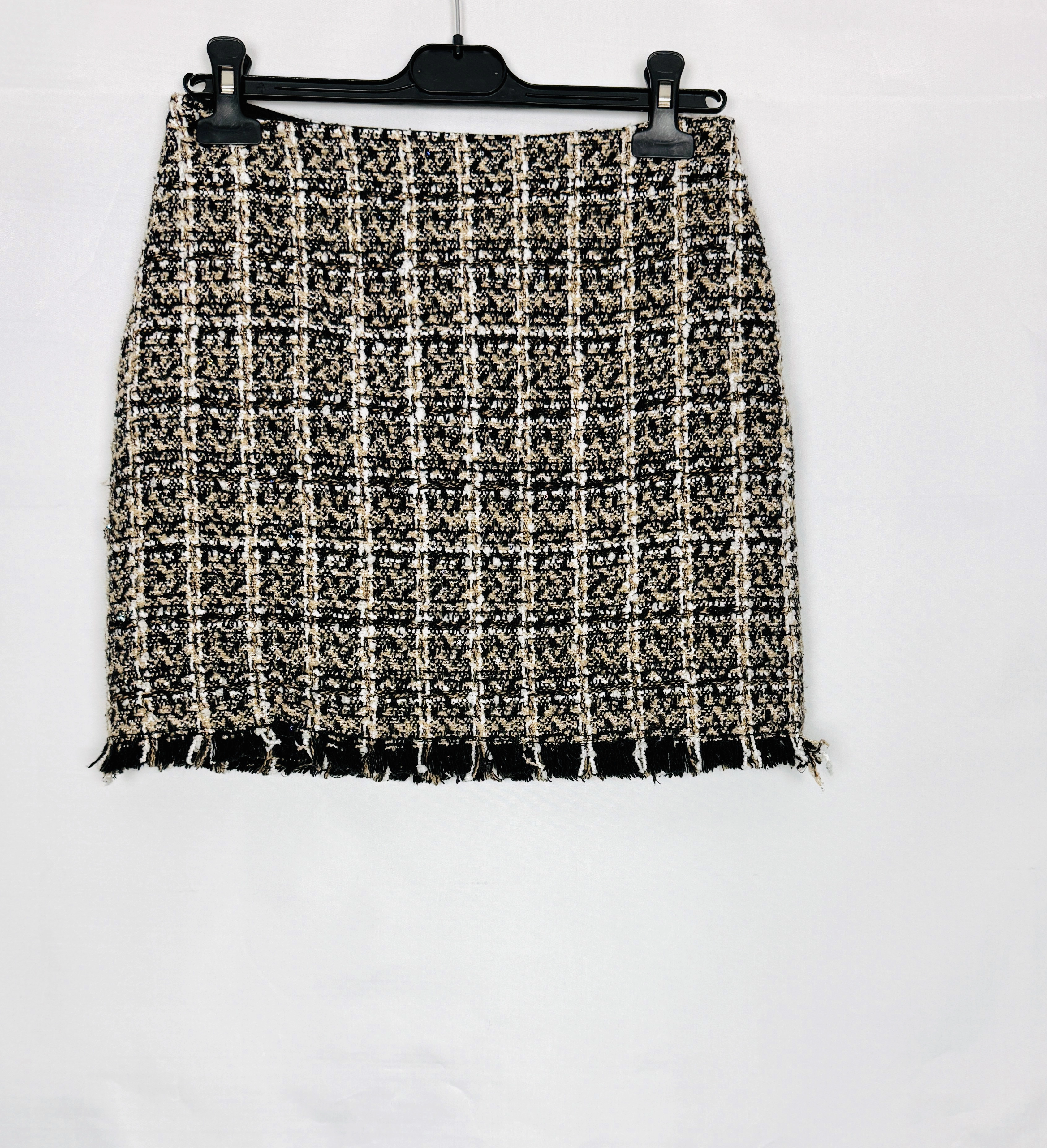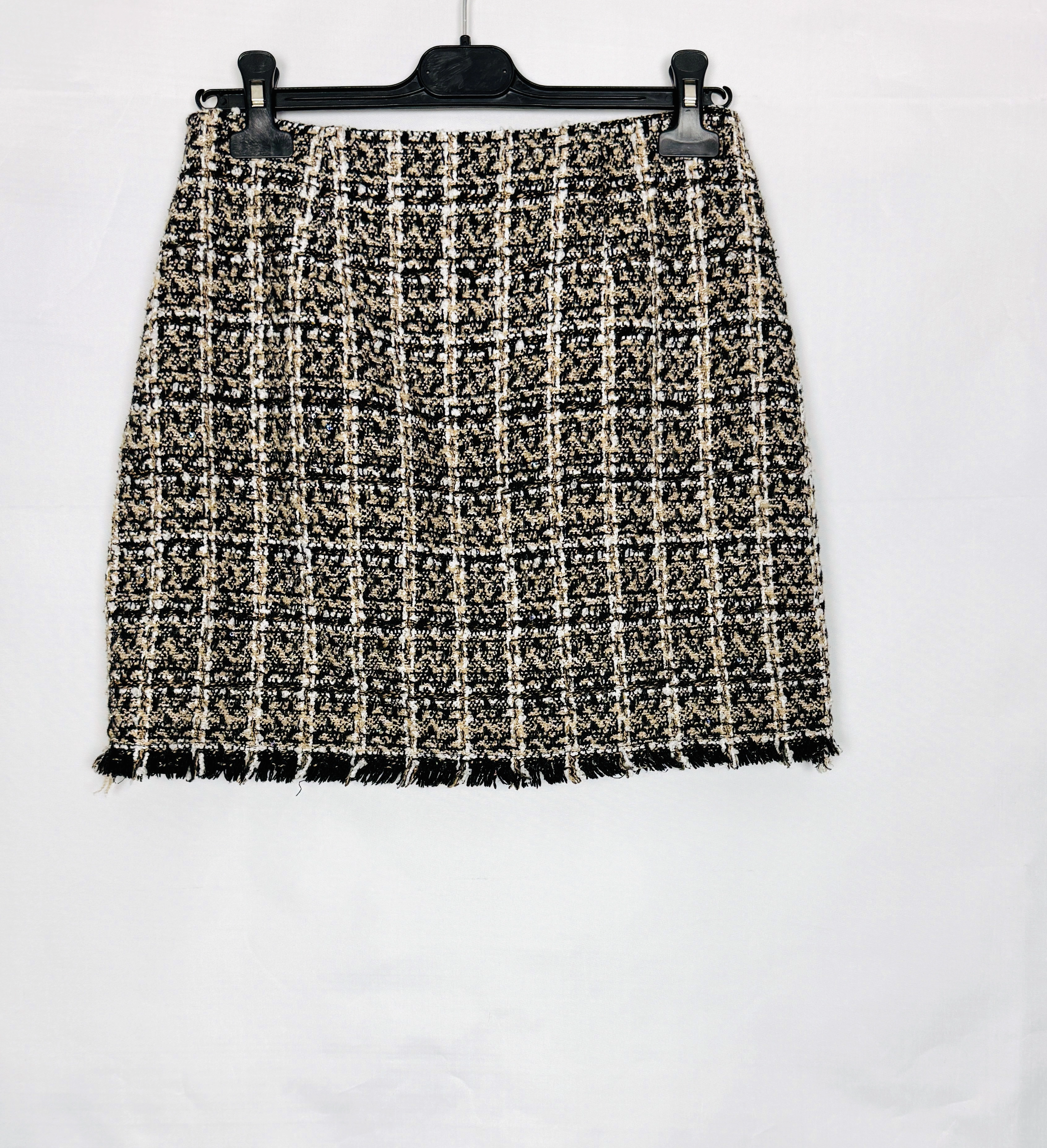 Beżowo czarna spódnica tweedowa mini S 36