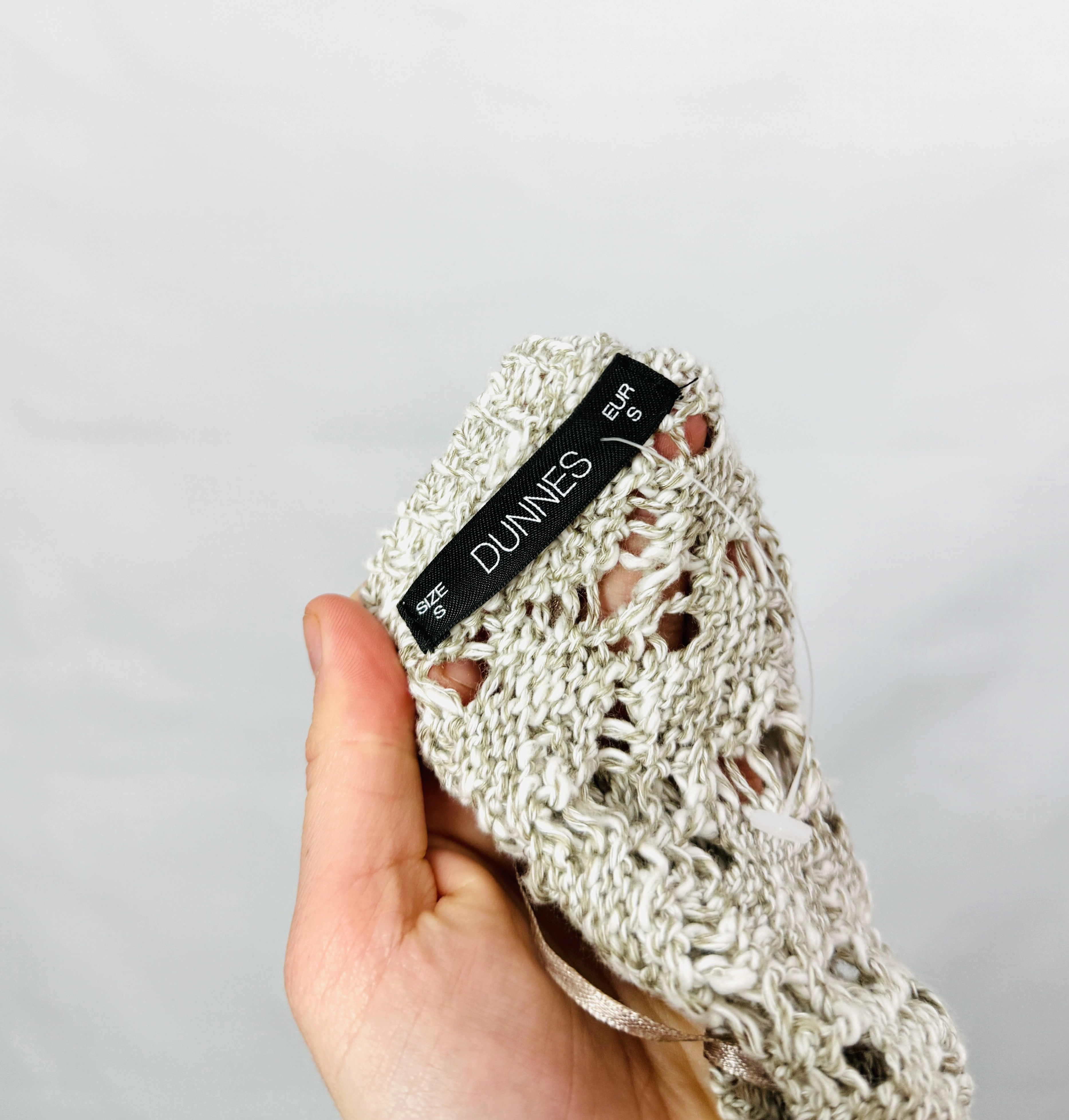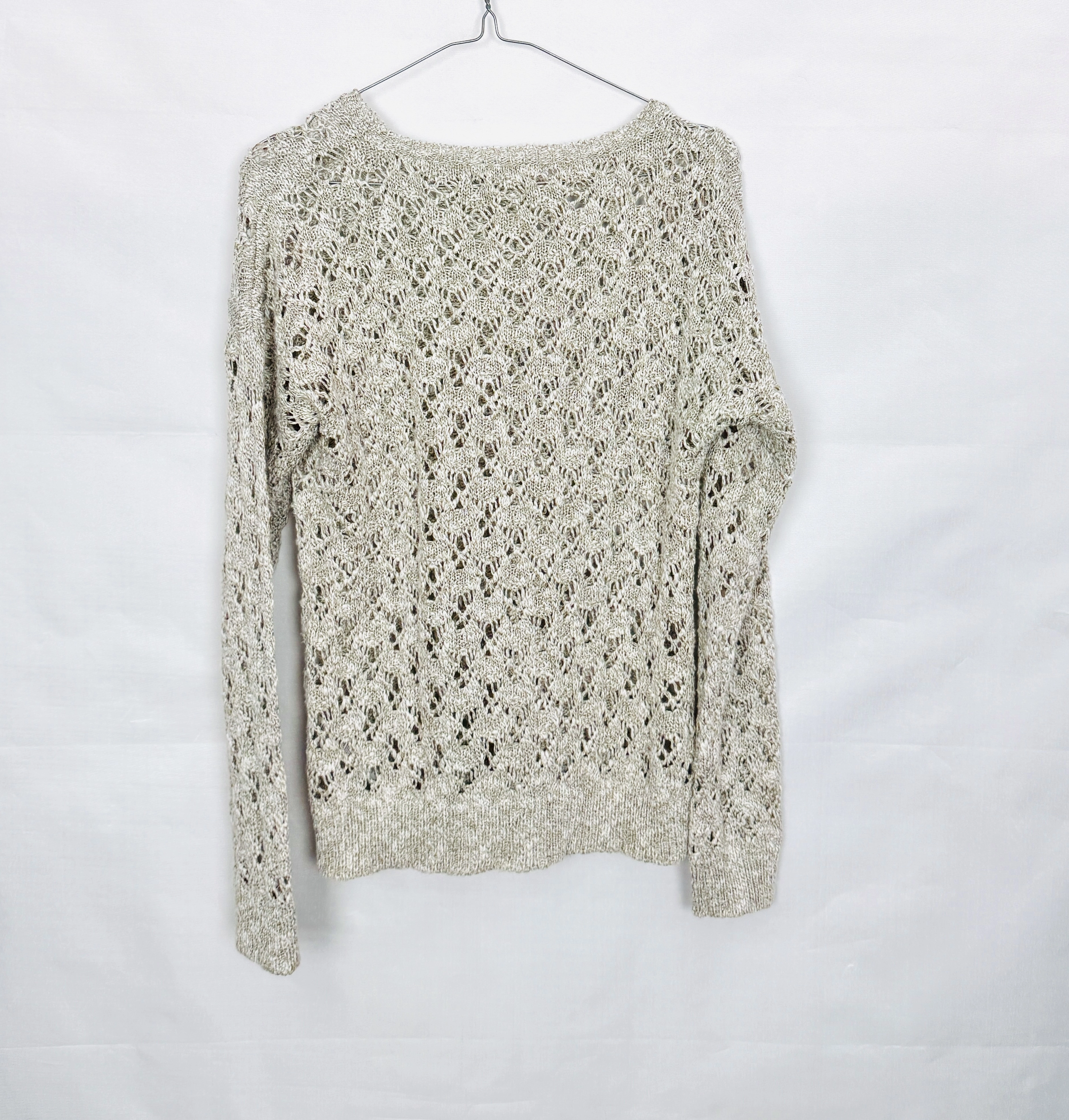 Ten sweterek zachwyca subtelną lekkością i romantycznym charakterem, który od razu przywodzi na myśl delikatność i kobiecą swobodę. Jasny, beżowy odcień nadaje całości naturalnego, ciepłego wyrazu, a ażurowy splot wprowadza nutę finezji i lekkości. To model, który idealnie wpisuje się w styl boho oraz casualową elegancję, tworząc efekt niewymuszonego, ale bardzo stylowego looku.