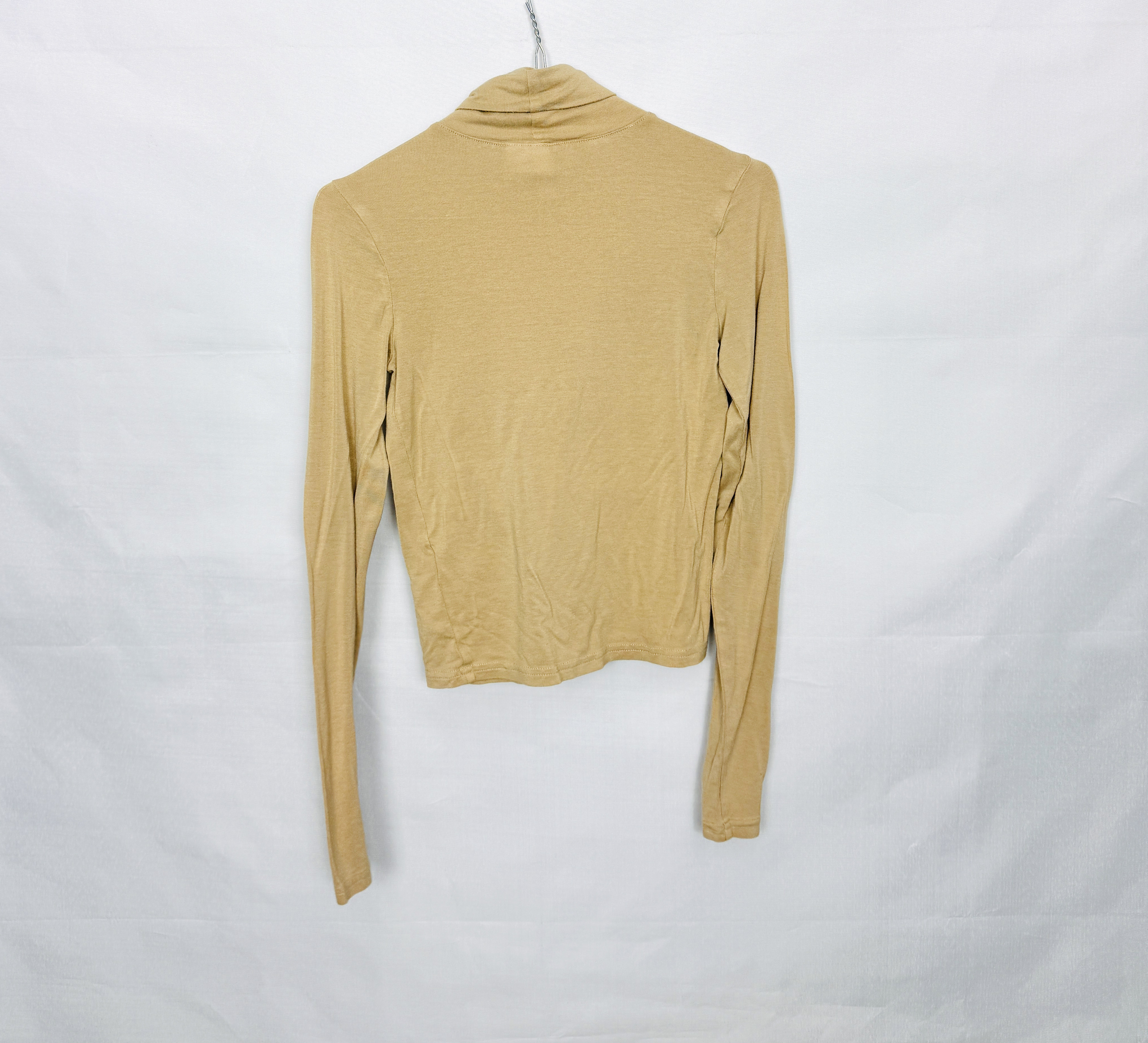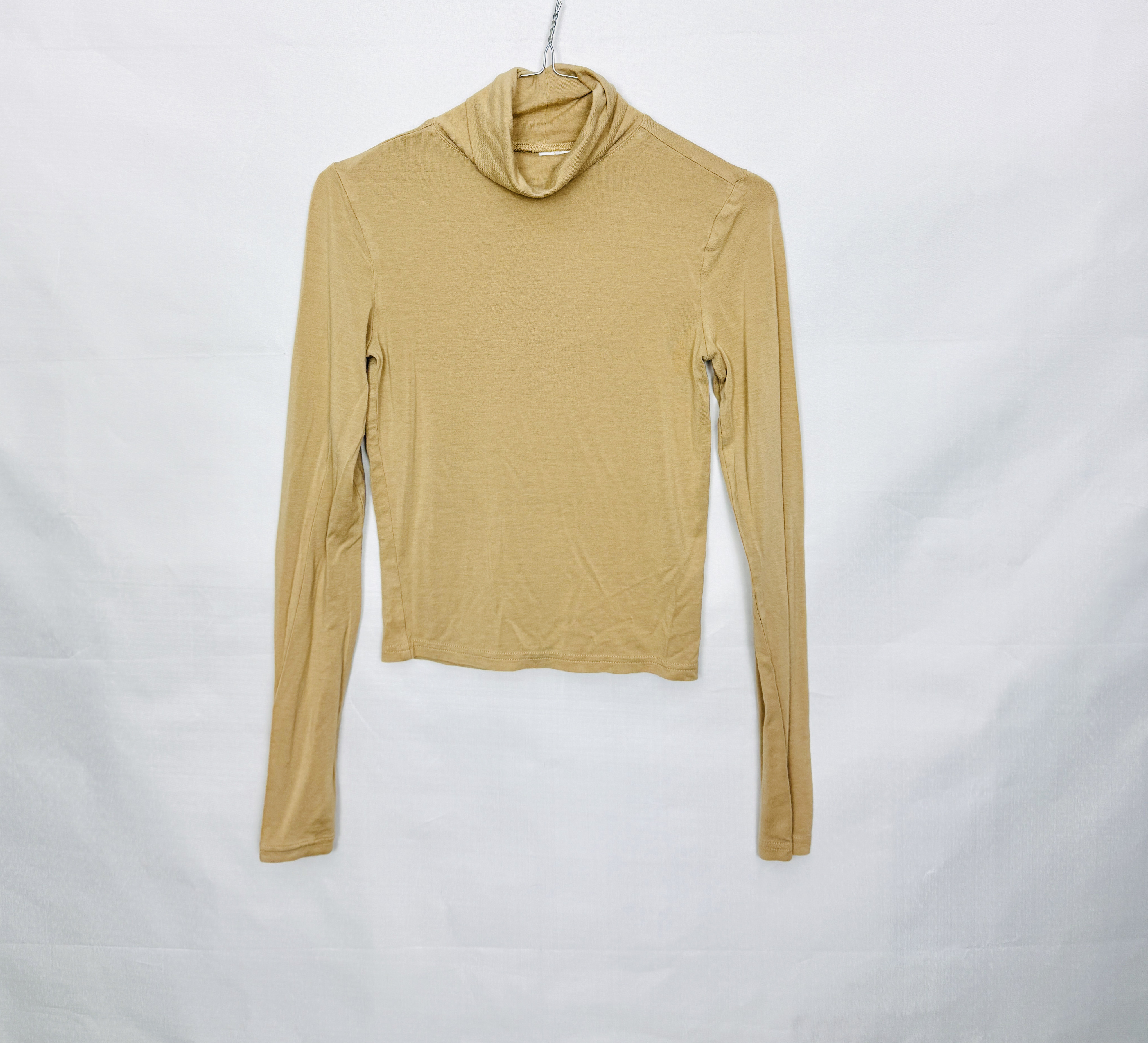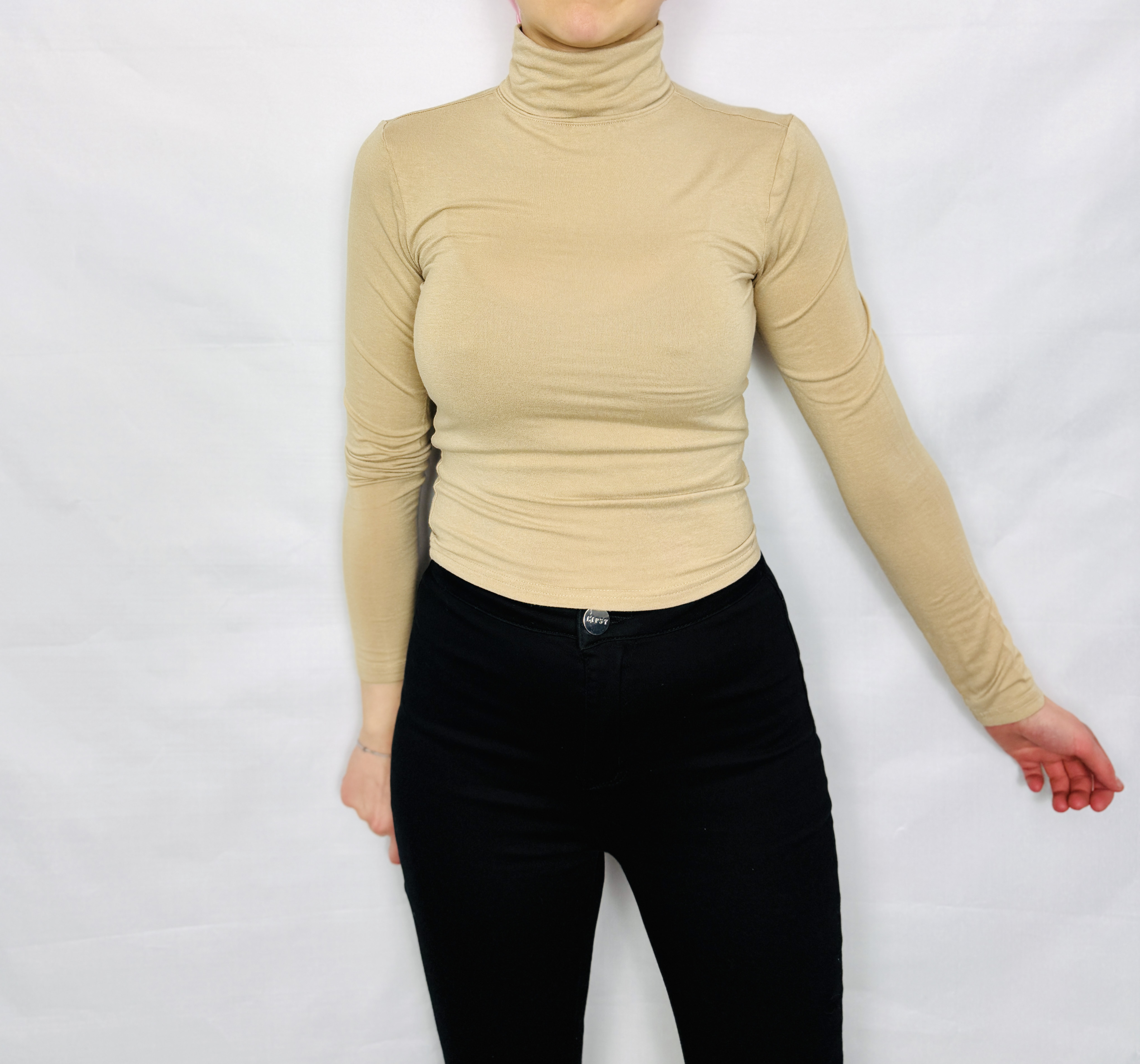 To beżowy golf, który łączy w sobie klasyczną elegancję z codzienną subtelnością. Jego ciepły, neutralny odcień nadaje stylizacji miękkości i przytulnego charakteru, a jednocześnie pozostaje niezwykle uniwersalny — to element garderoby, który wprowadza spokojny, wyrafinowany nastrój i łatwo współgra zarówno z minimalistycznymi, jak i bardziej dopracowanymi zestawami. Idealny dla kobiety ceniącej prostotę w najlepszym wydaniu.