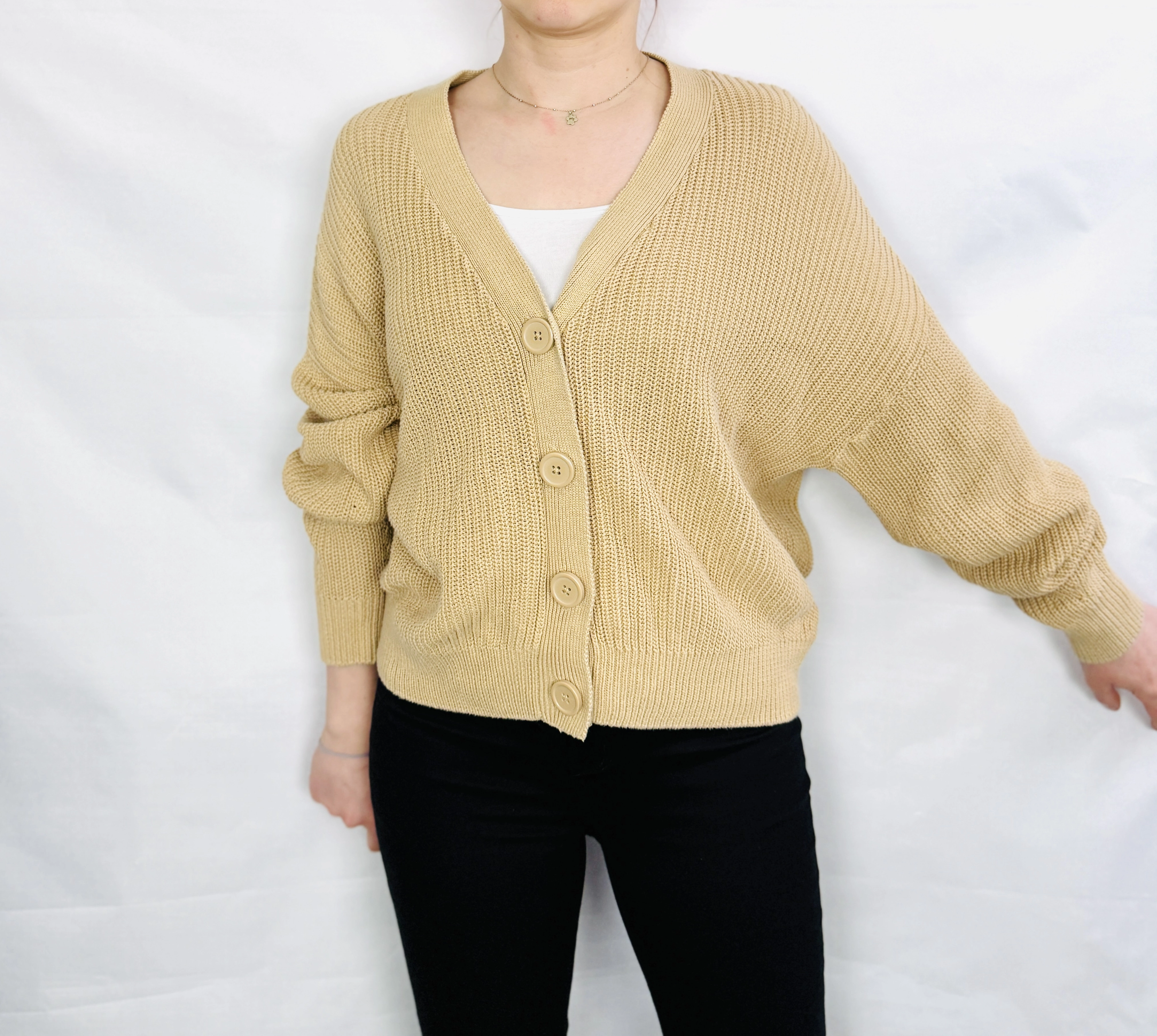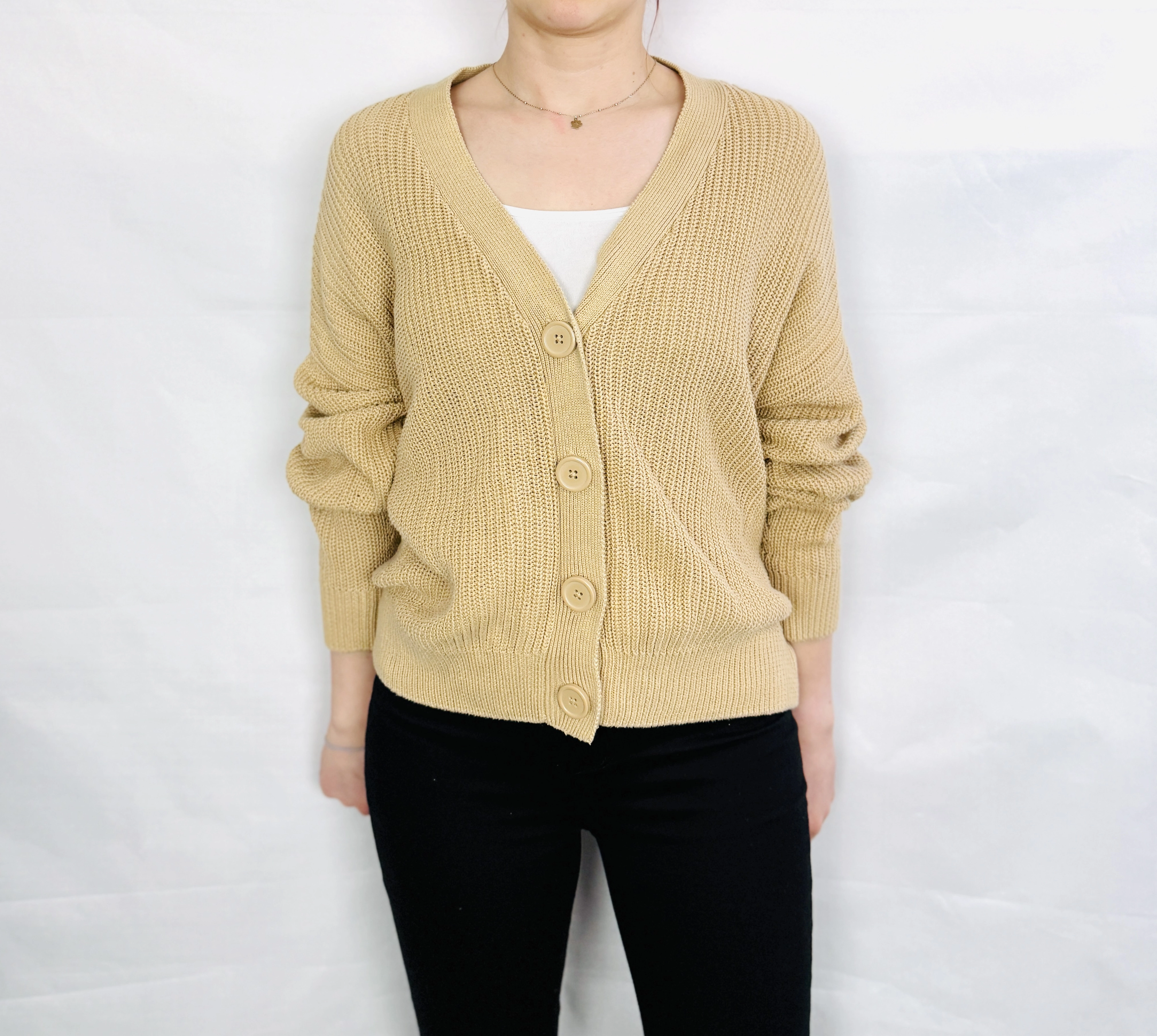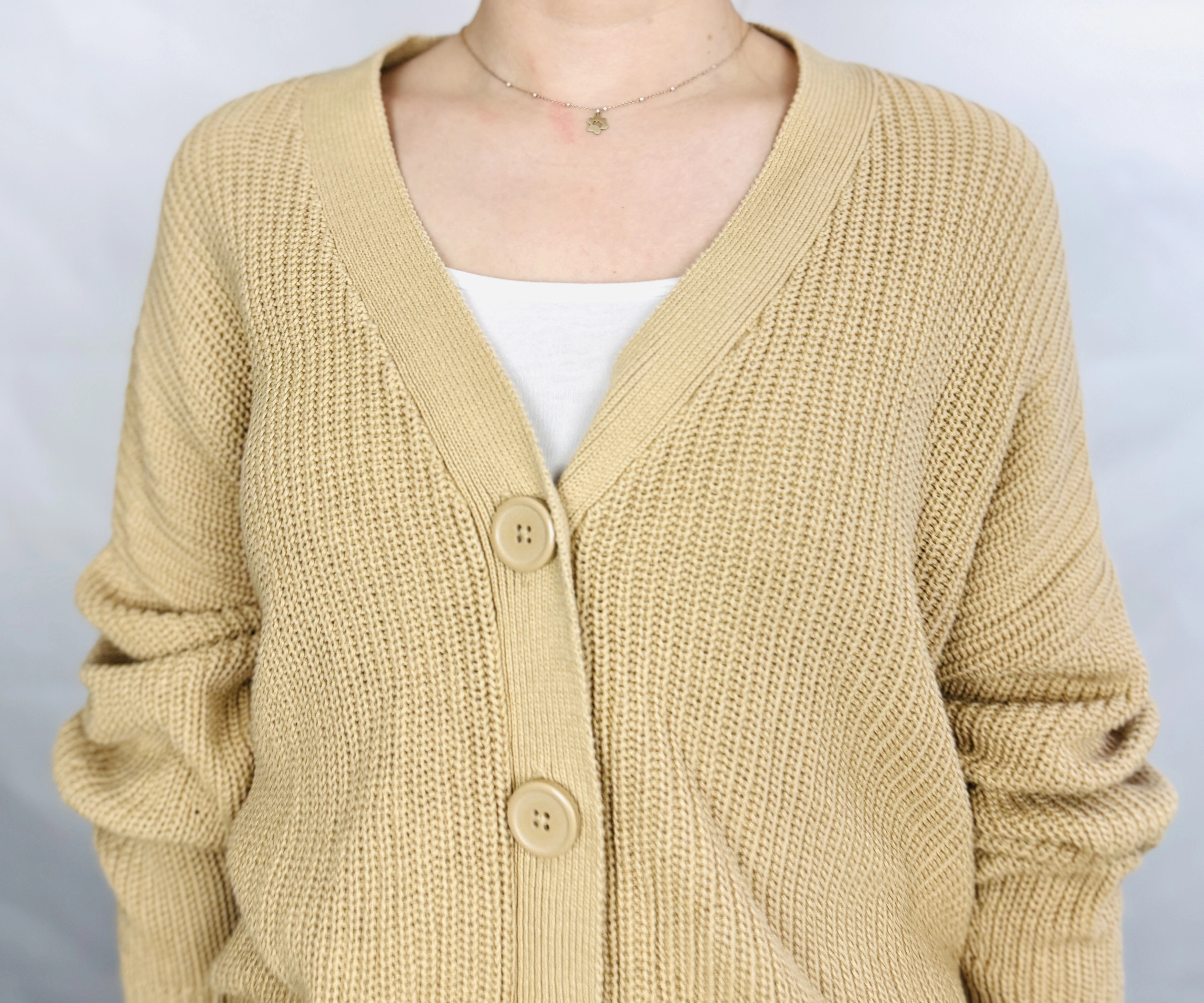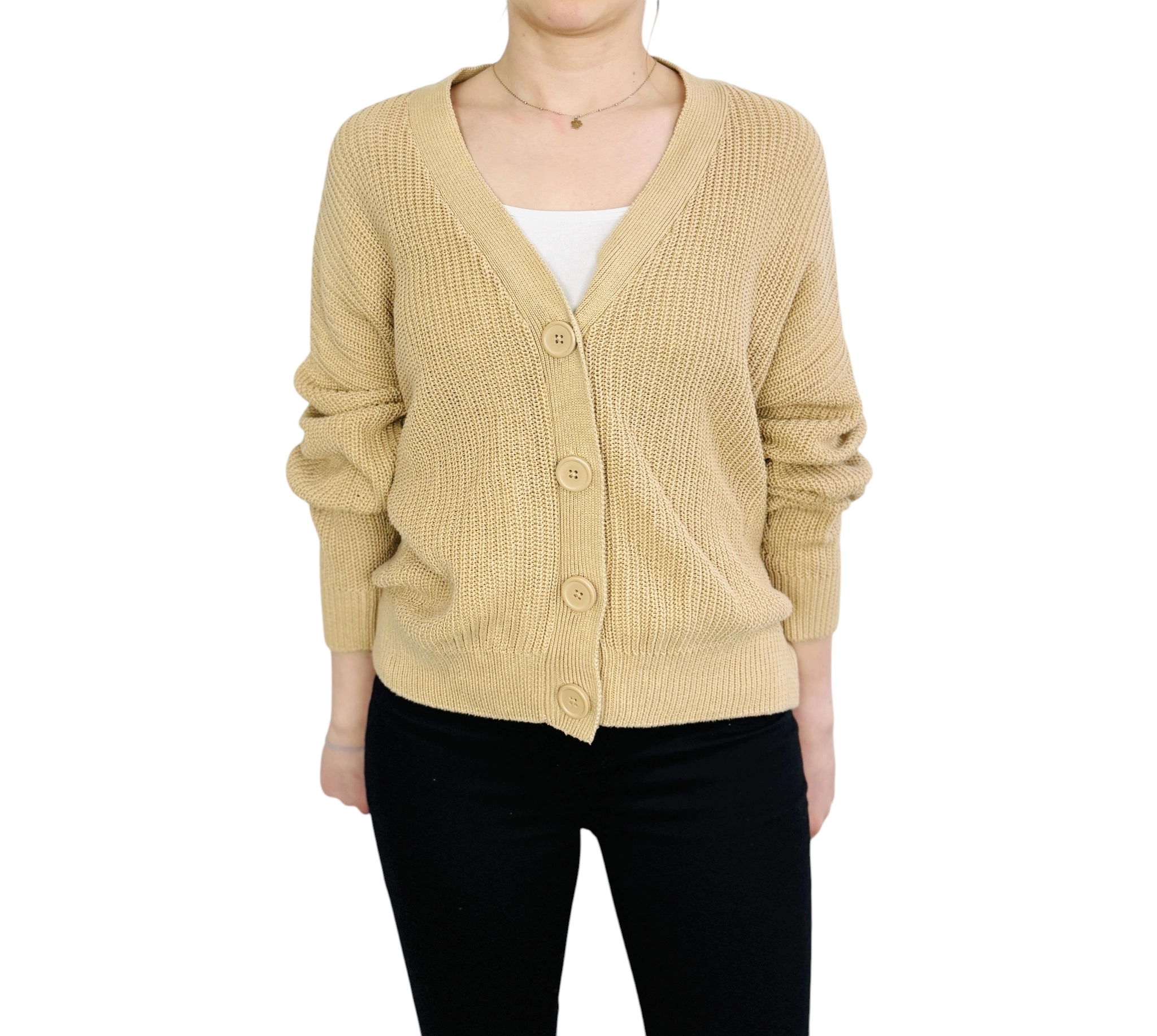 Beżowy kardigan oversize z guzikami M 38