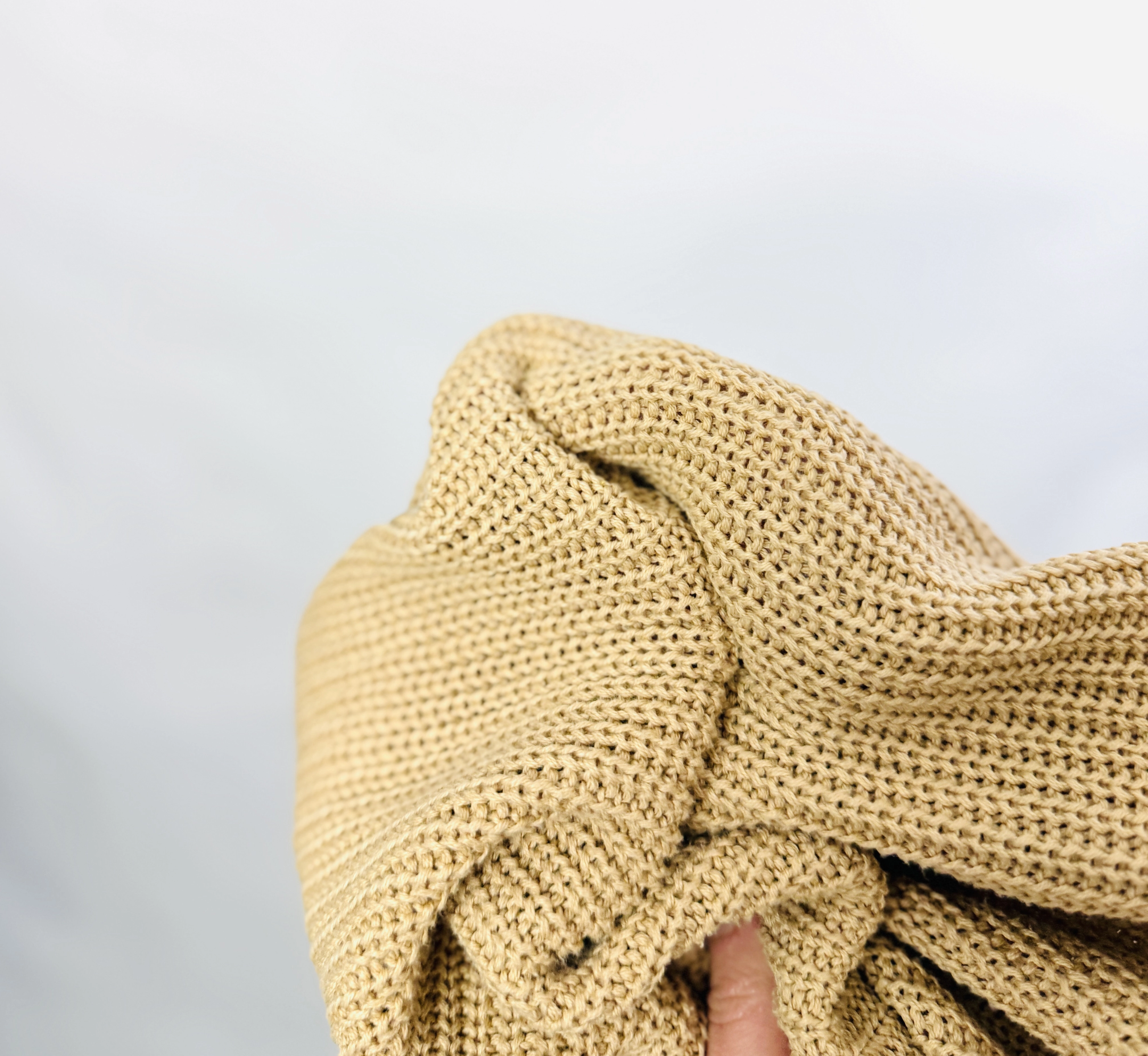 Ten sweter kardigan to kwintesencja przytulnej elegancji — beżowy odcień i mięsisty splot tworzą ciepły, kobiecy nastrój, który łączy codzienny komfort z lekko stylowym charakterem. Projekt jest prosty, ale przemyślany; miękka faktura dzianiny nadaje mu naturalnej, otulającej jakości, dzięki czemu sprawdza się zarówno jako warstwa w lekkich, codziennych zestawach, jak i element bardziej wyrafinowanej, warstwowej stylizacji. To ubranie, które daje wrażenie delikatnej miękkości i spokoju, zapraszając do zestawów w stonowanych, naturalnych kolorach.