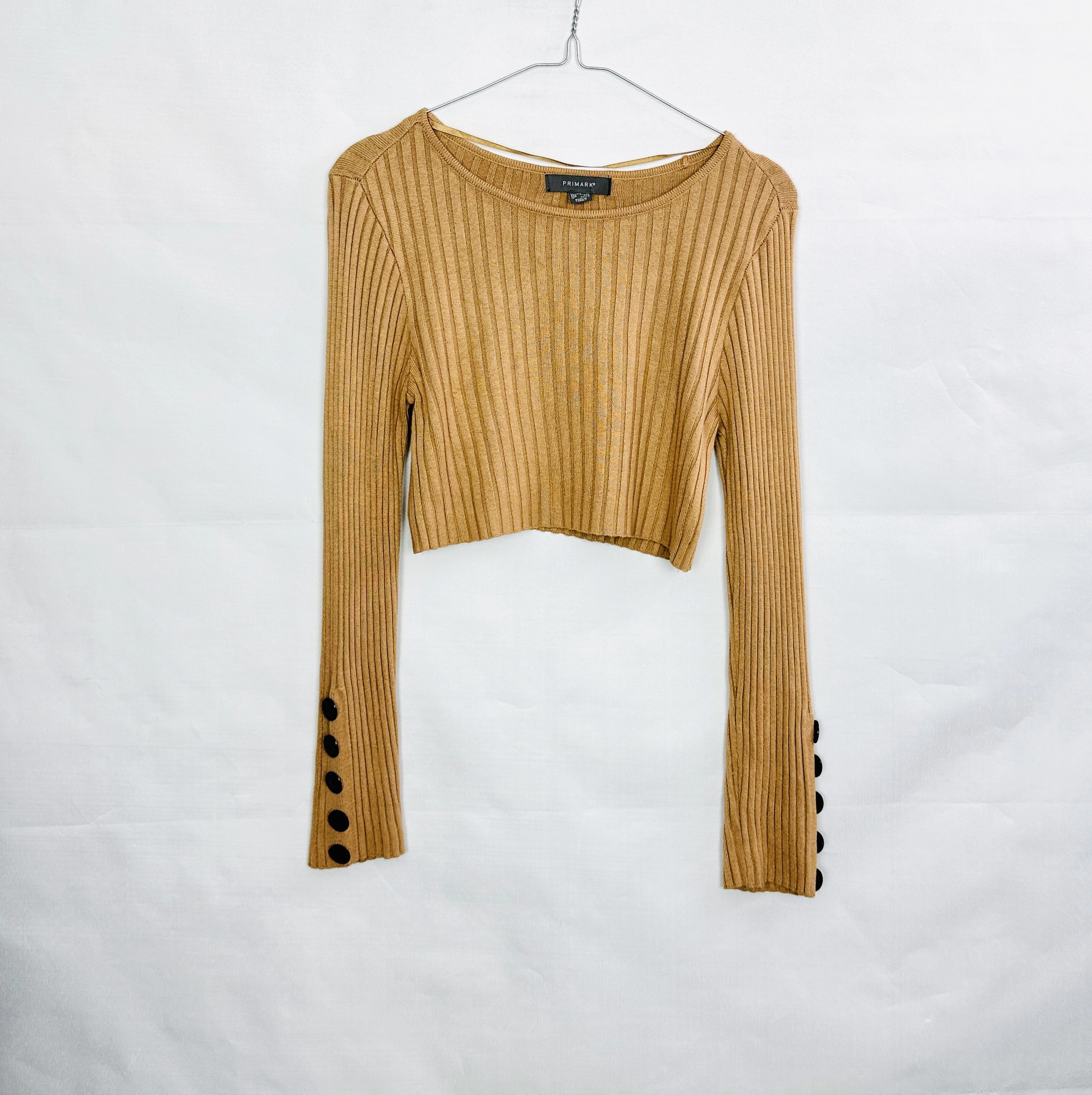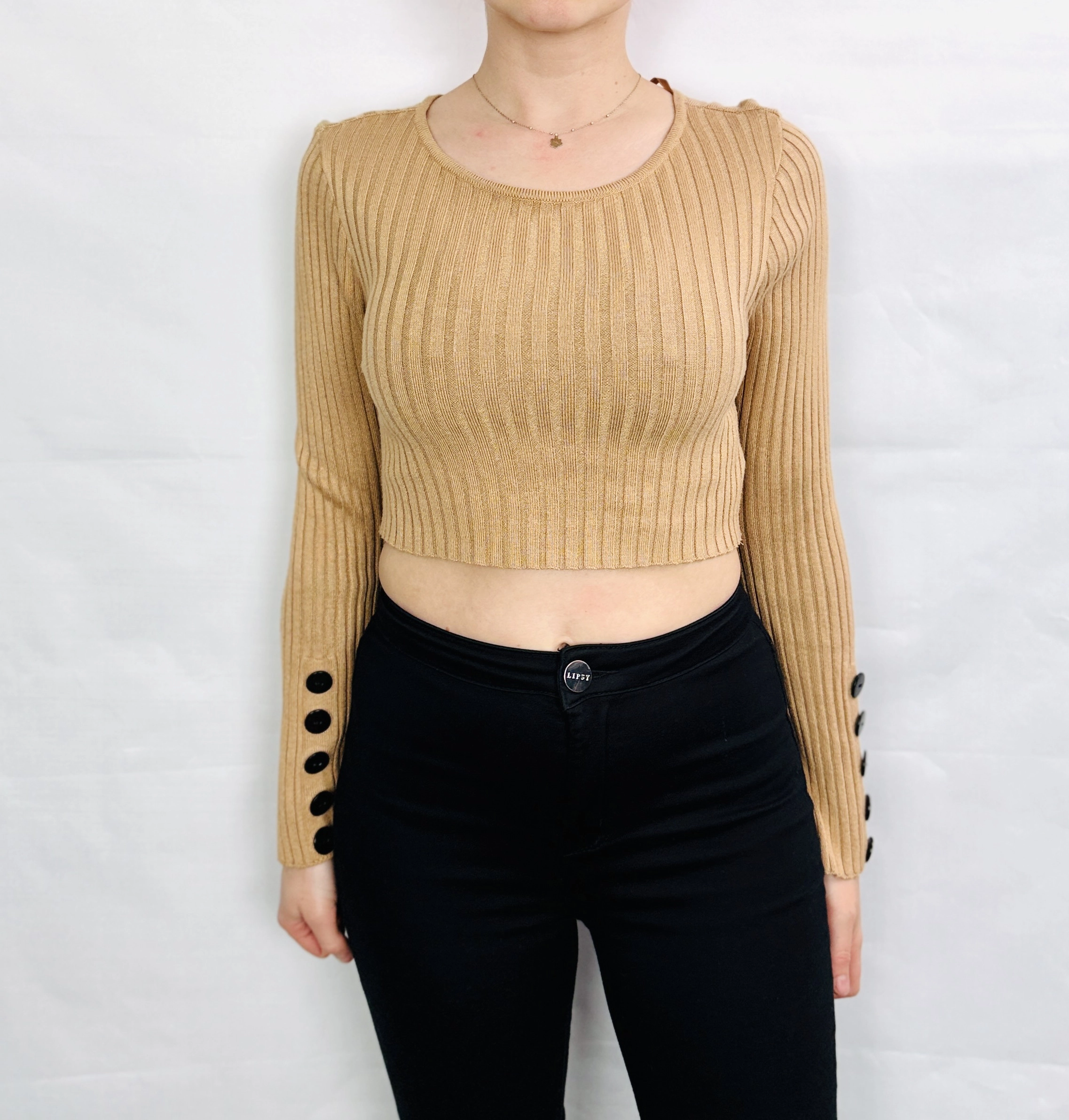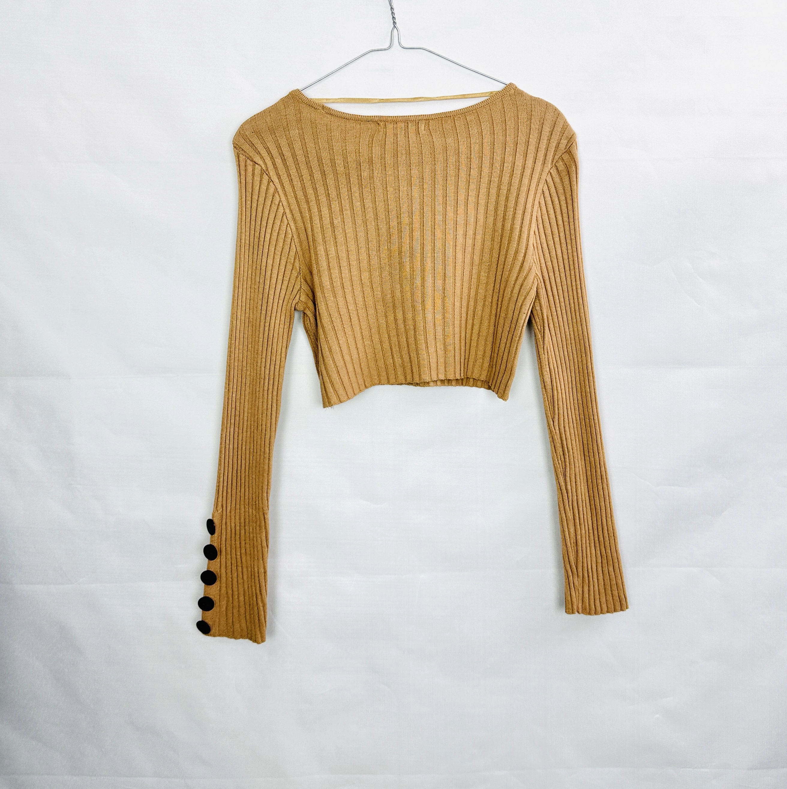 Beżowy krótki sweterek z guzikami na rękawach XS/S 34/36