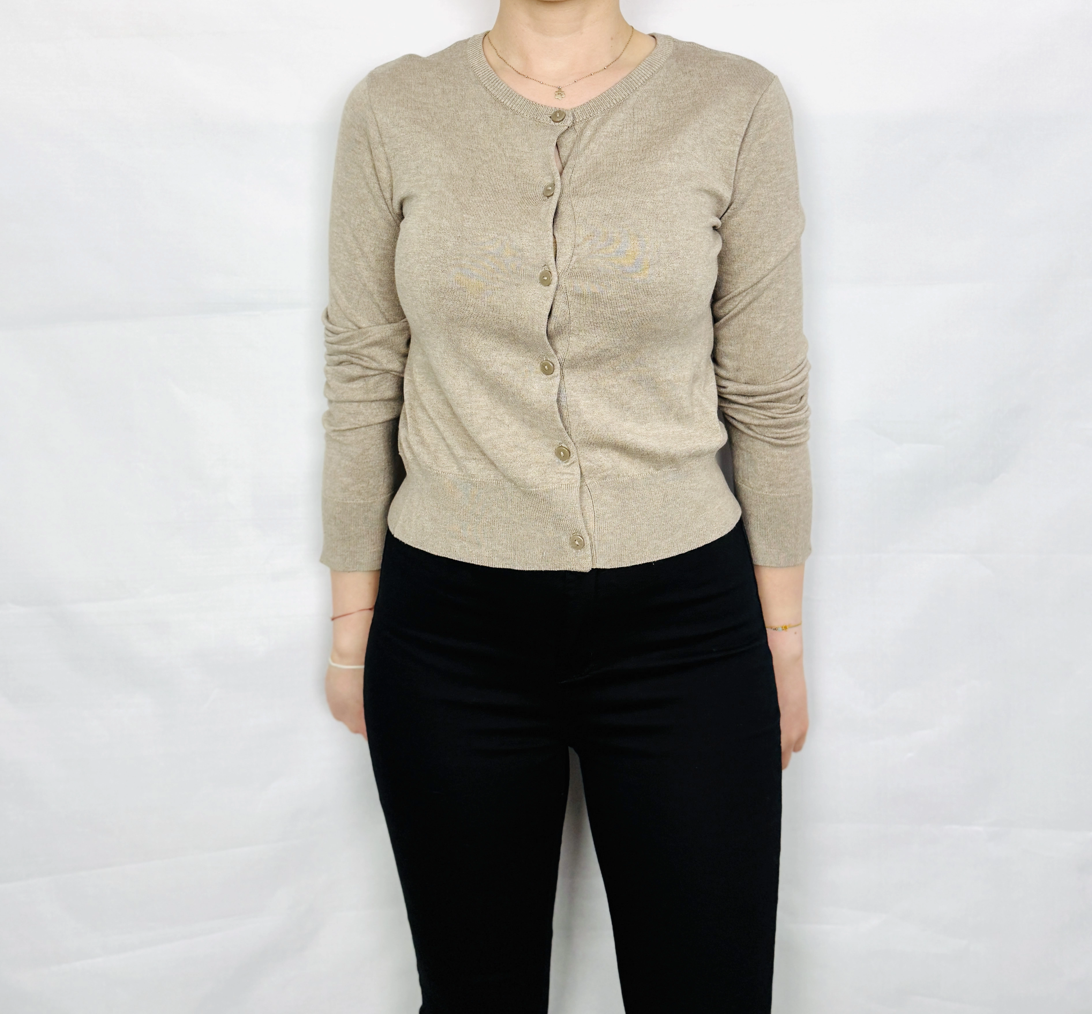Beżowy sweterek zapinany na guziki S 36