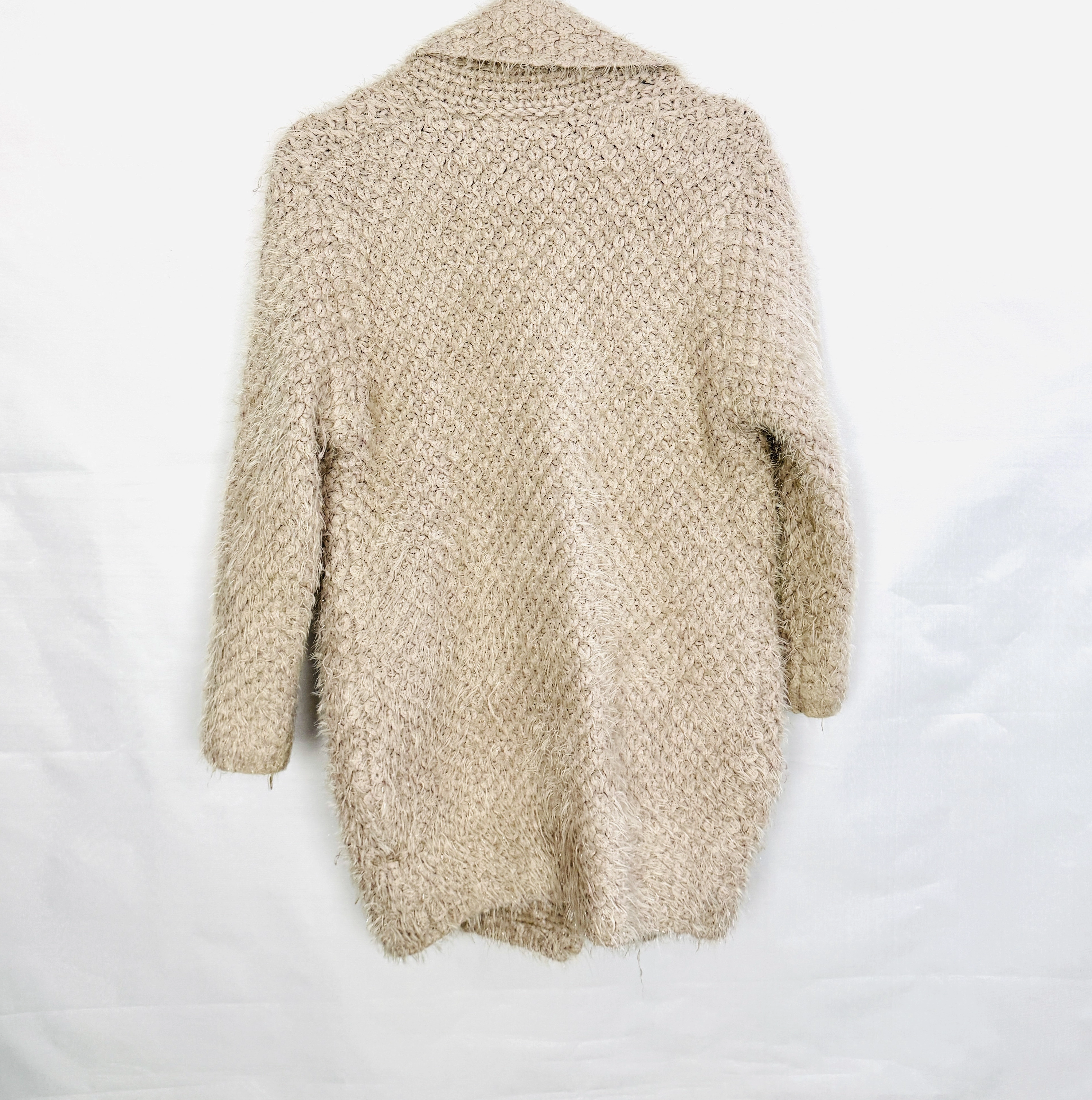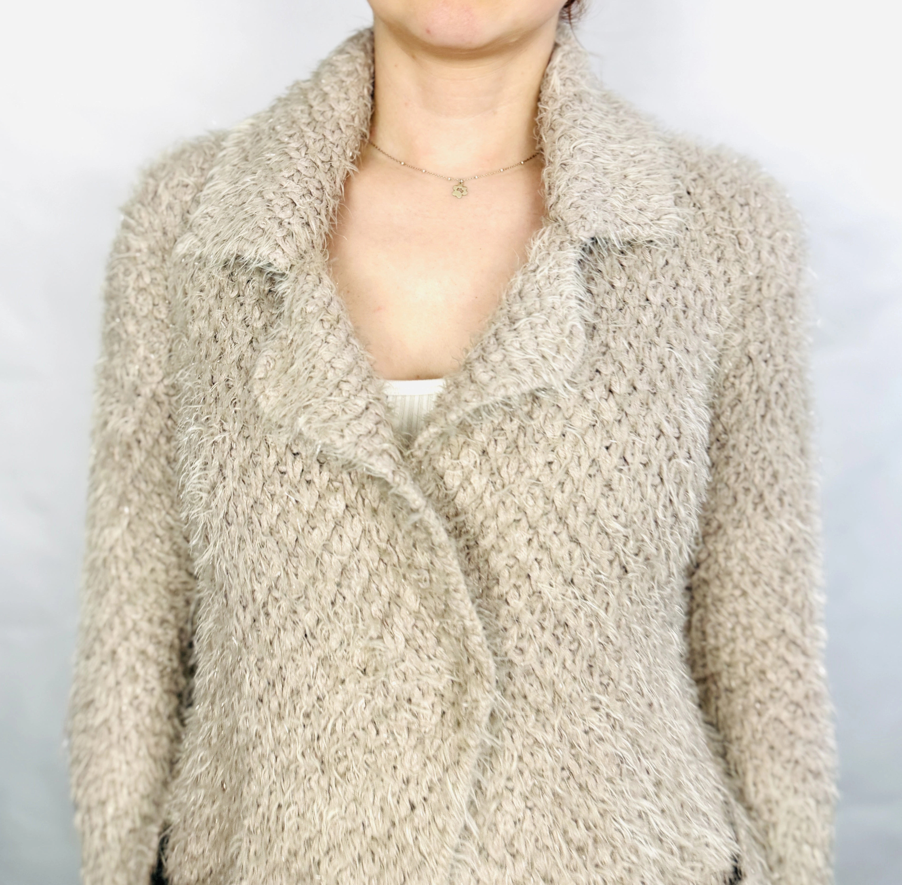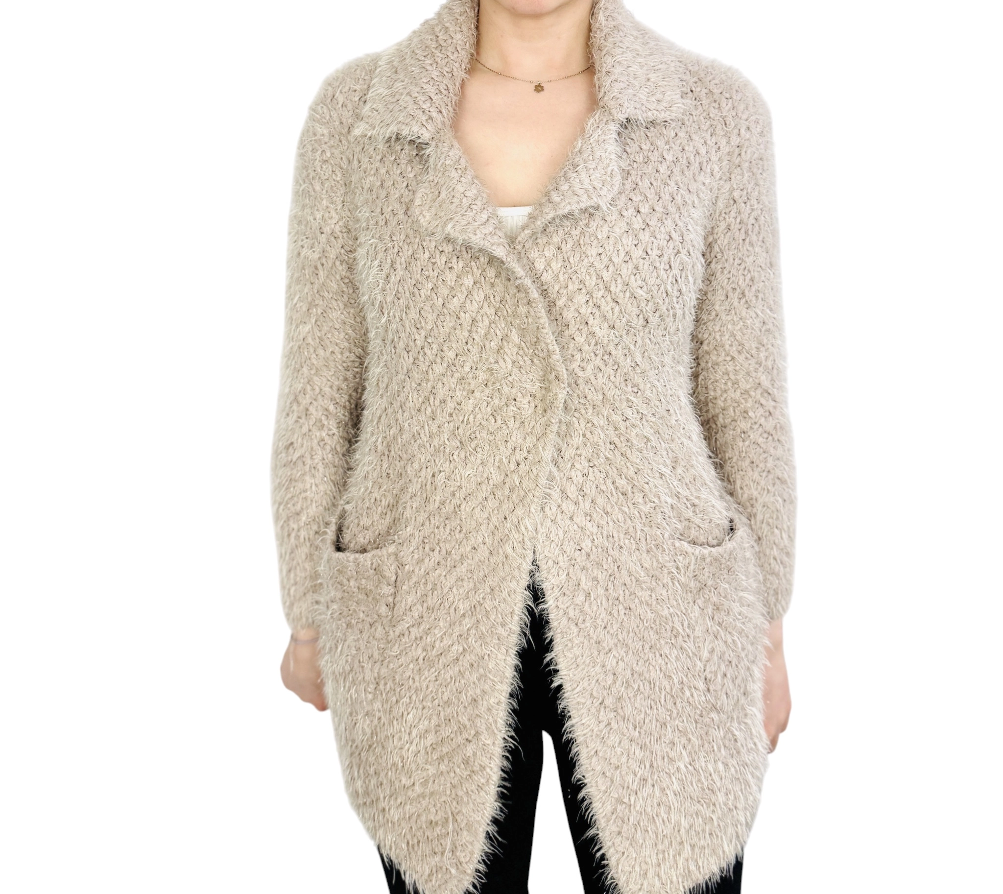 Beżowy włochaty kardigan z kołnierzem M/L 38/40