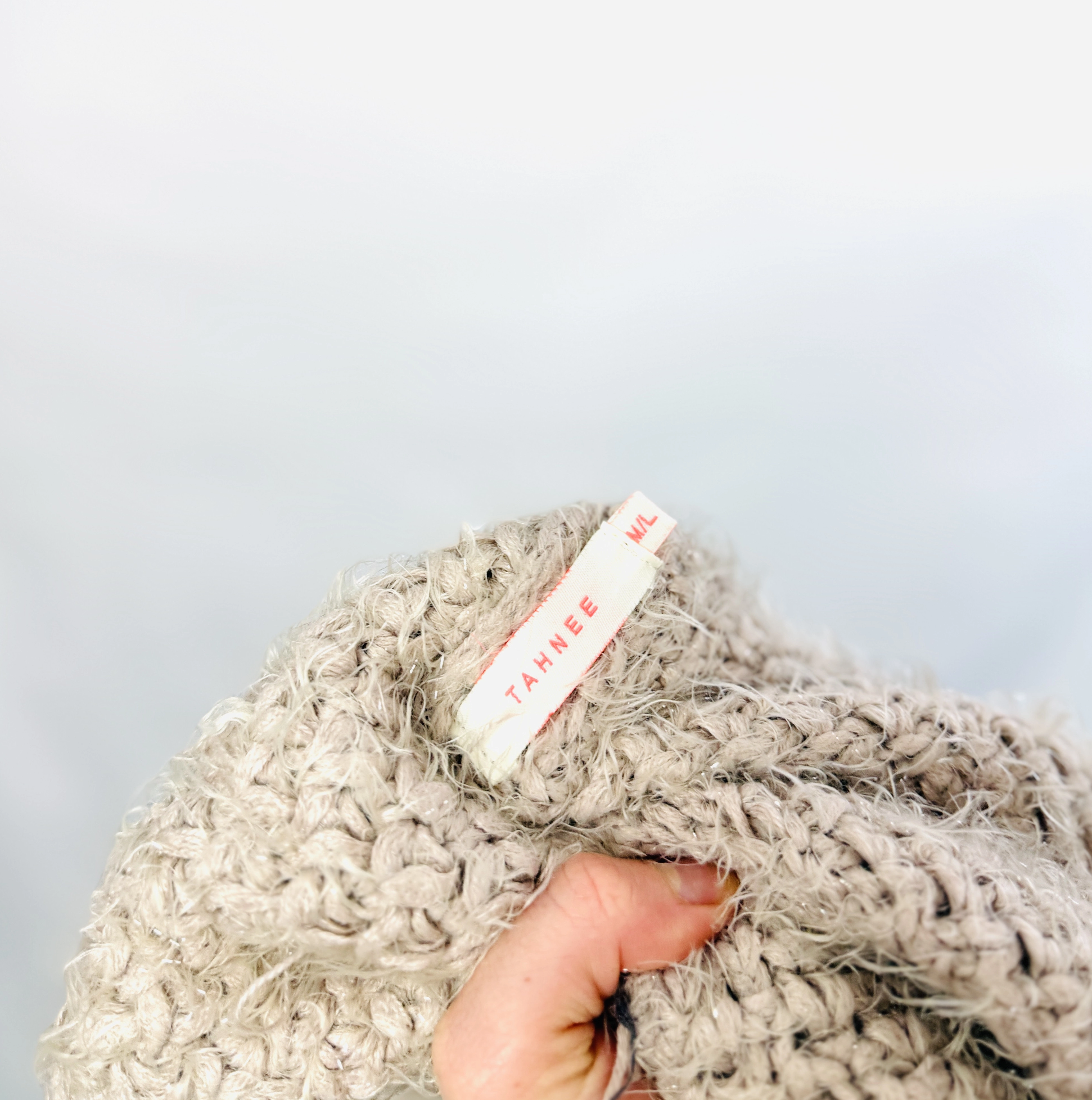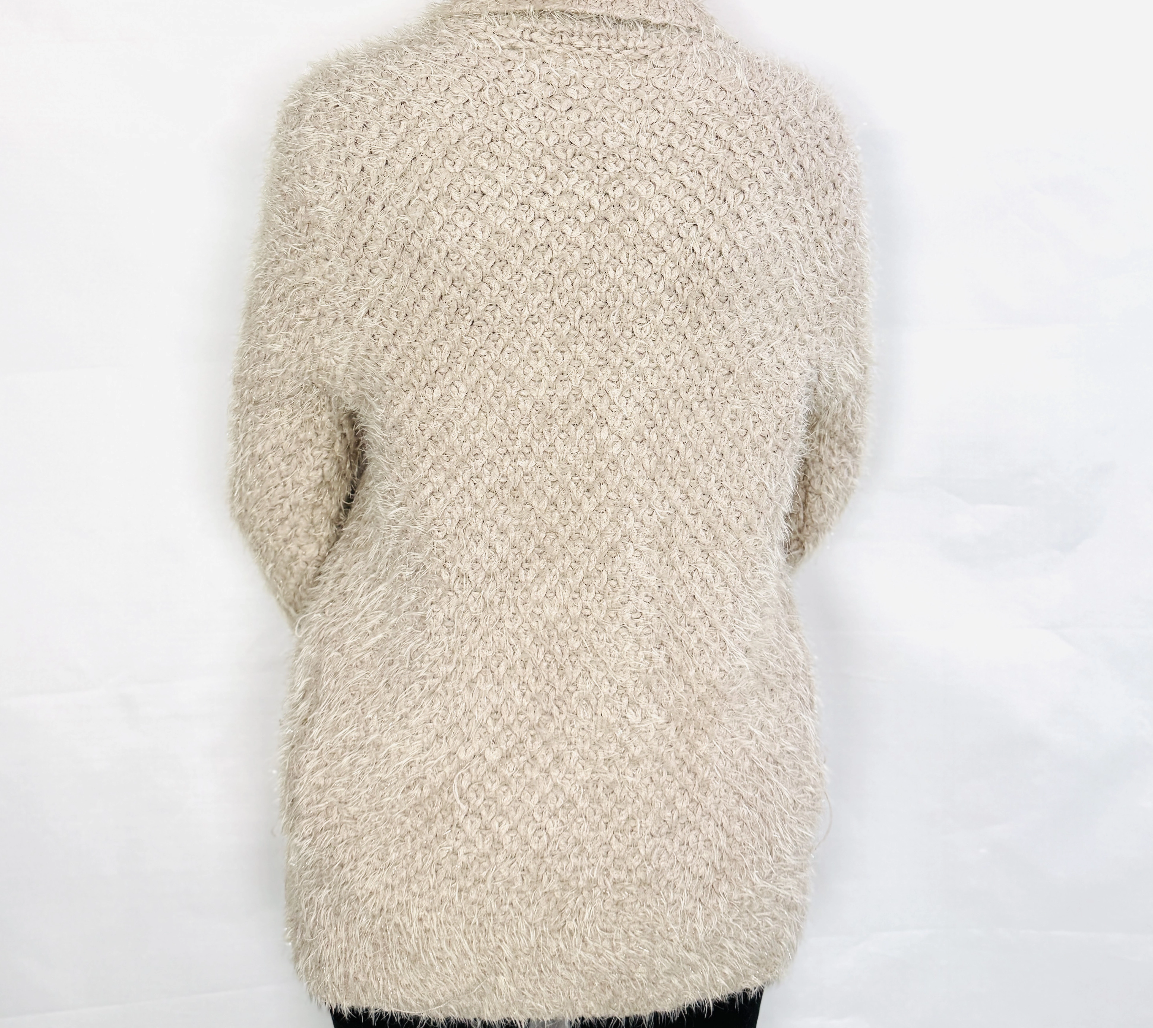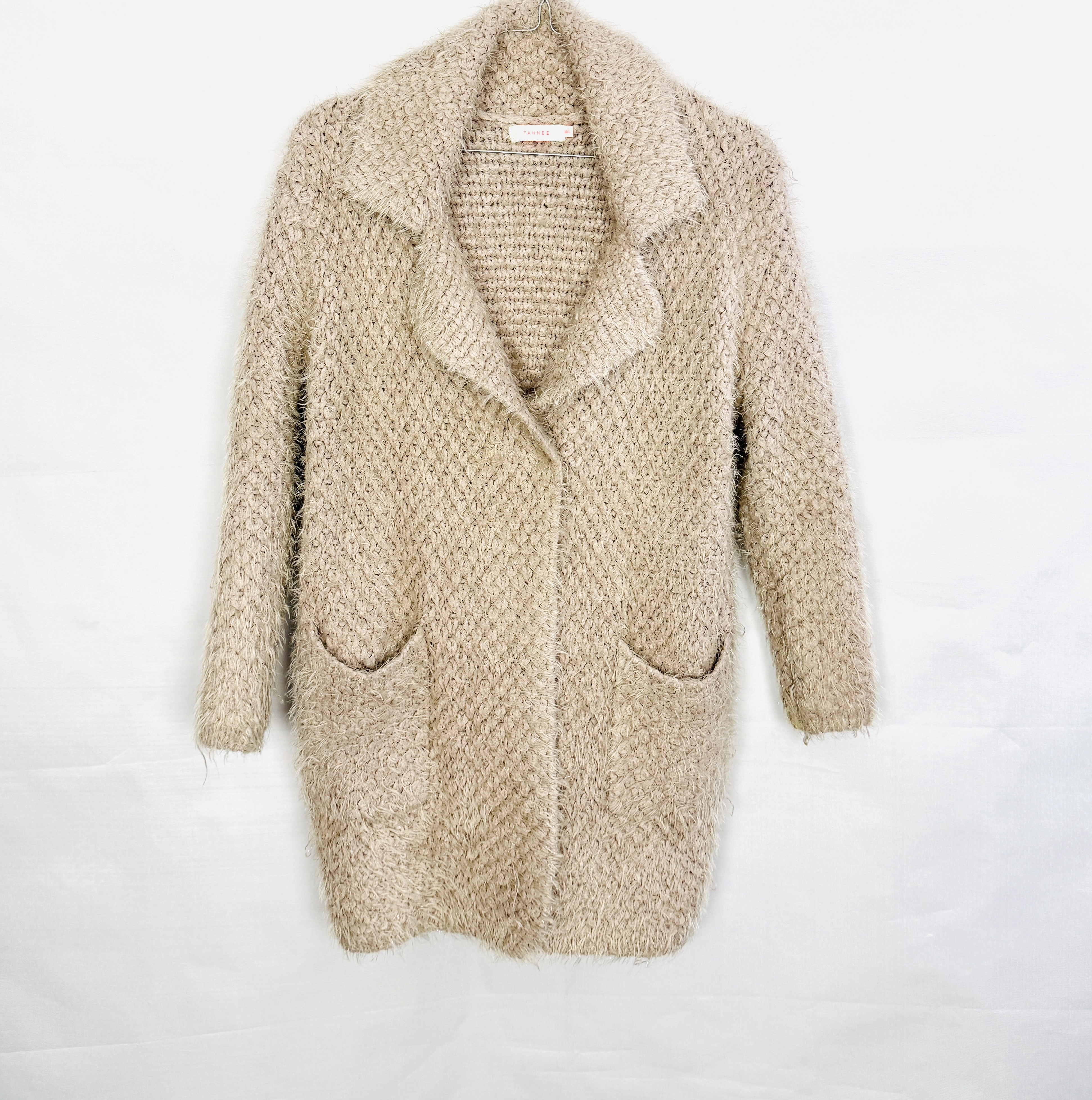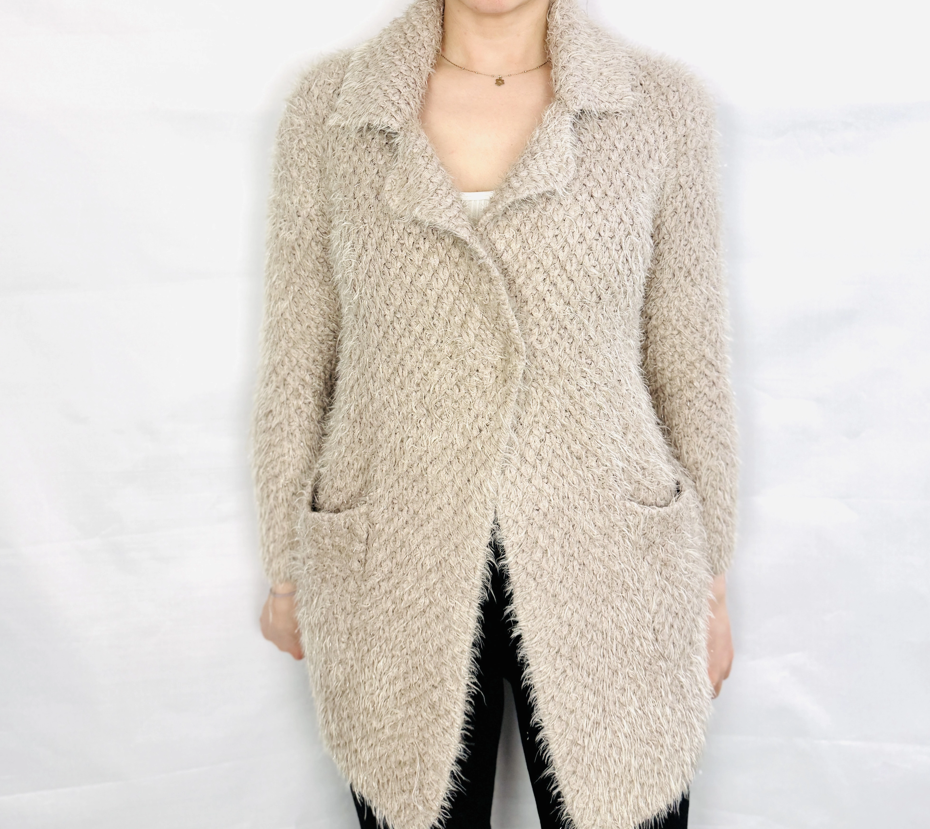 Beżowy włochaty kardigan z kołnierzem M/L 38/40
