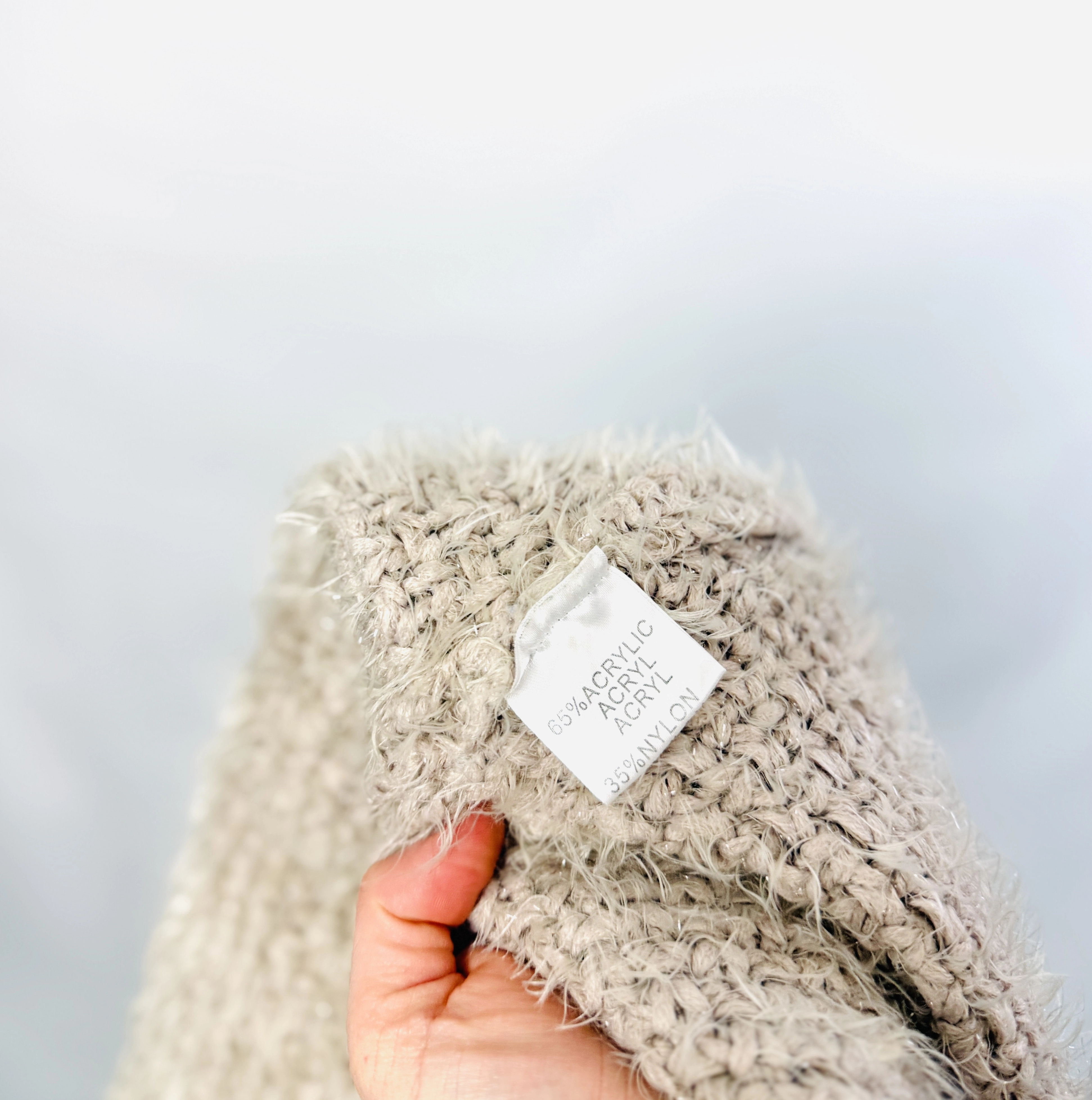 Rękawy są długie i proste, utrzymane w tej samej miękkiej, włochatej strukturze, co reszta modelu, co zapewnia spójny i przytulny efekt. Materiał sprawia wrażenie niezwykle miękkiego, puszystego i delikatnie sprężystego, dzięki czemu kardigan przyjemnie otula ciało i daje poczucie ciepła. Na wysokości bioder znajdują się praktyczne, naszywane kieszenie, które nie tylko dodają funkcjonalności, ale również podkreślają swobodny charakter modelu. Całość prezentuje się lekko i naturalnie, a struktura materiału pięknie pracuje przy każdym ruchu.