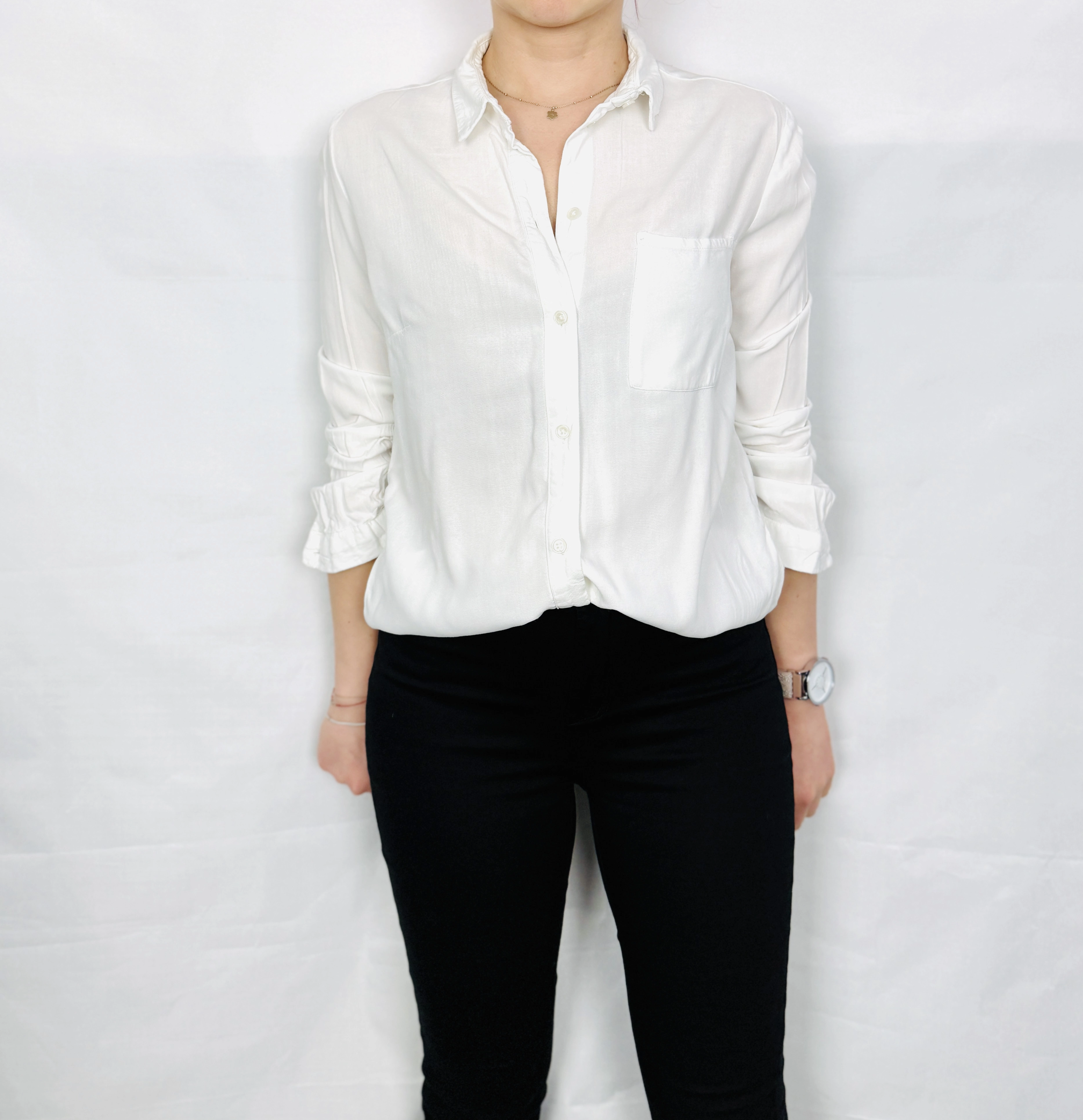 Ta biała koszula to ponadczasowy symbol elegancji i uniwersalności, który nigdy nie wychodzi z mody. Jej czysta, jasna barwa wprowadza do każdej stylizacji świeżość i lekkość, a jednocześnie podkreśla profesjonalizm i klasę. To ubranie, które łączy w sobie klasyczny fason z nowoczesnym wykończeniem, tworząc harmonijną całość idealną na wiele okazji – od codziennych spotkań, przez pracę, aż po bardziej formalne wyjścia. Koszula emanuje spokojem i subtelnością, będąc bazą do tworzenia zarówno minimalistycznych, jak i bardziej wyrazistych stylizacji.
