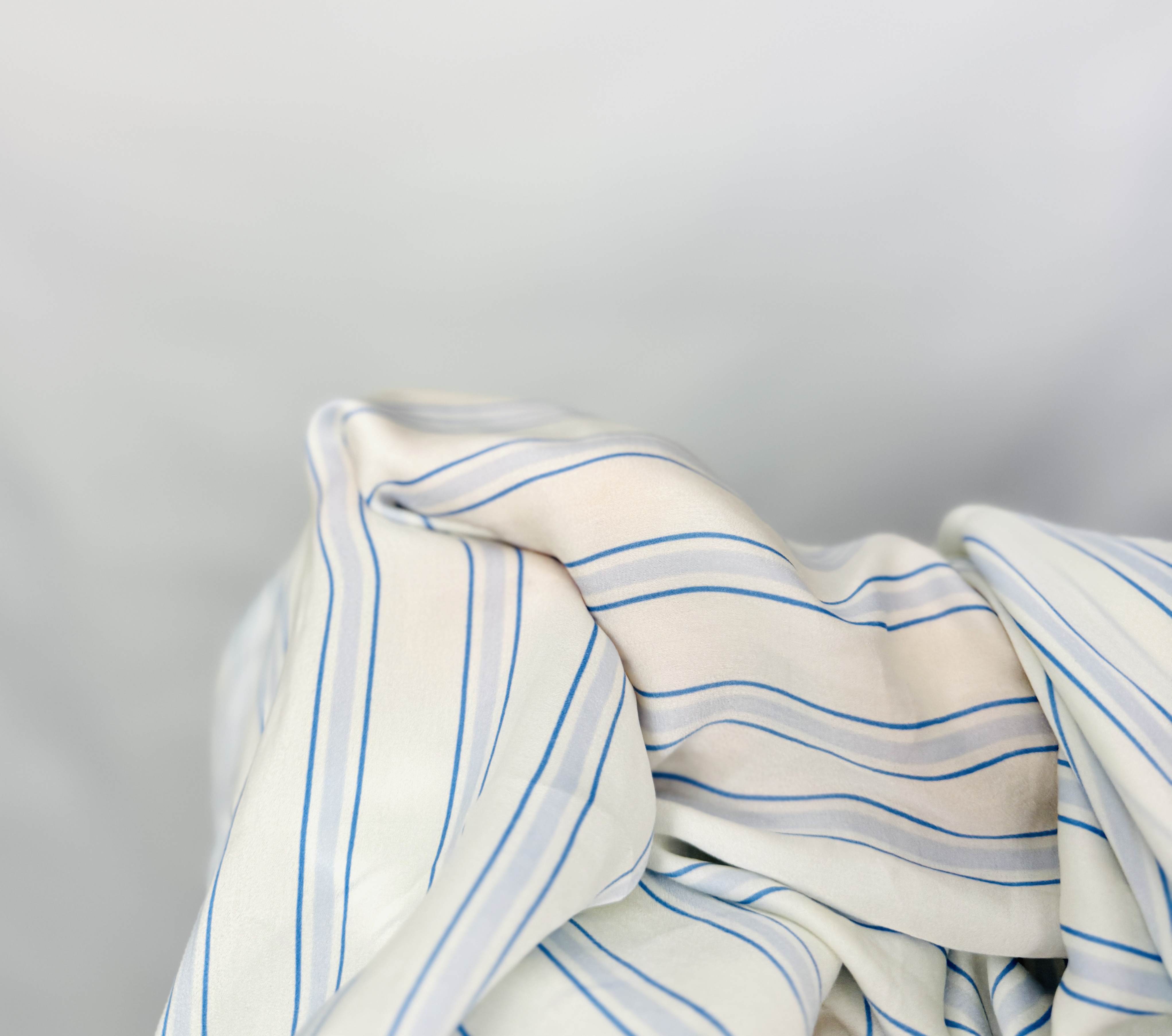 Ta satynowa bluzka emanuje świeżością i subtelną elegancją — jej biało‑błękitne pasy tworzą lekki, marynarski nastrój w nowoczesnym wydaniu. Delikatny połysk tkaniny i pionowe paski nadają całości schludnego, uporządkowanego charakteru, który jednocześnie pozostaje kobiecy i zwiewny. To uniwersalna propozycja dla tych, które lubią połączenie klasyki z nieco romantyczną nutą; bluzka ma w sobie świeżość idealną na wiosnę i lato, a przy tym wystarczająco elegancką formę, by sprawdzić się również podczas bardziej formalnych okazji.