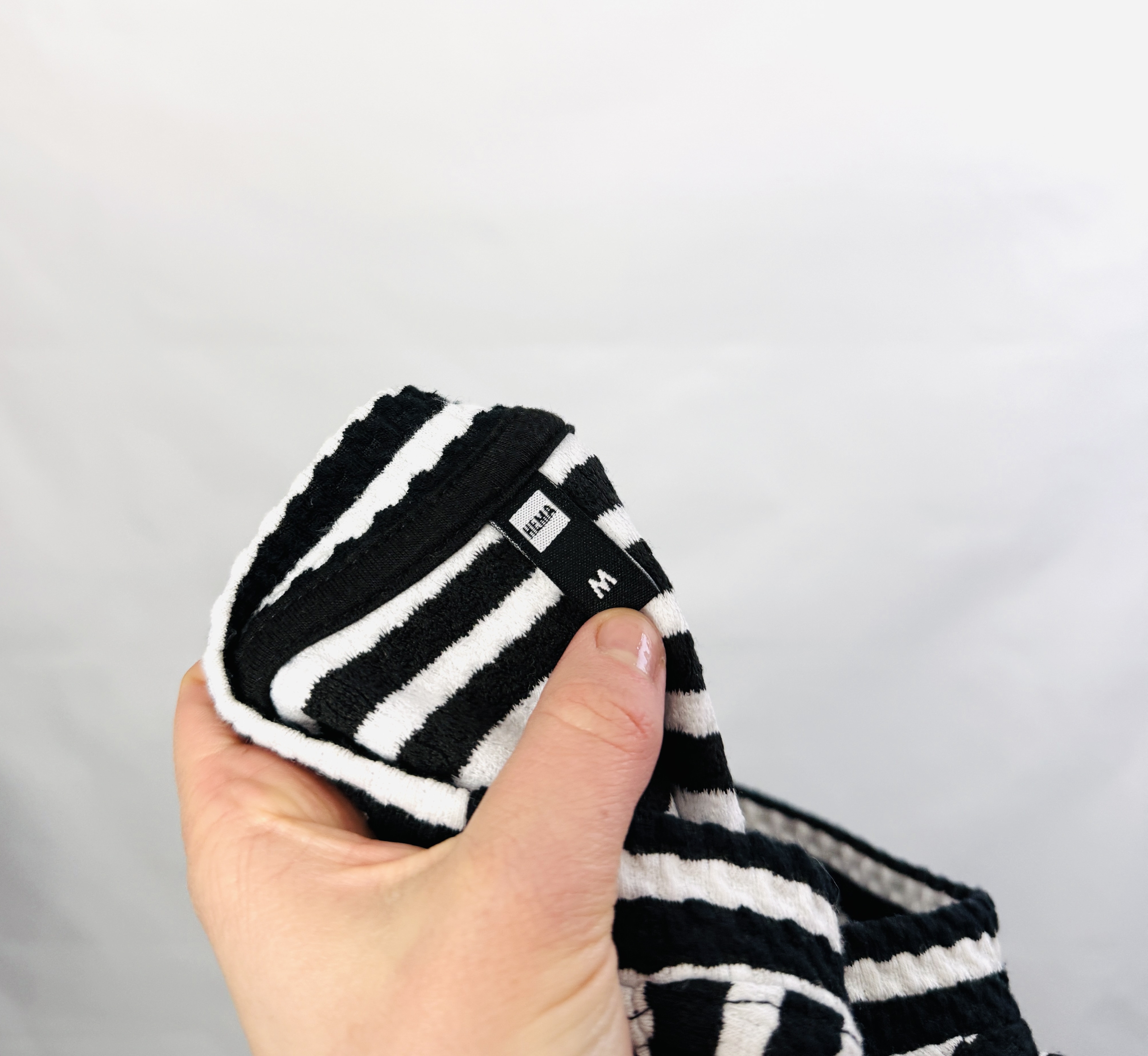 To klasyczna i jednocześnie pełna charakteru propozycja, która łączy prostotę z wyraźnym rytmem graficznym. Kontrastujące, równe paski w połączeniu z regularną strukturą dzianiny tworzą elegancki, lekko marynarski nastrój, ale w nowoczesnym, miejskim wydaniu. Bluza ma w sobie spokój i pewność formy — jest doskonałym elementem garderoby dla osób ceniących przemyślane, a jednocześnie efektowne rozwiązania.