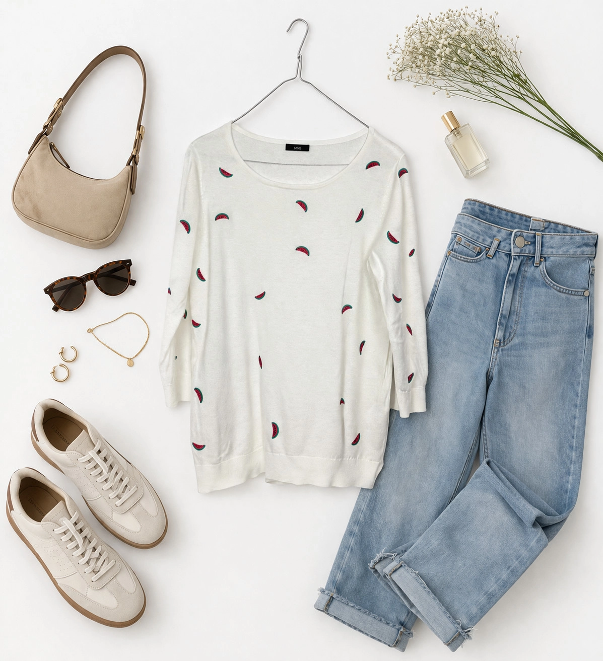 Stylizacyjnie biały sweterek z nadrukiem arbuzów to prawdziwy must-have na co dzień. Świetnie komponuje się z czarnymi legginsami lub jeansami, tworząc zestaw pełen luzu i nowoczesnego stylu. Można go również zestawić z jasnymi spodniami lub spódnicą ołówkową, co pozwoli na stworzenie bardziej kobiecego i subtelnego looku. Biel pięknie współgra z pastelami, szarością, beżem oraz delikatnymi odcieniami zieleni. To produkt, który łączy w sobie wygodę, uniwersalność i subtelny urok, idealny dla kobiet ceniących modę z klasą i komfort na co dzień.