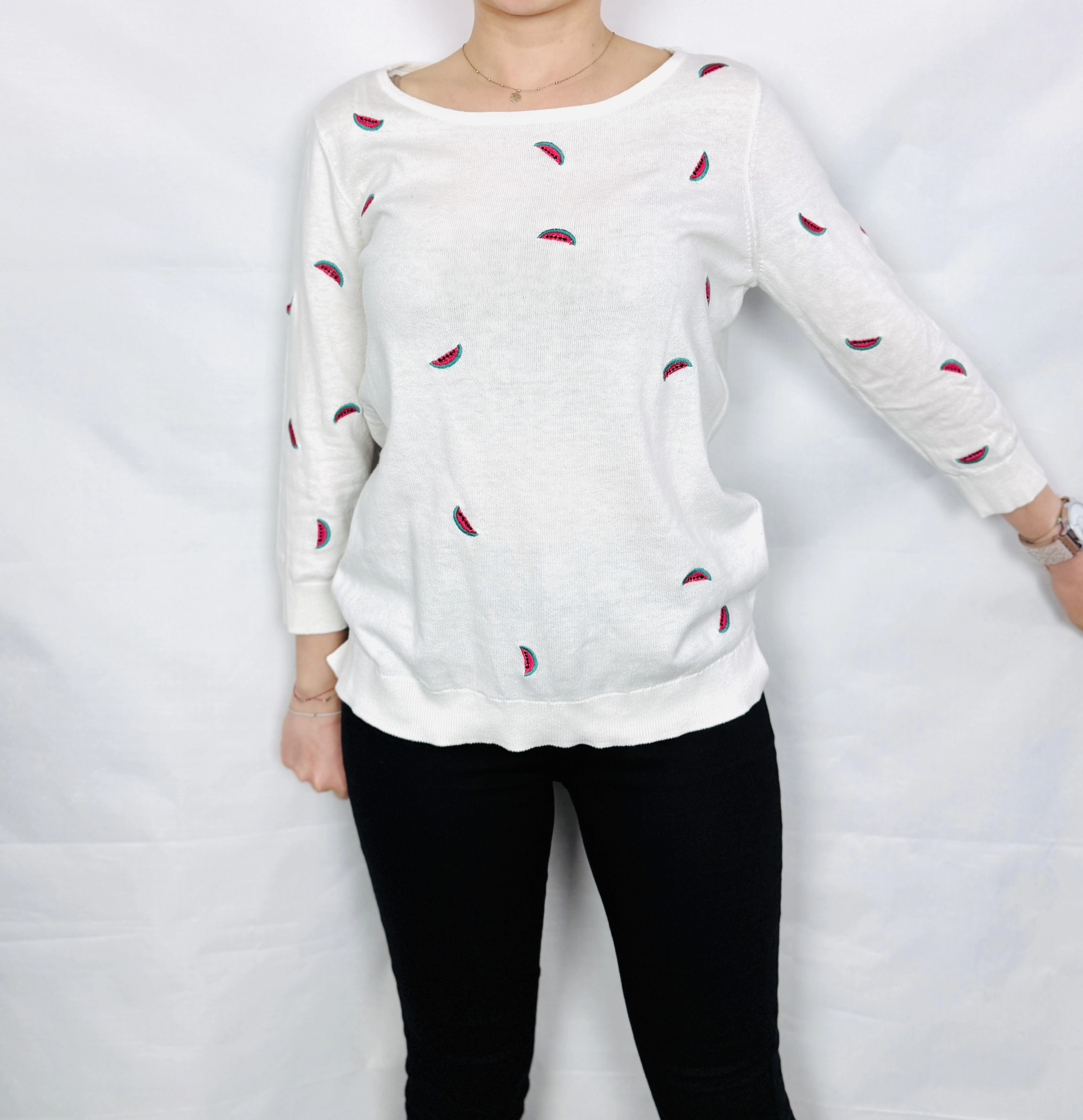 Biały sweterek z nadrukiem arbuzów L 40