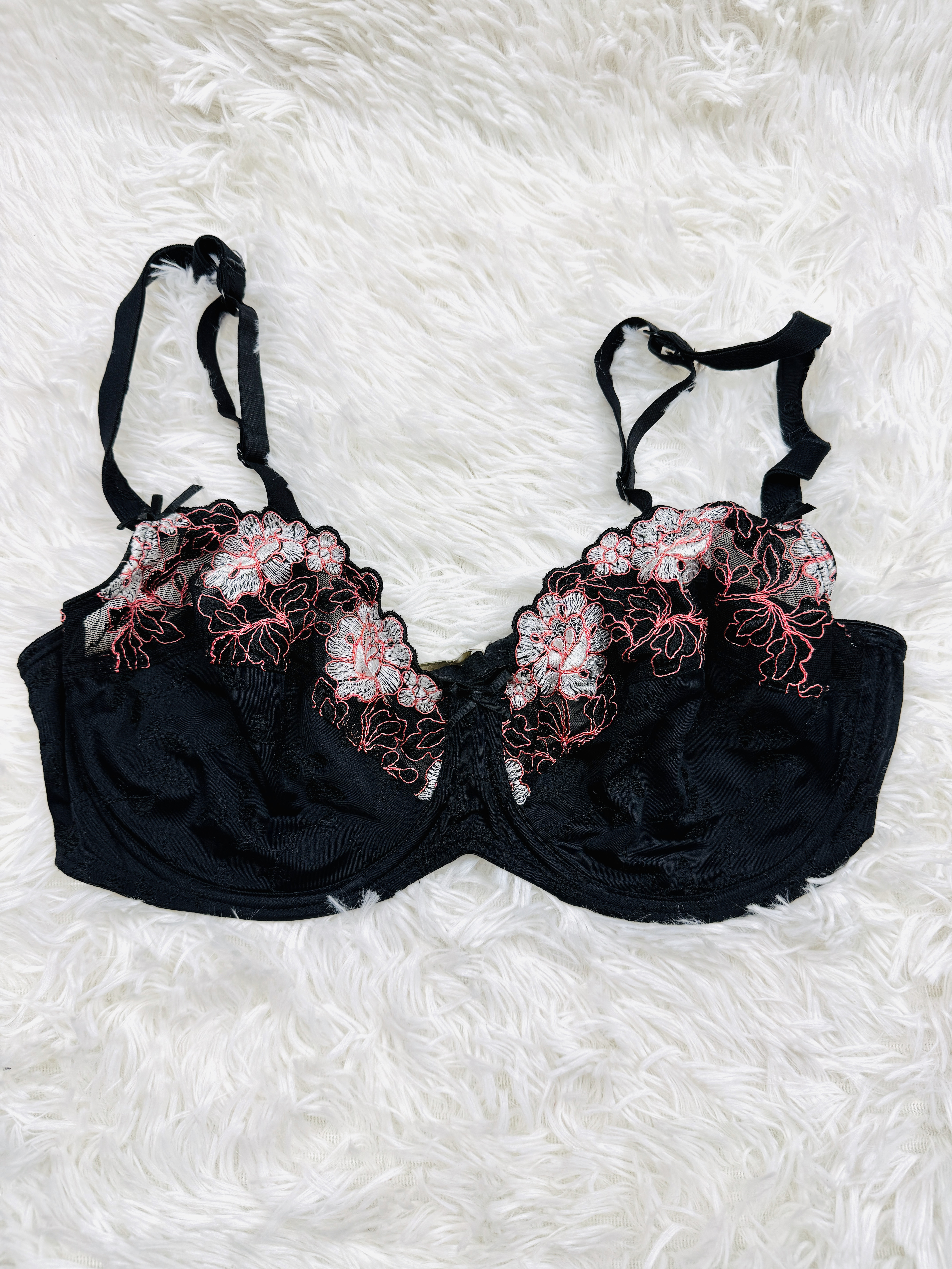 Biustonosz miękki fiszbiny 85D czarny hafty