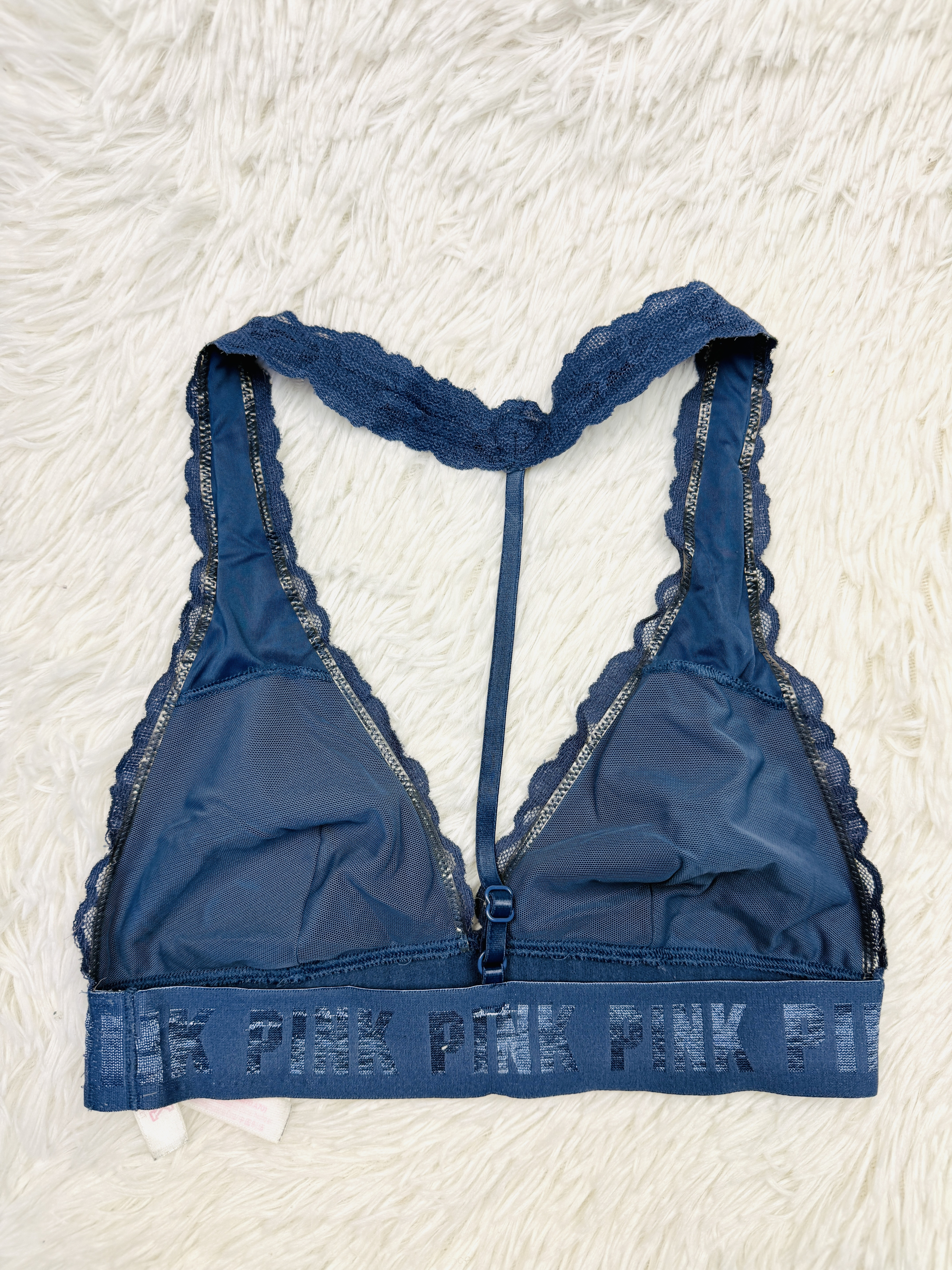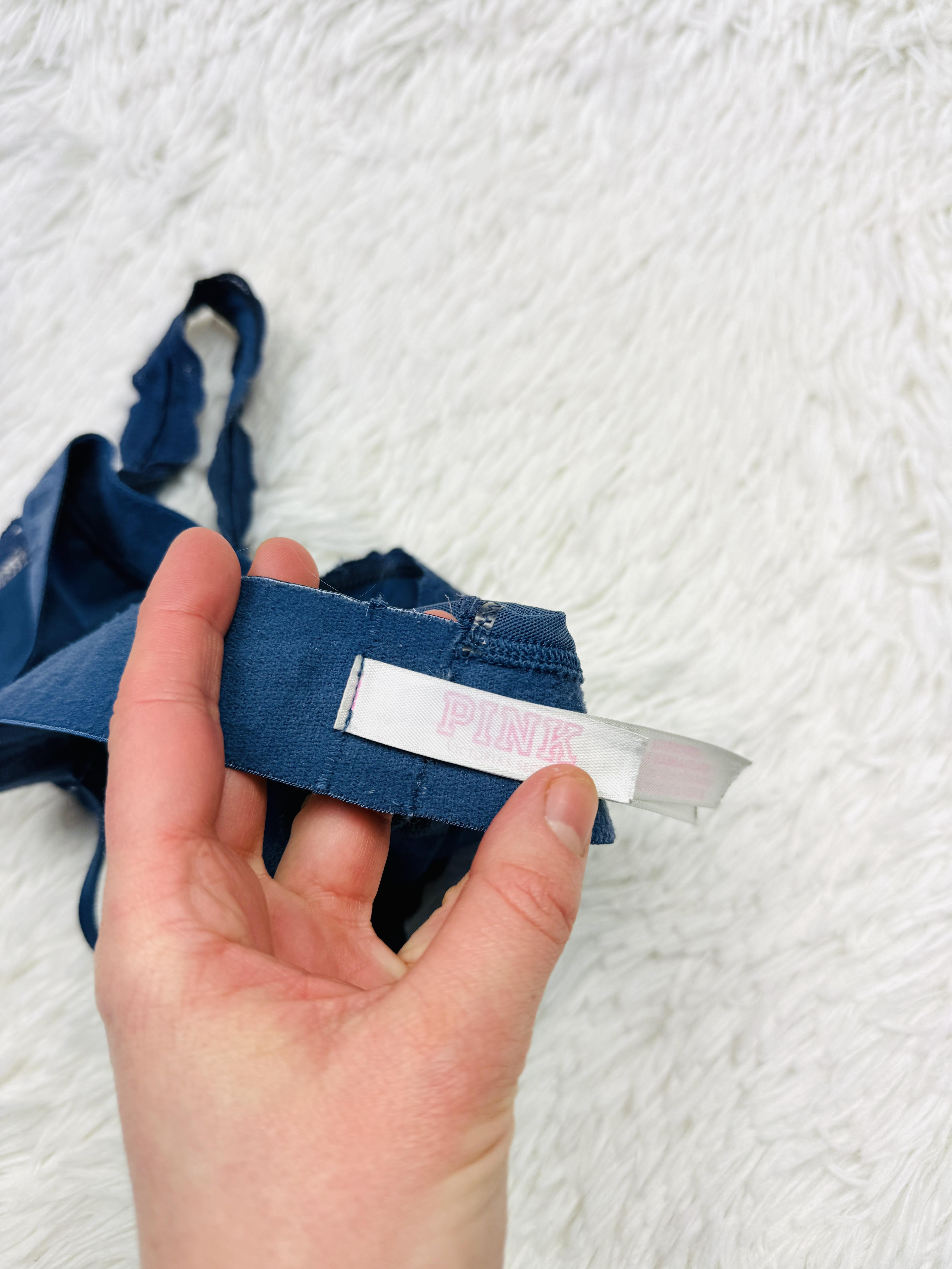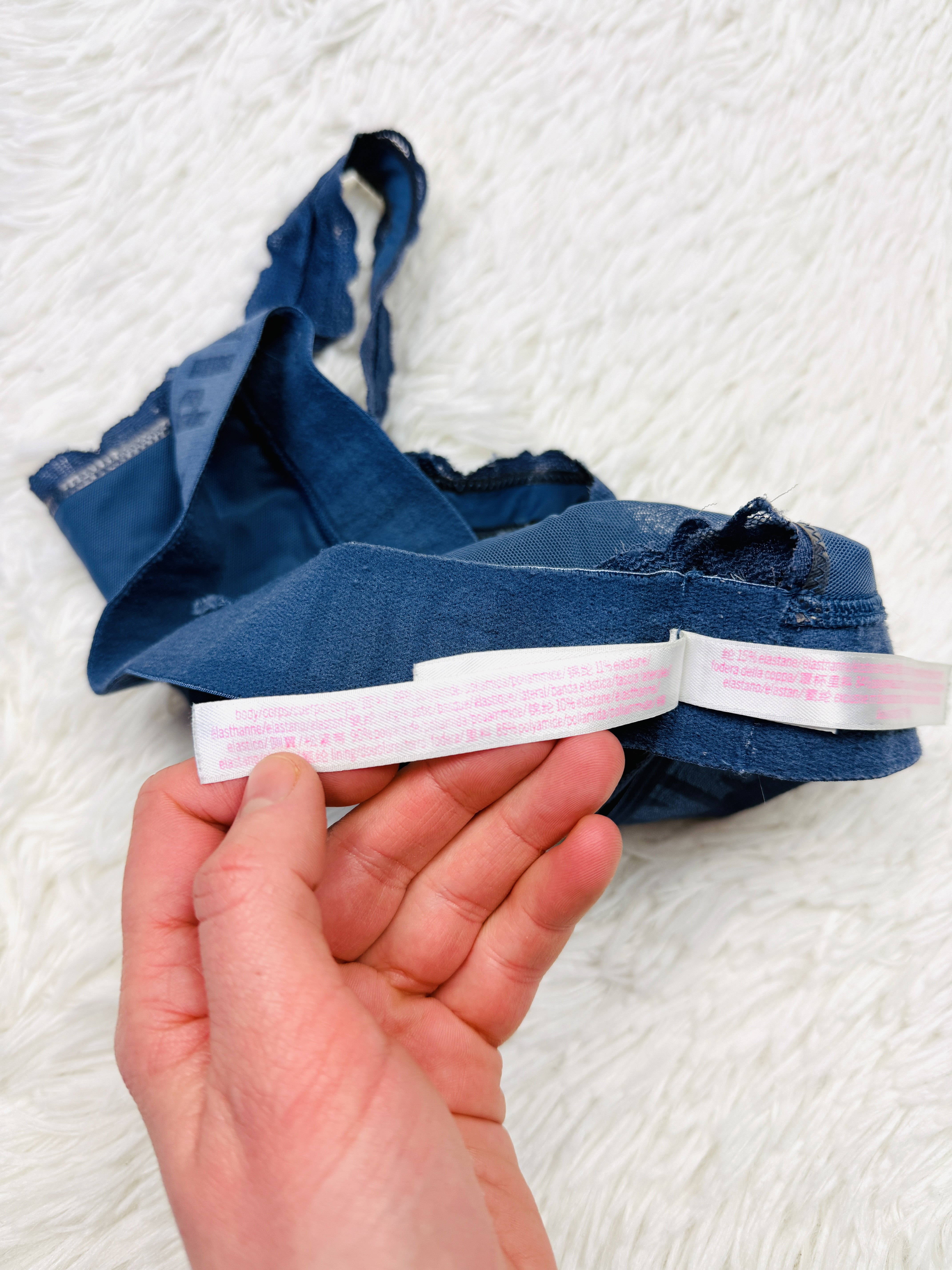 Biustonosz nie ma fiszbin, ma miejsce na włożenie wkładek. Materiał ma kilka skaz (widoczne na zdjęciu).