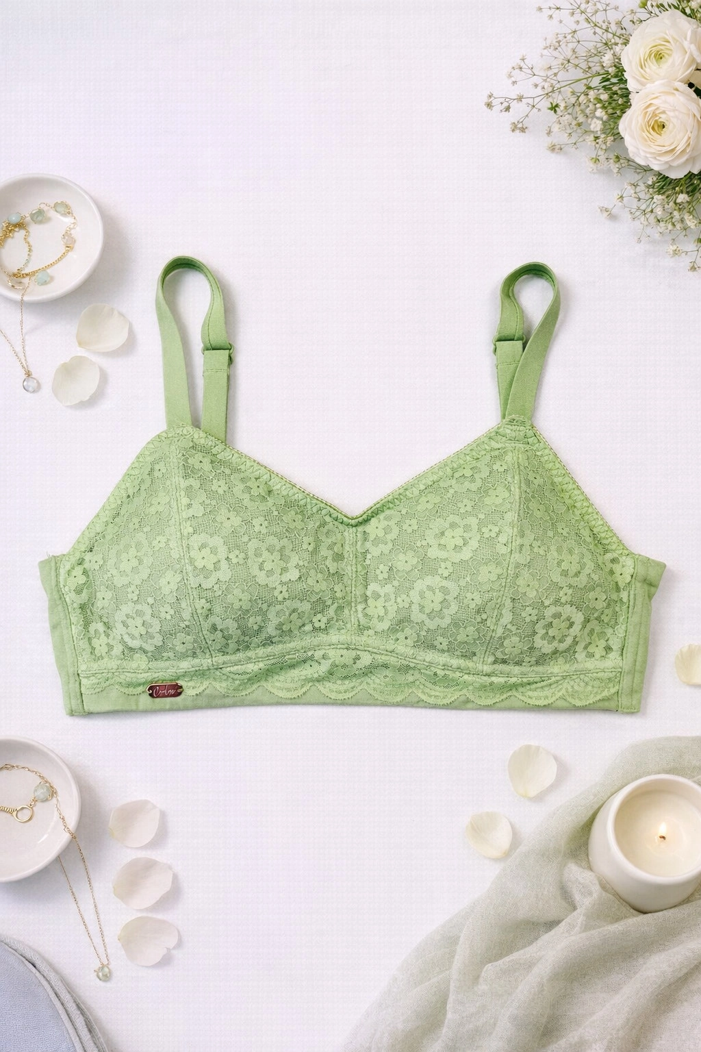 Biustonosz nie ma fiszbin, w miseczkach ma wyjmowane wypełnienie.