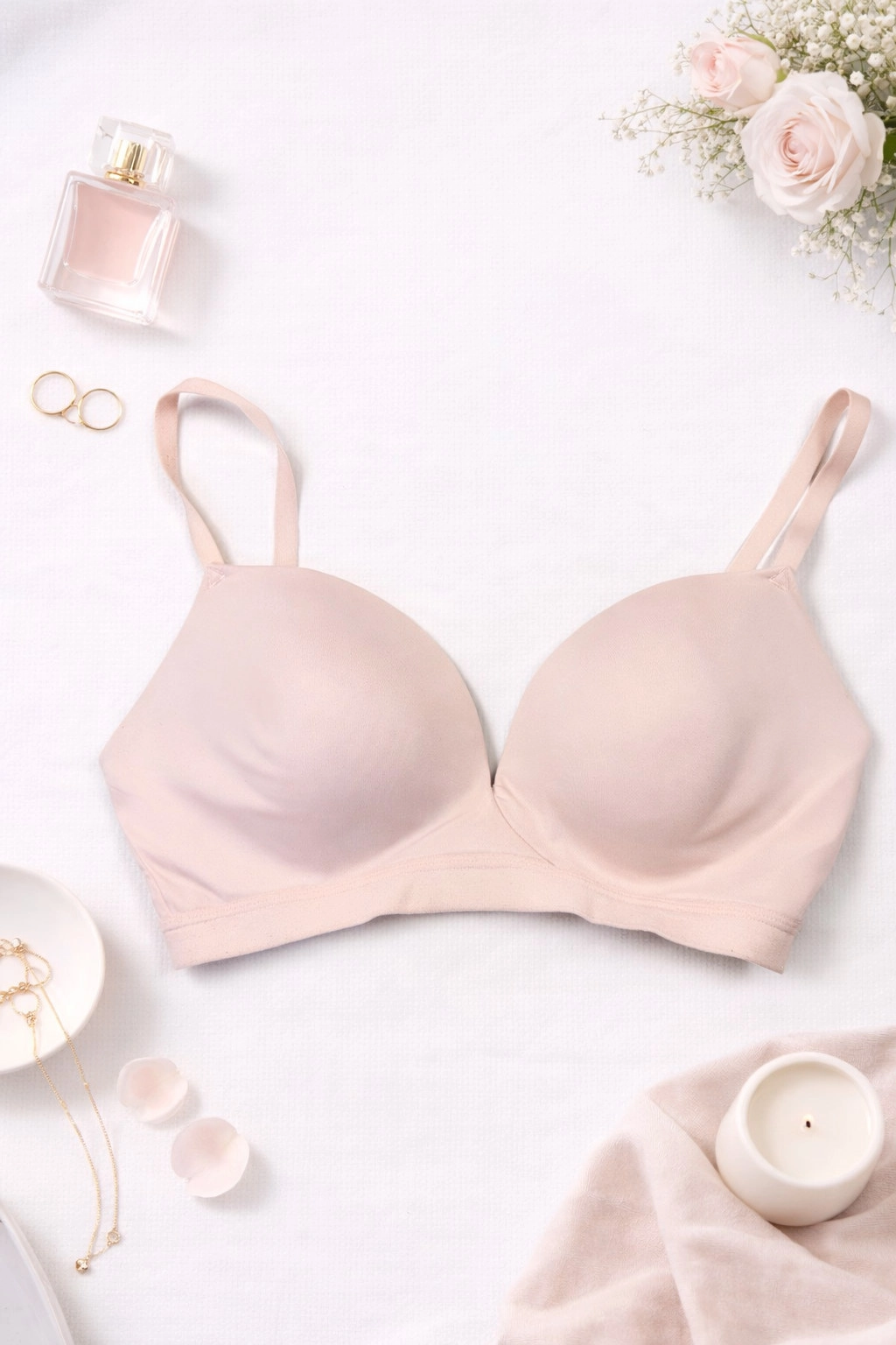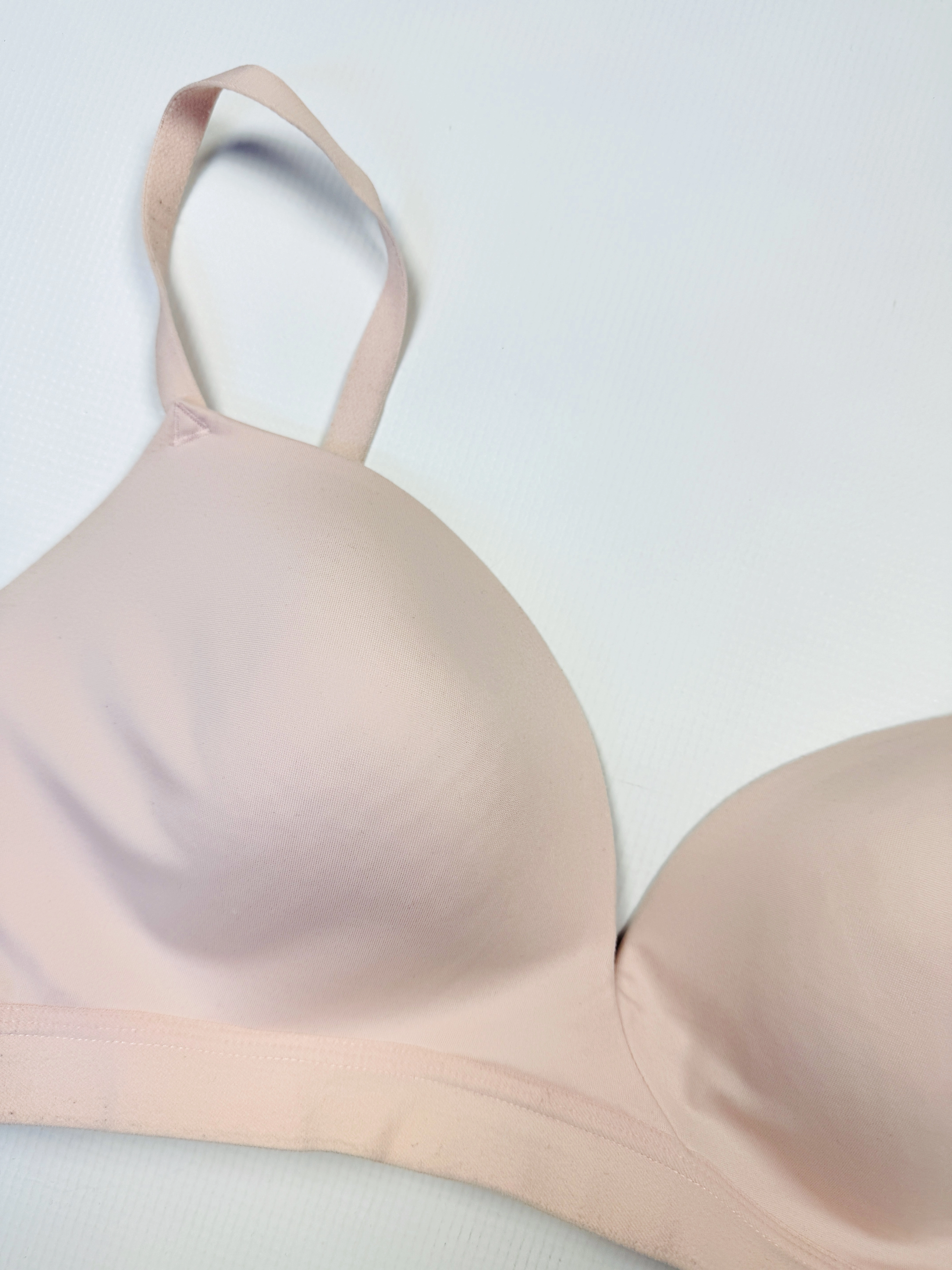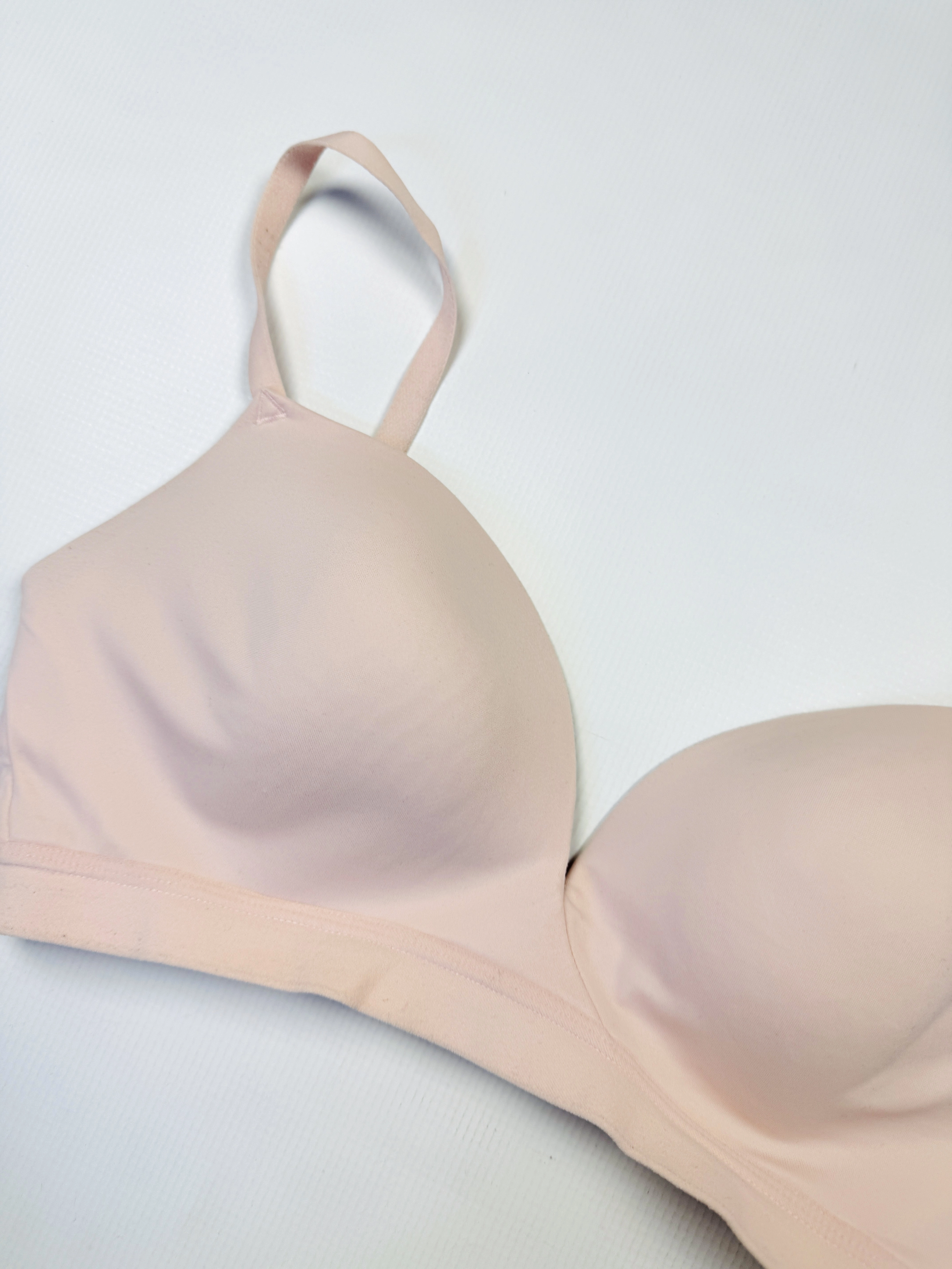 Biustonosz nie ma fiszbin, w miseczkach ma wypełnienie. Materiał ma kilka skaz (widoczne na zdjęciu).