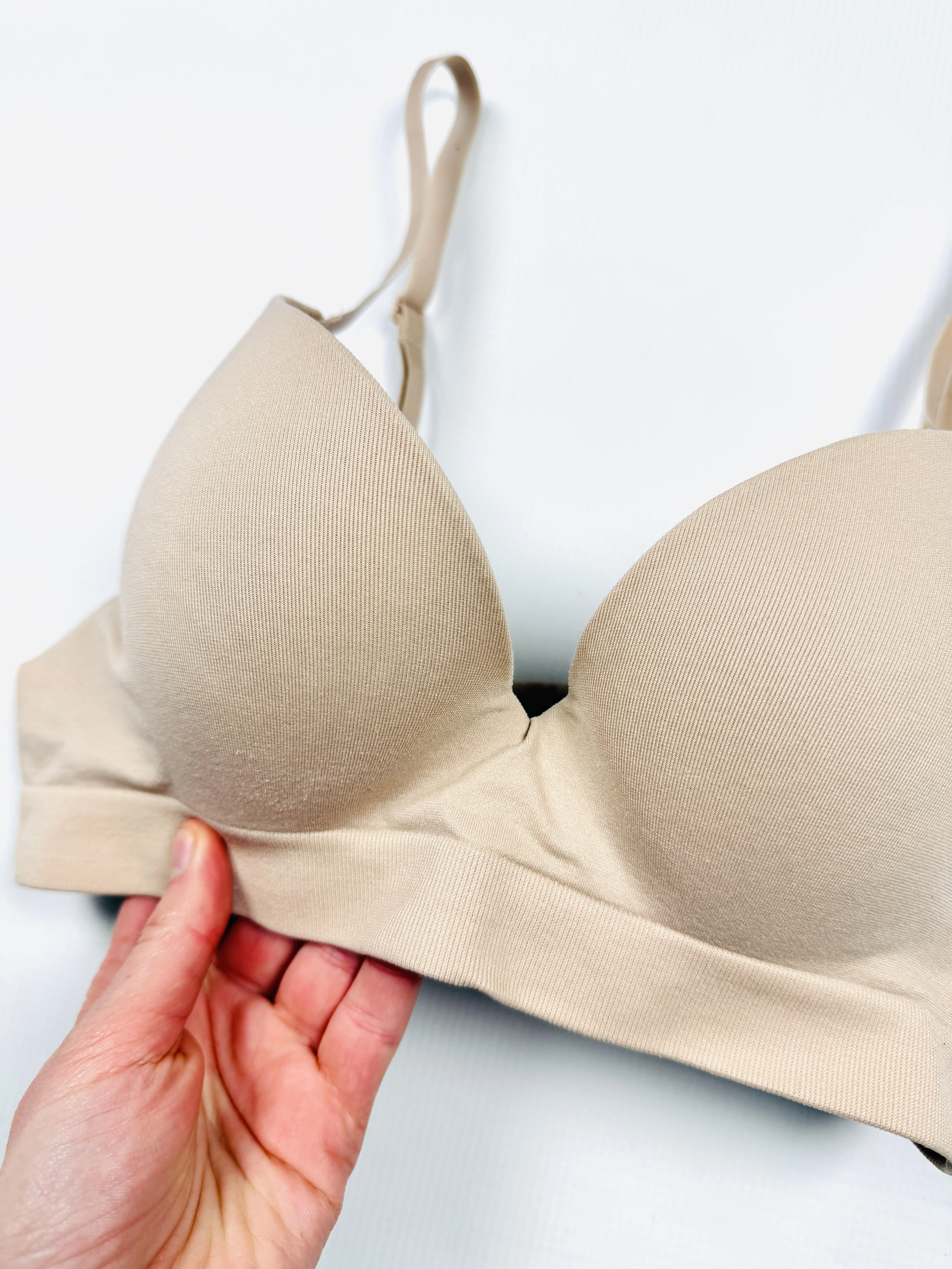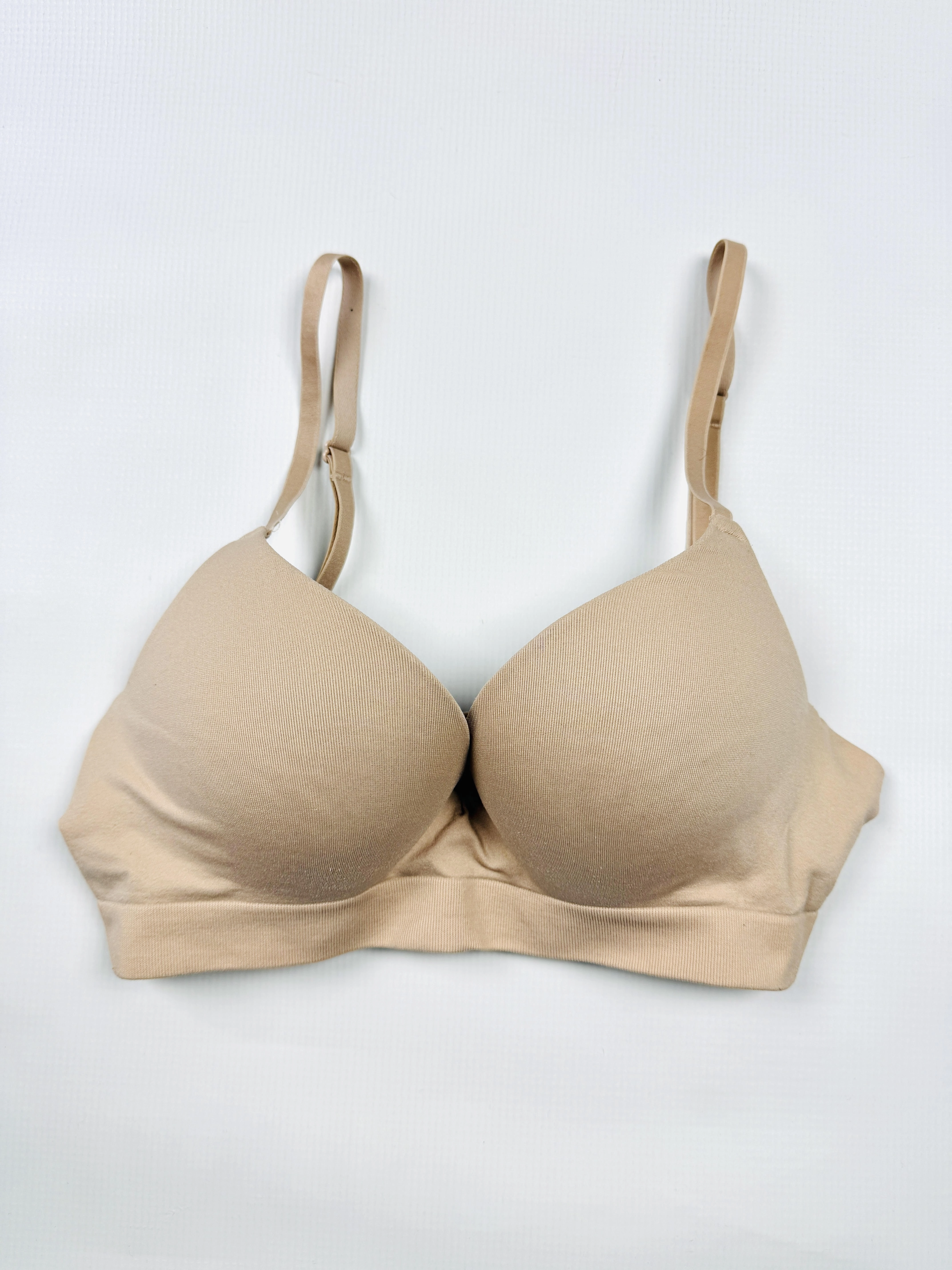 Biustonosz ma fiszbiny, w miseczkach ma wypełnienie oraz dodatkowe grubsze wypełnienie w ich dolnej części.
