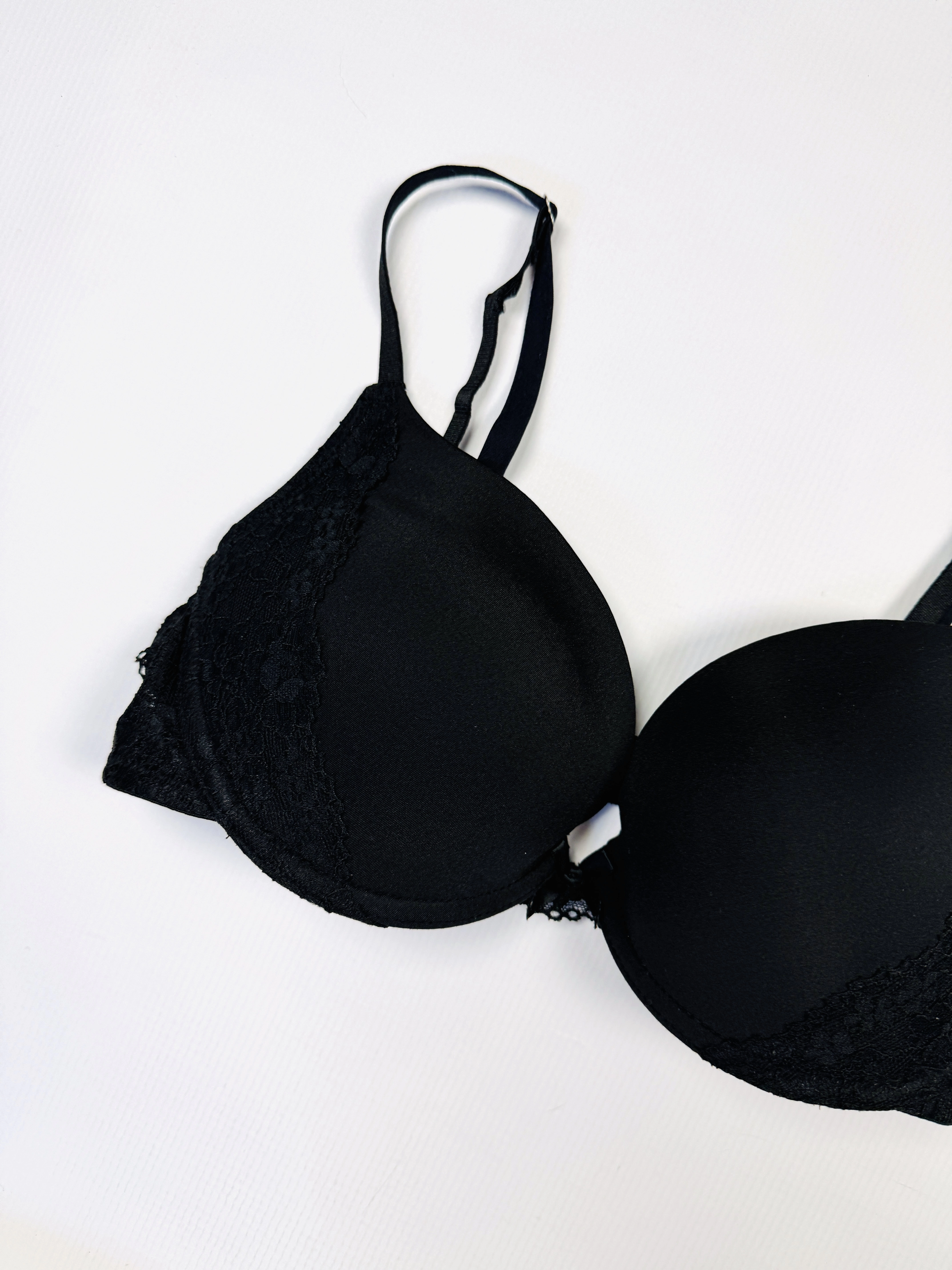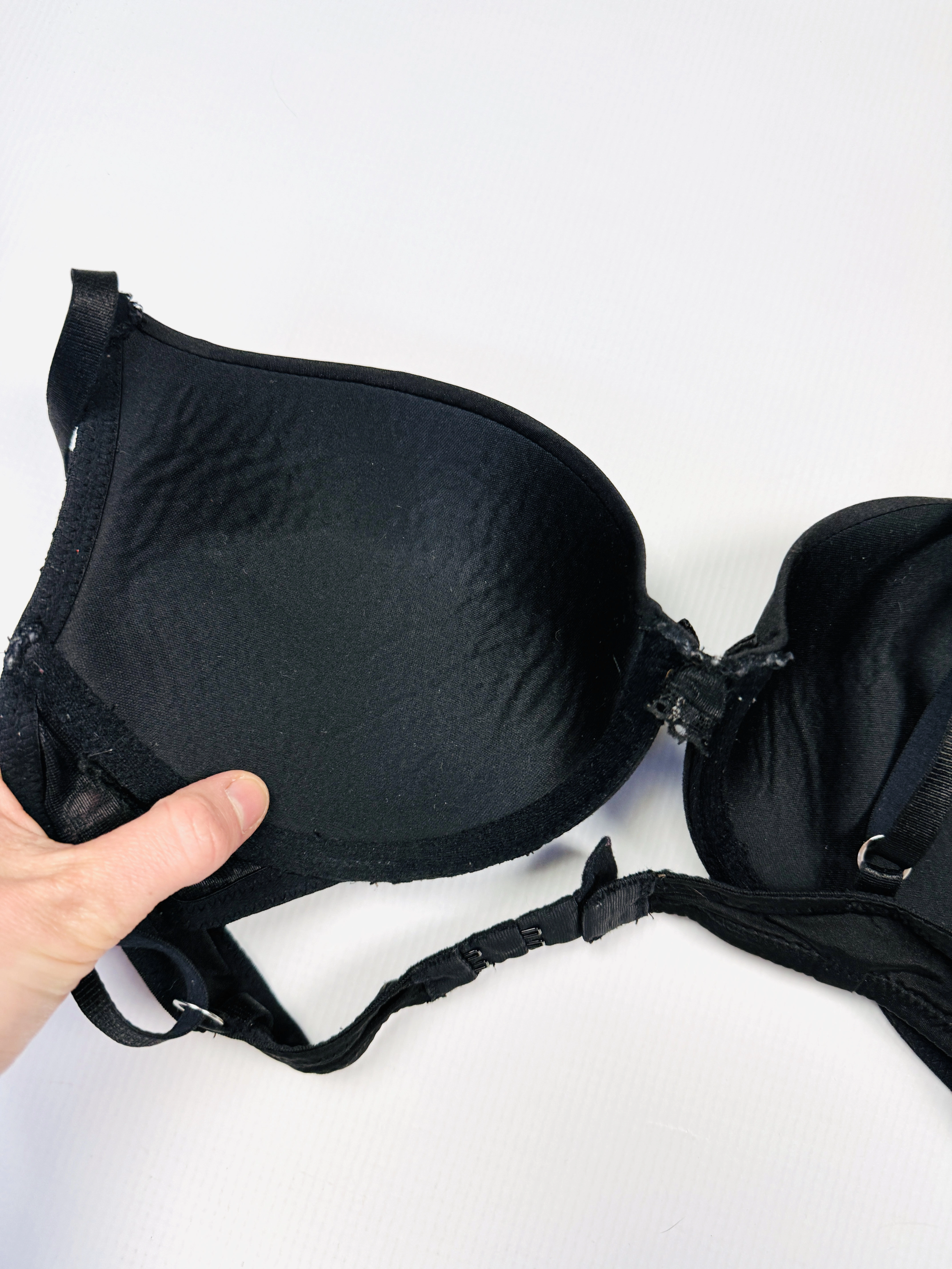 Biustonosz ma fiszbiny, w miseczkach ma wypełnienie oraz dodatkowe grubsze wypełnienie w ich dolnej części.