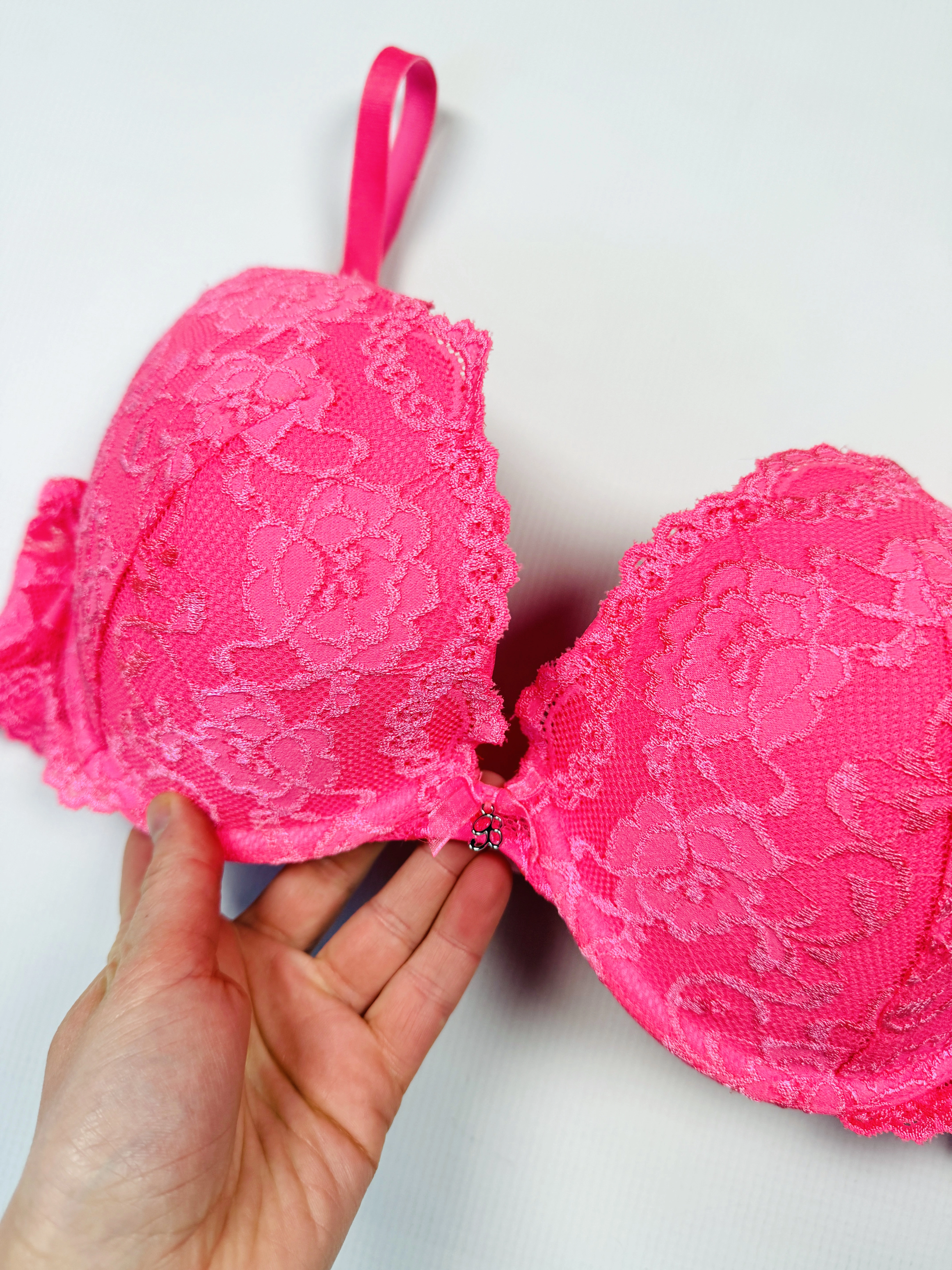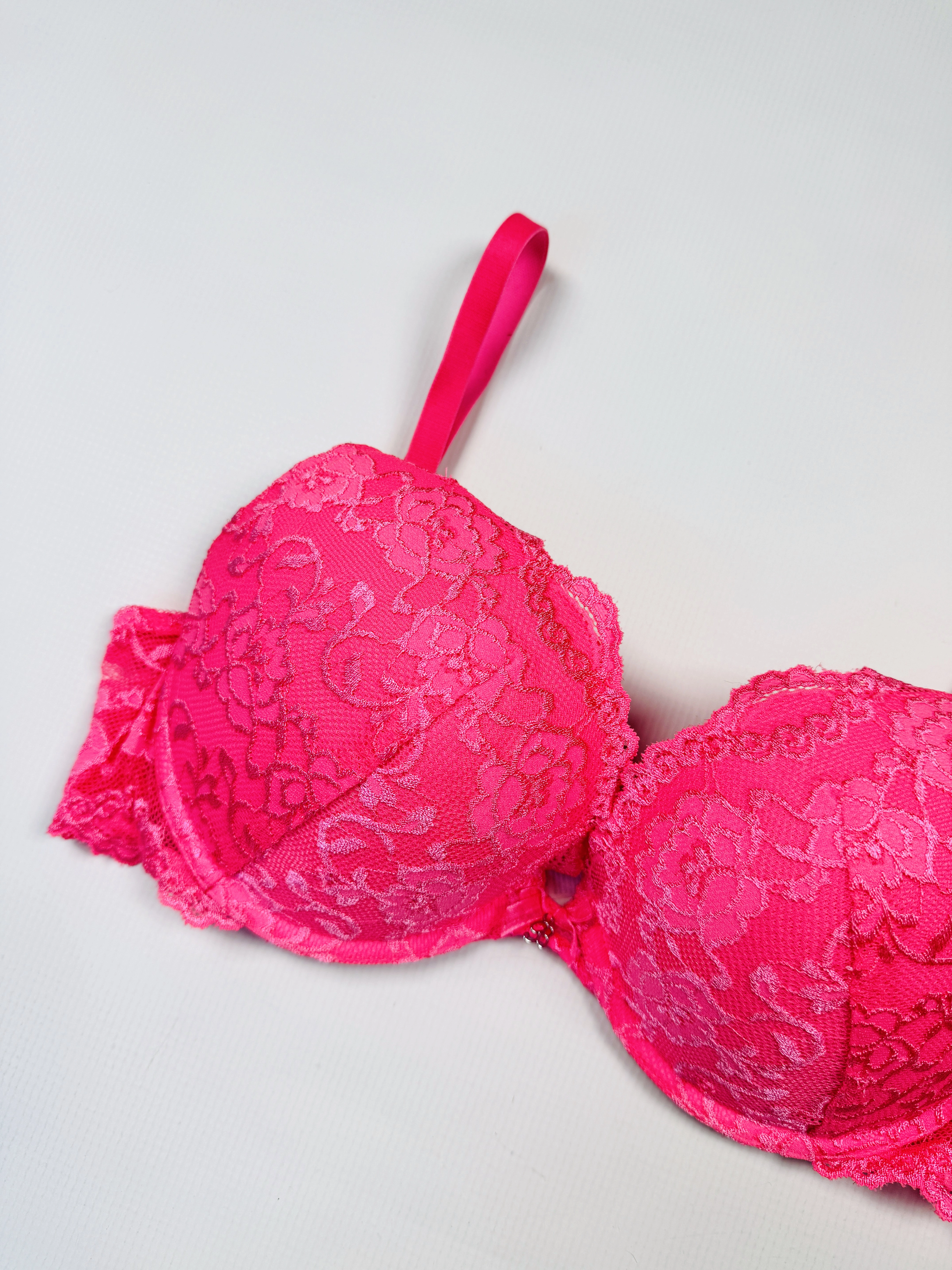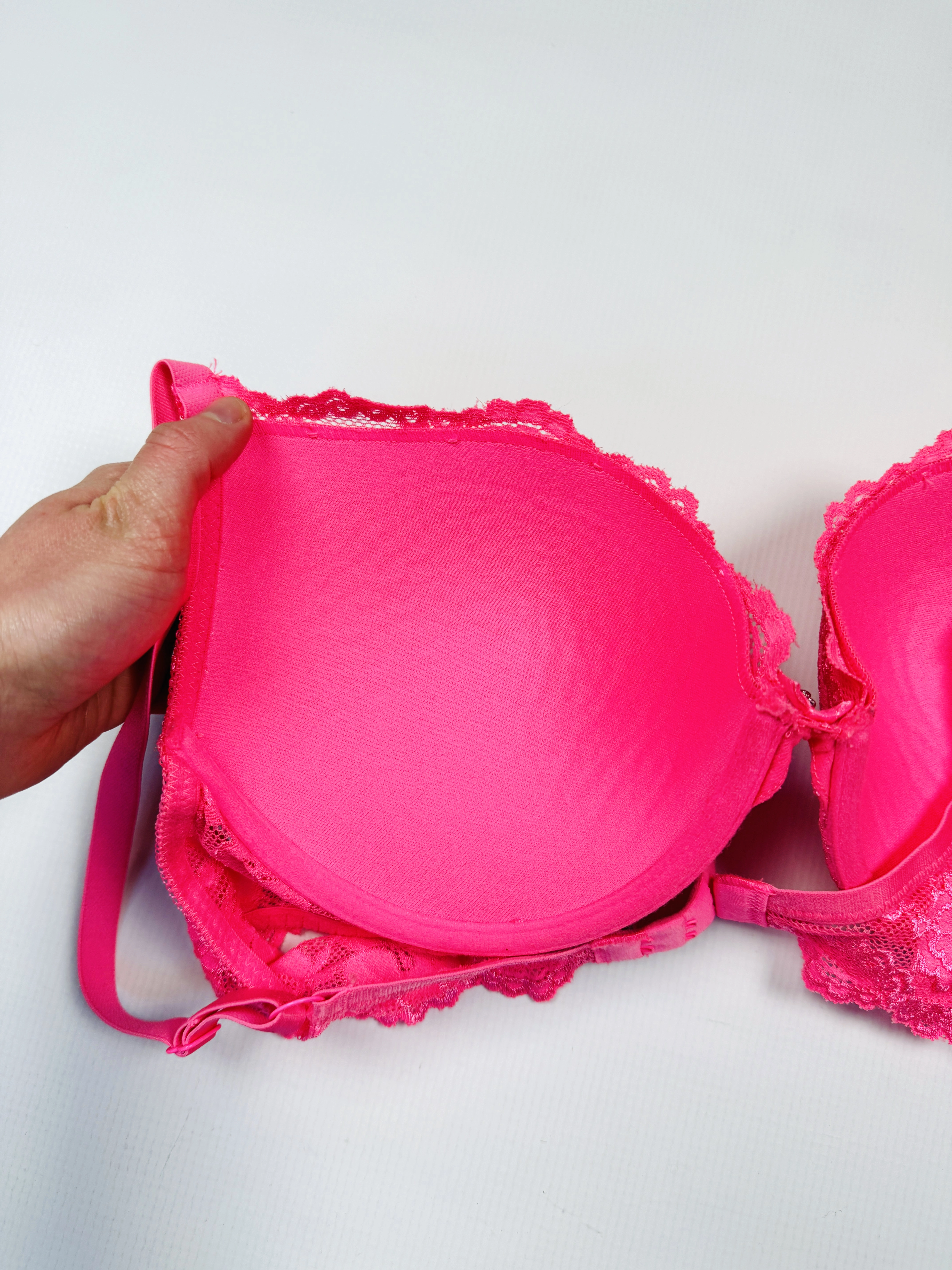 Biustonosz ma fiszbiny, w miseczkach ma wypełnienie oraz dodatkowe grubsze wypełnienie w ich dolnej części.
