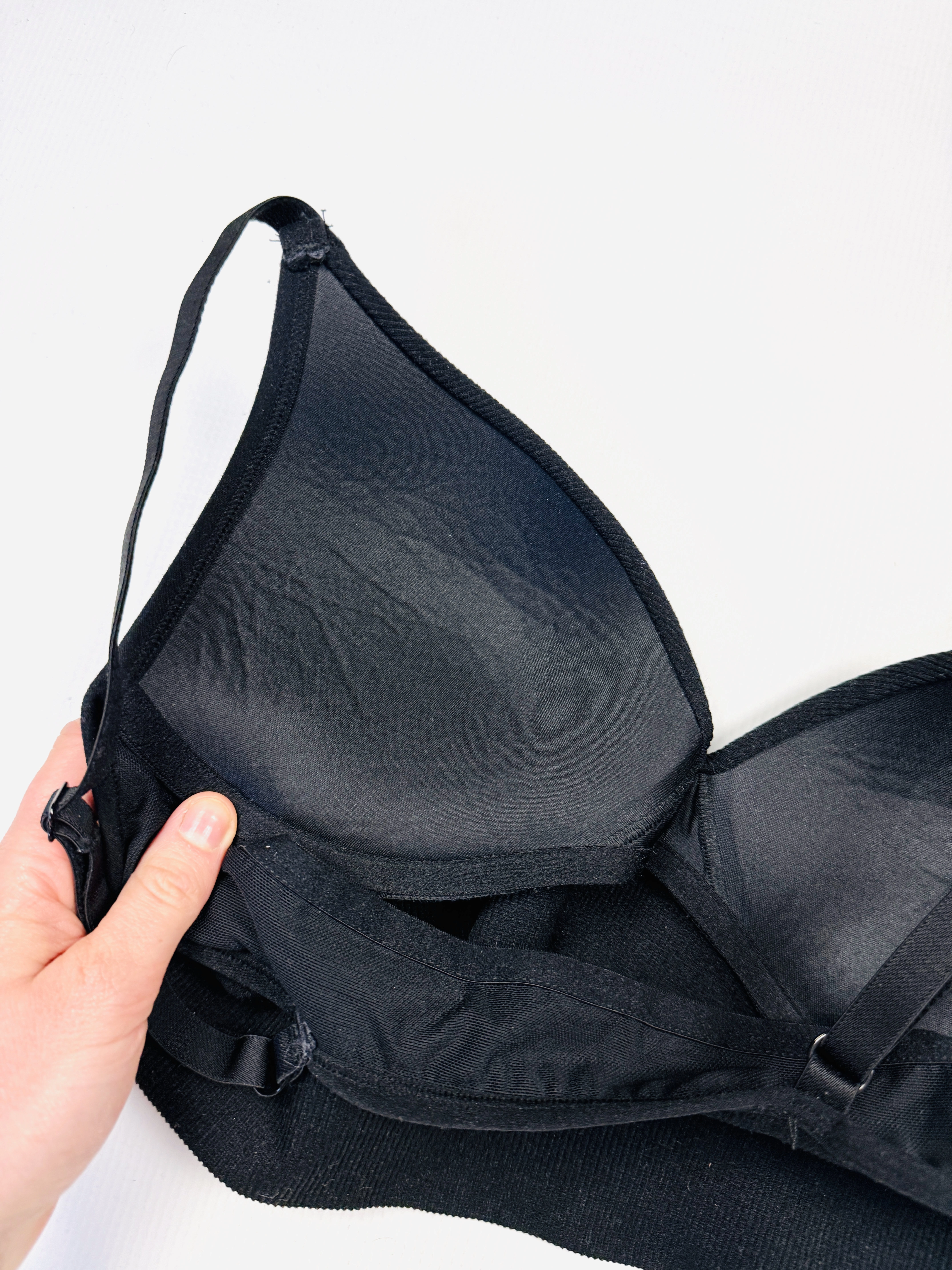 Biustonosz nie ma fiszbin, w miseczkach ma wypełnienie oraz dodatkowe grubsze wypełnienie w ich dolnej części.