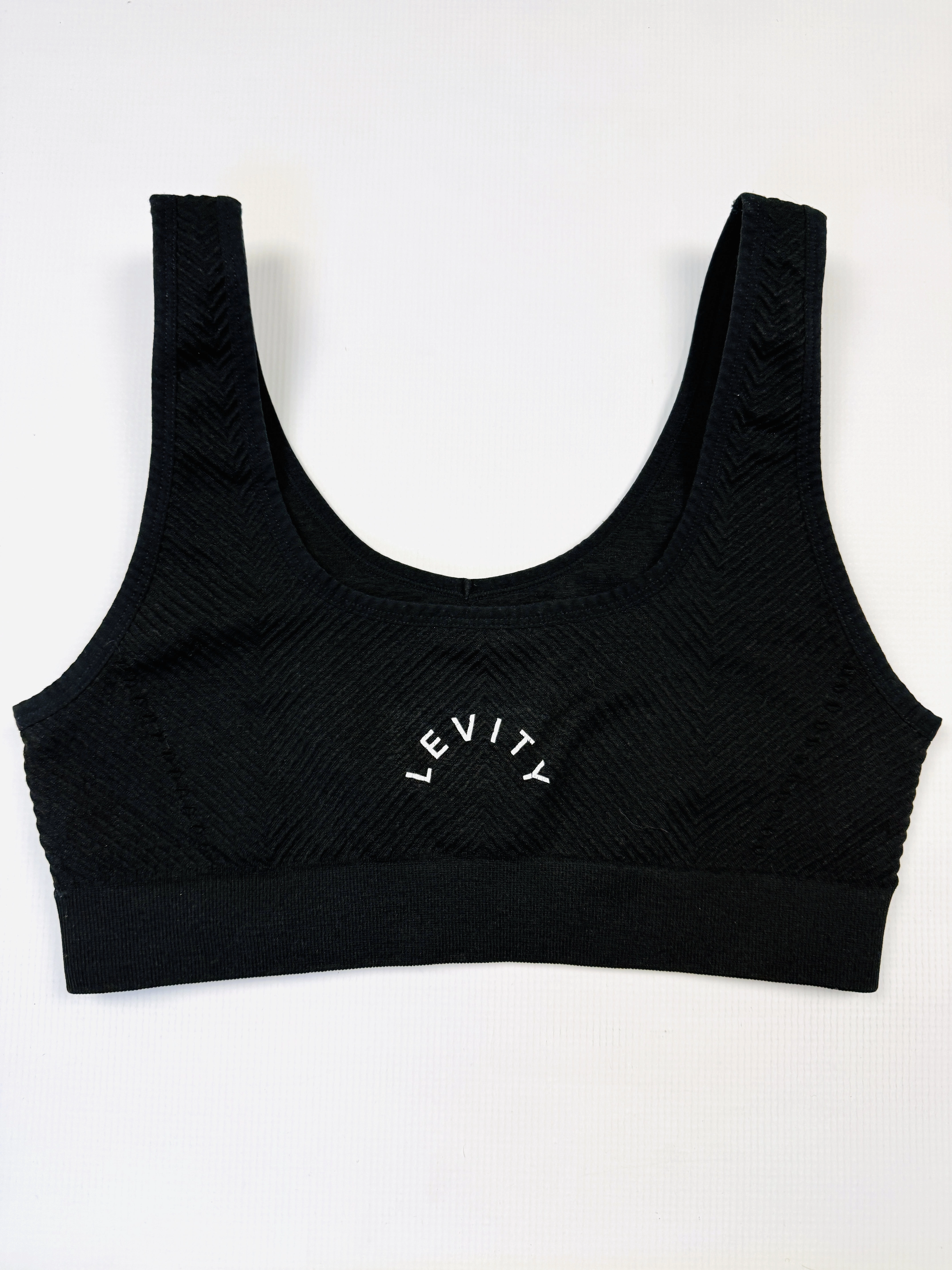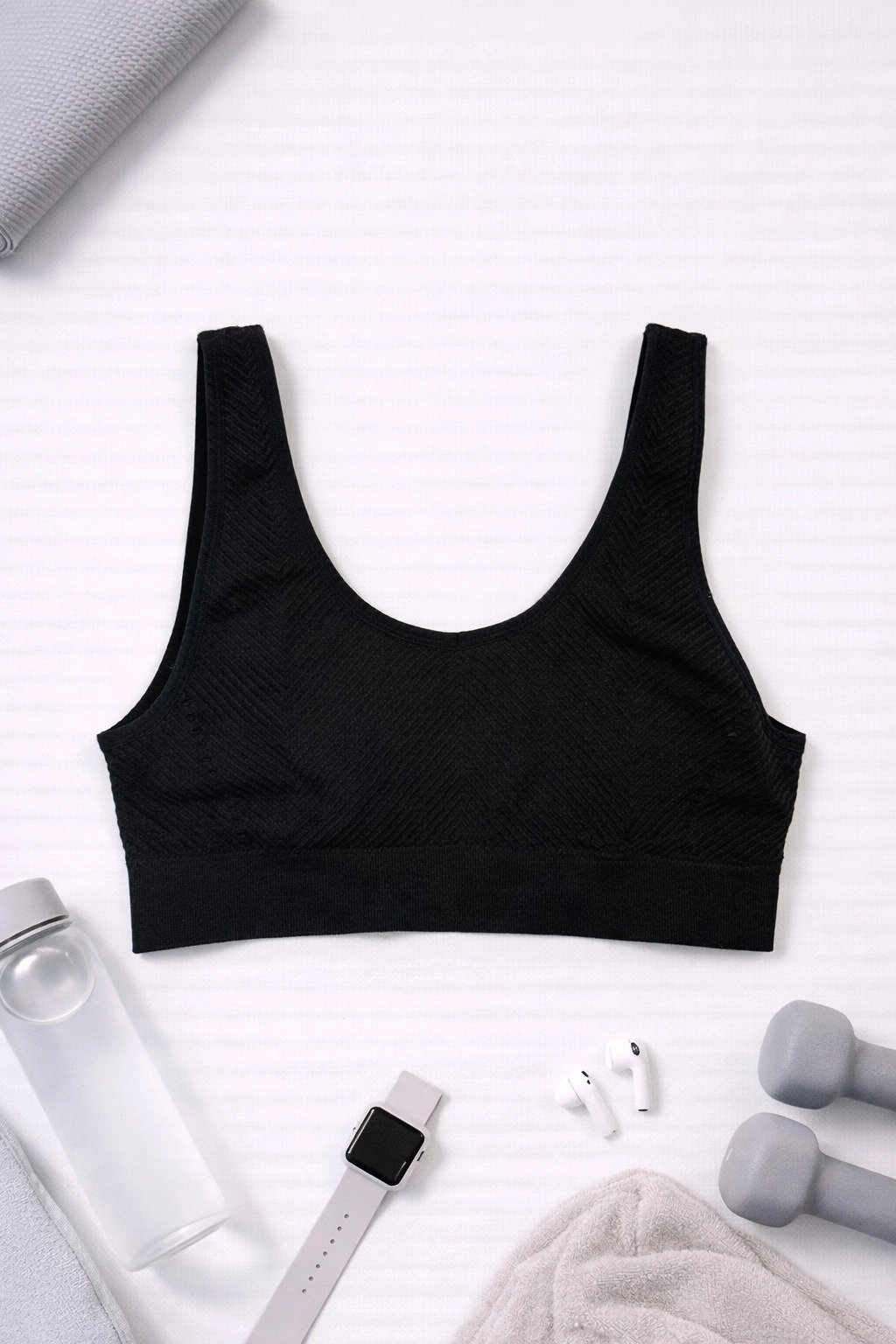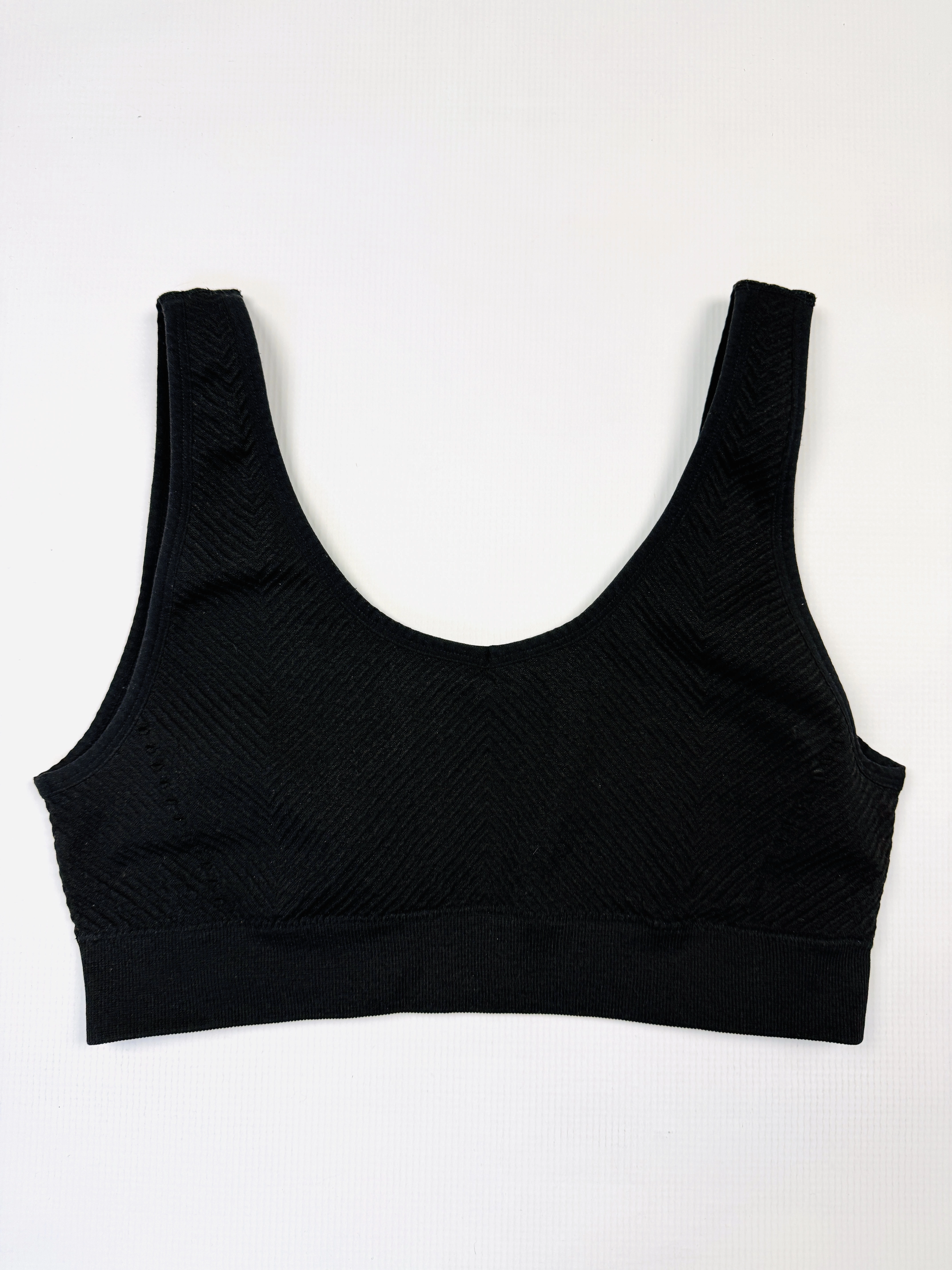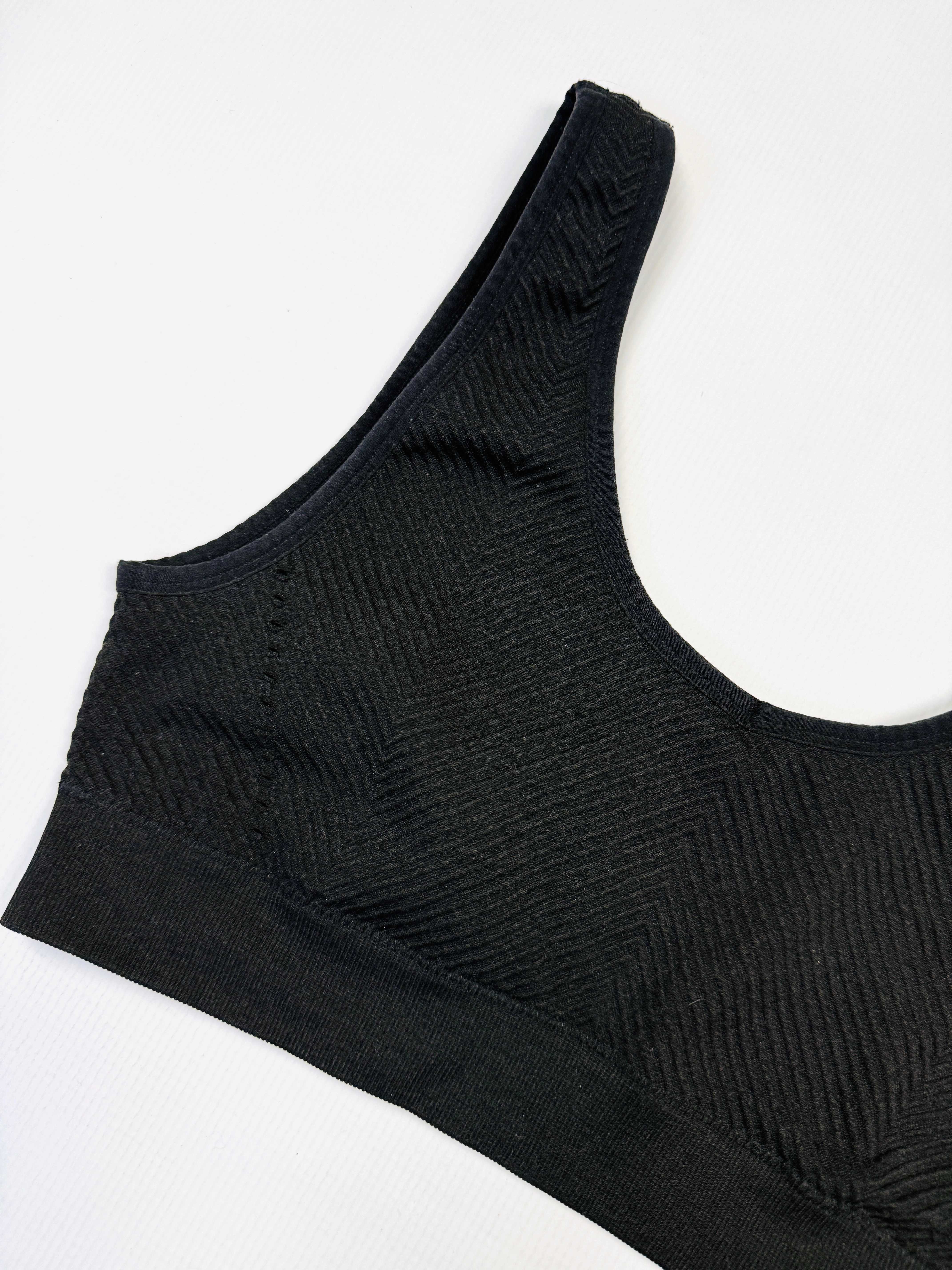 Biustonosz sportowy miękki M 38 czarny prążki