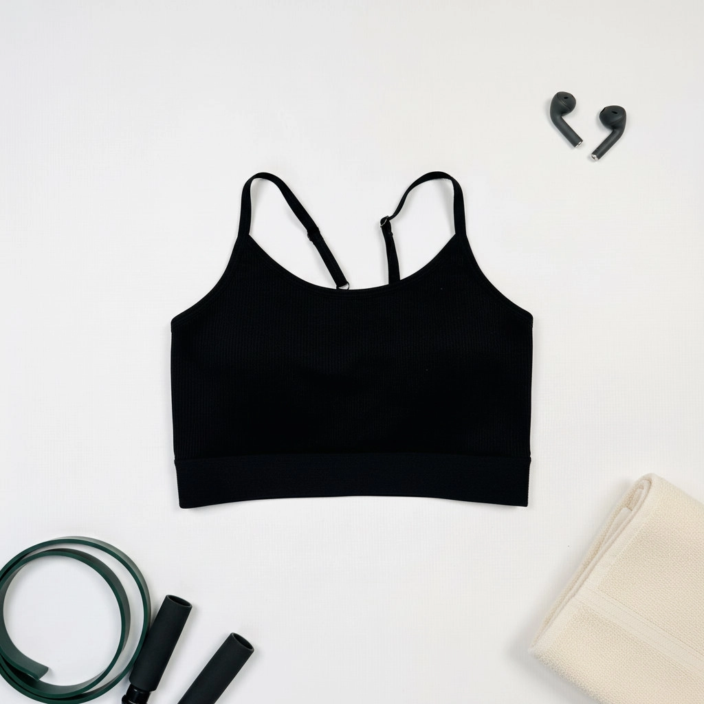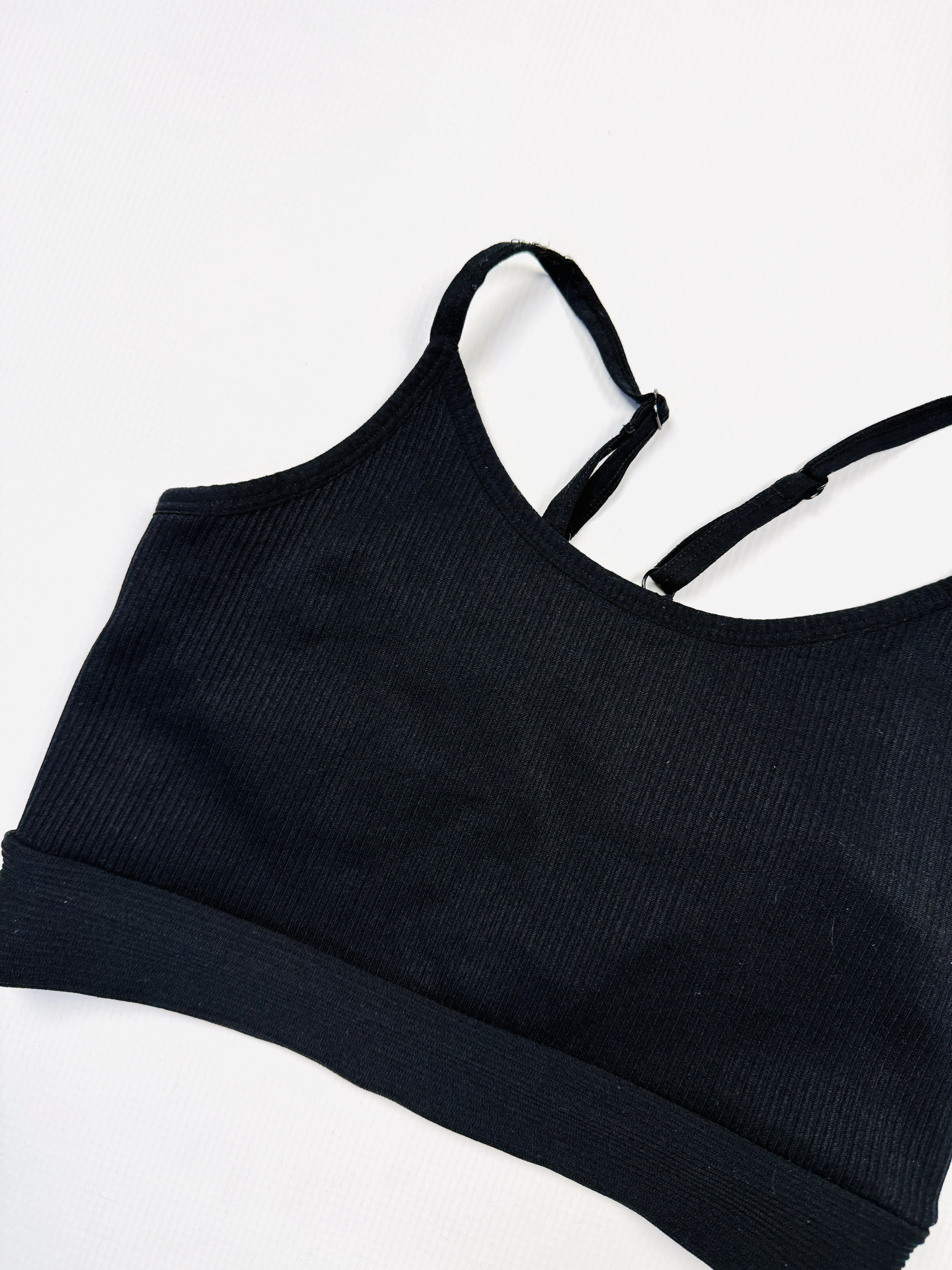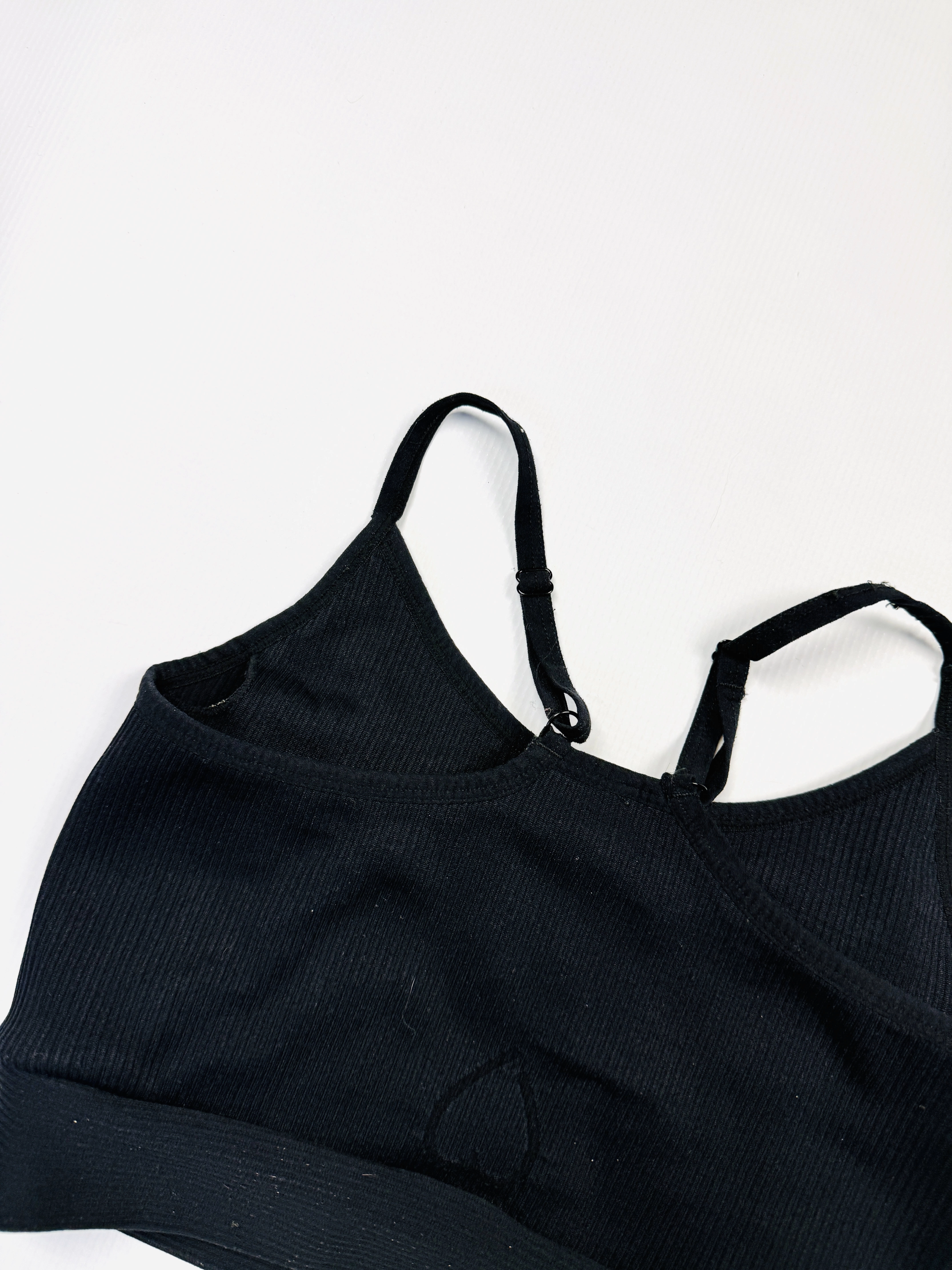 Biustonosz sportowy wypełnienie prążki S 36 czarny