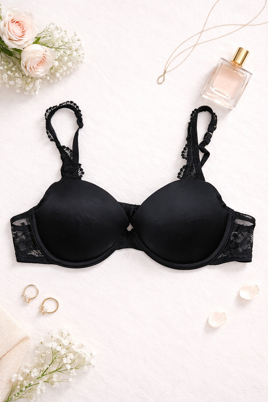 Biustonosz ma fiszbiny. W miseczkach ma wypełnienie.