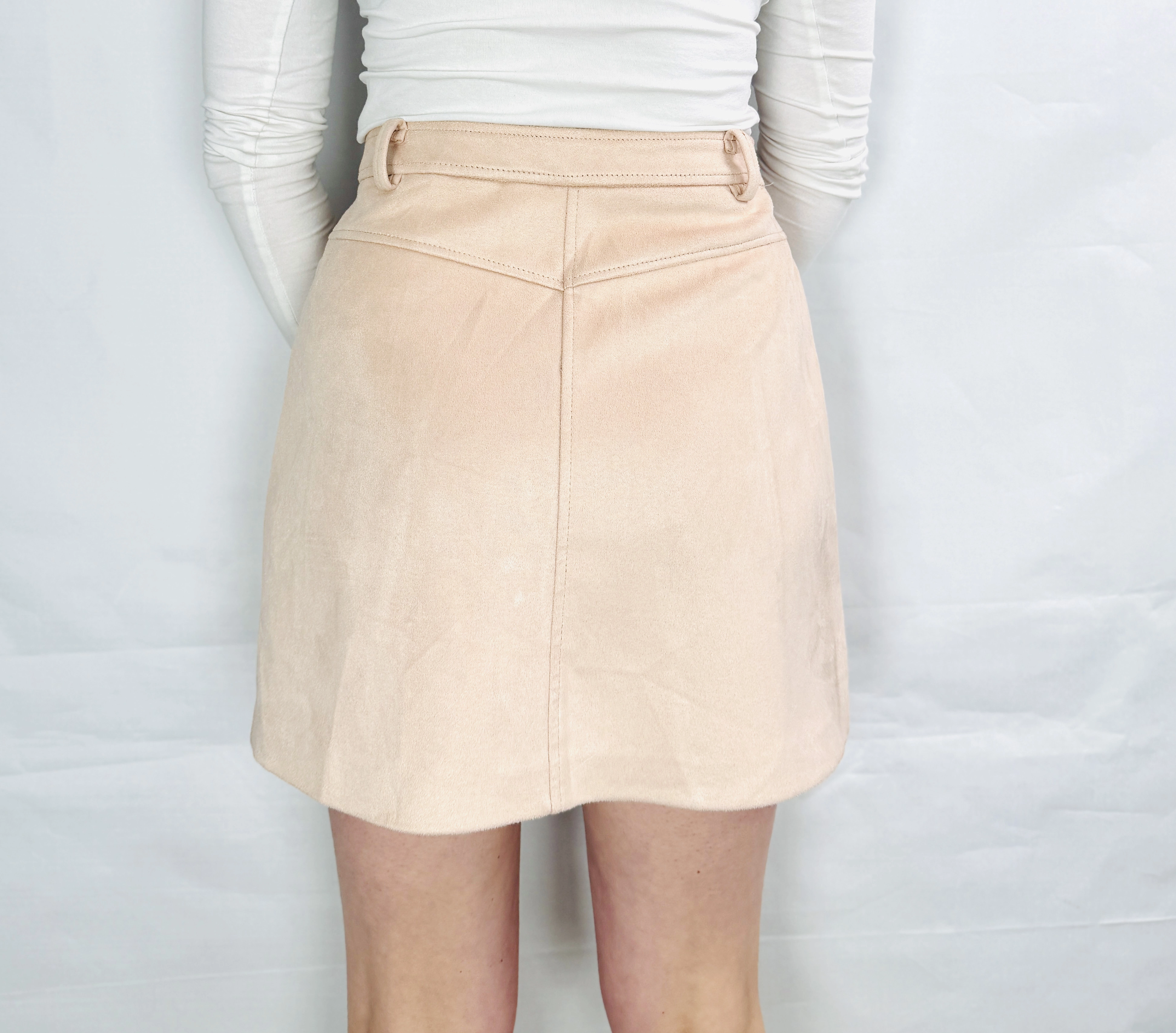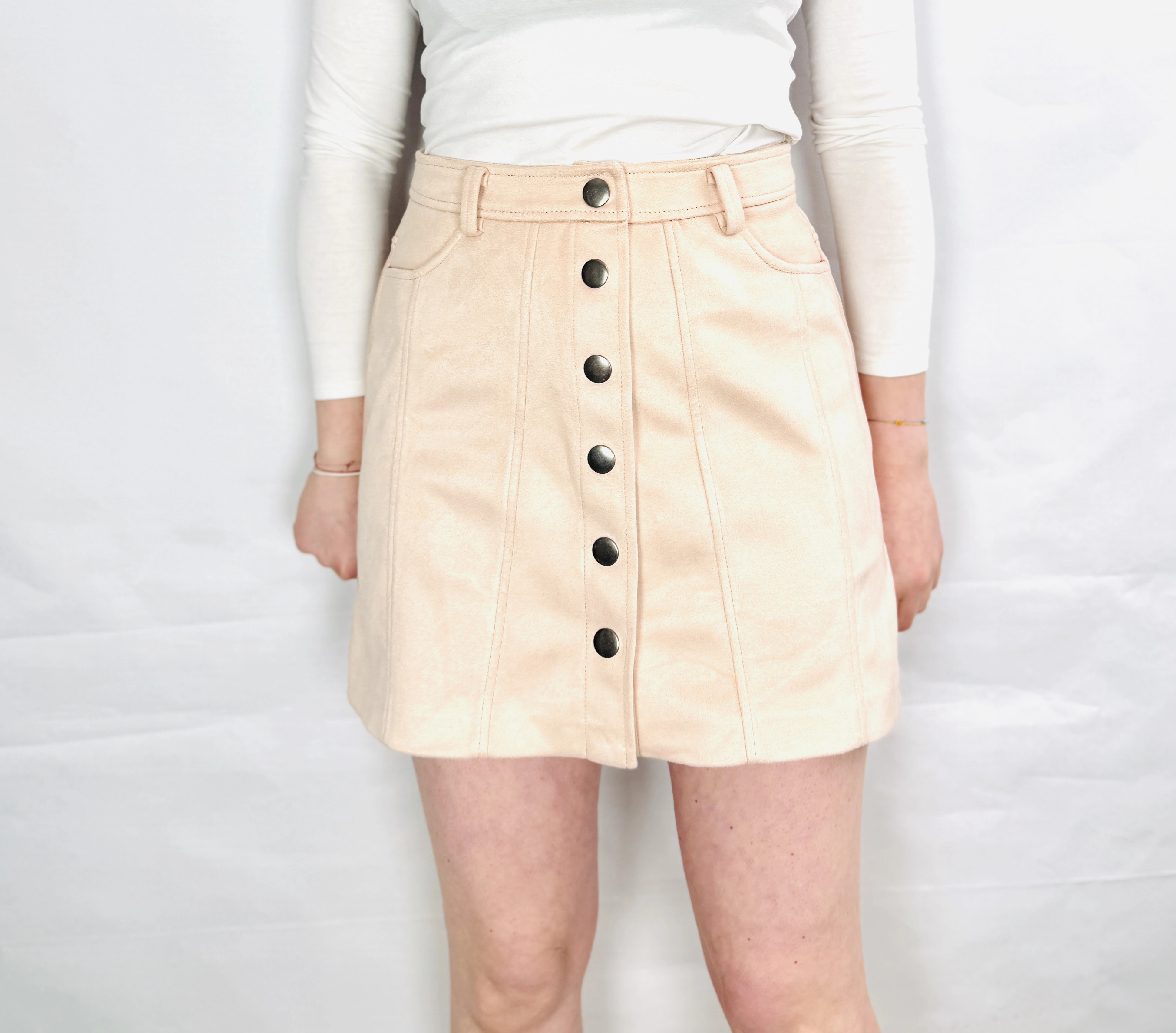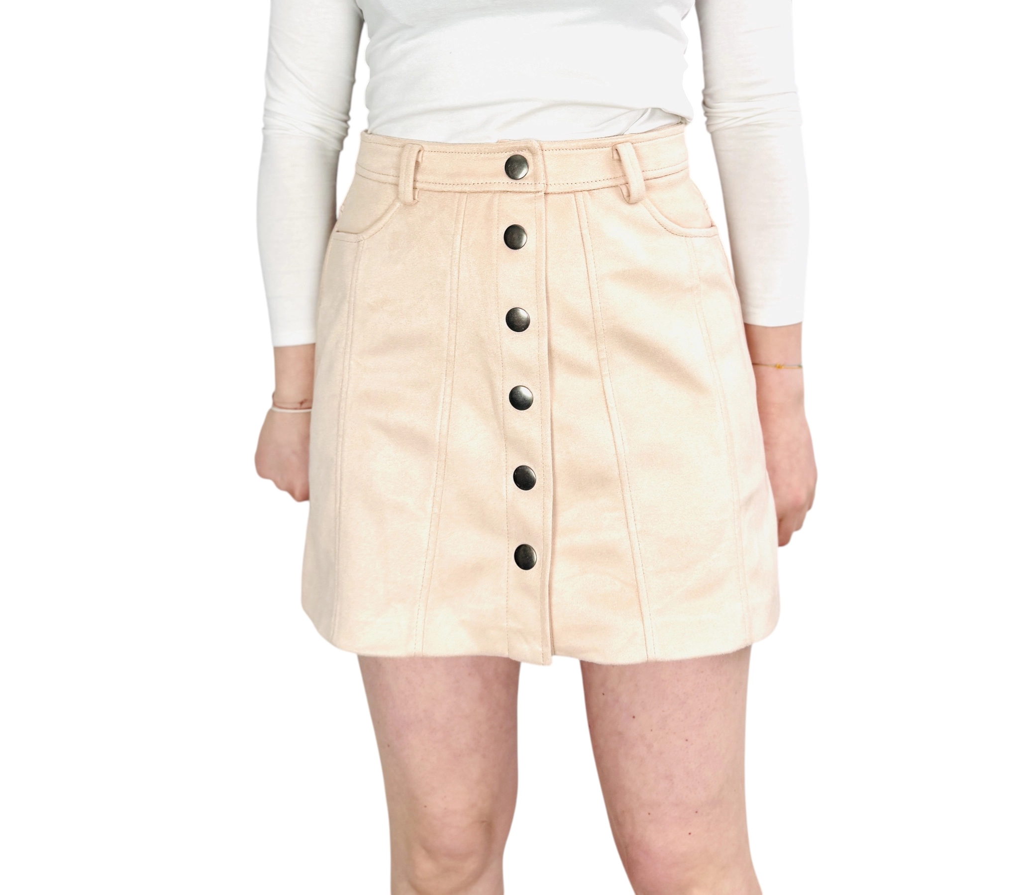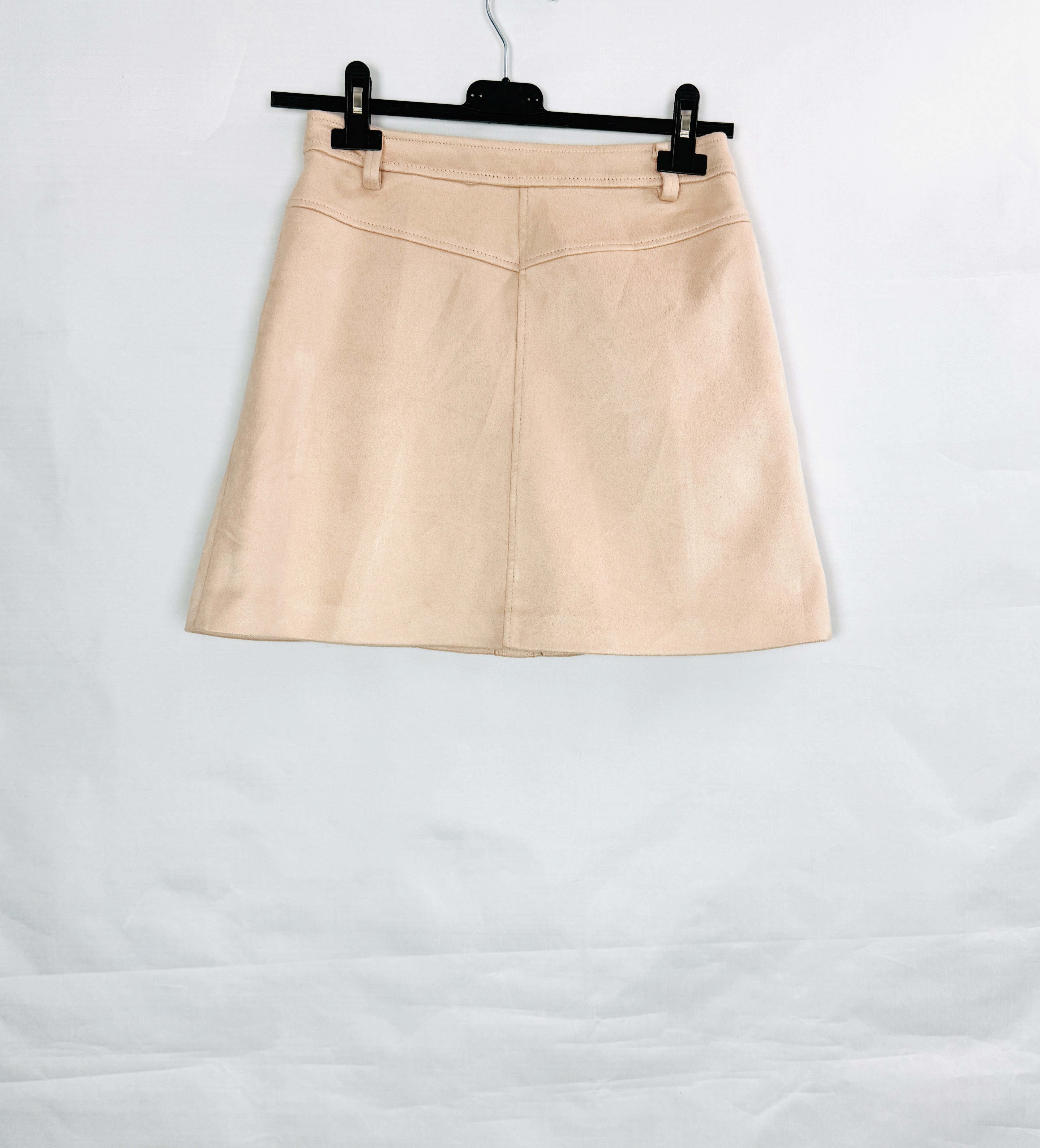 Bladoróżowa zamszowa spódnica z guzikami XS 34
