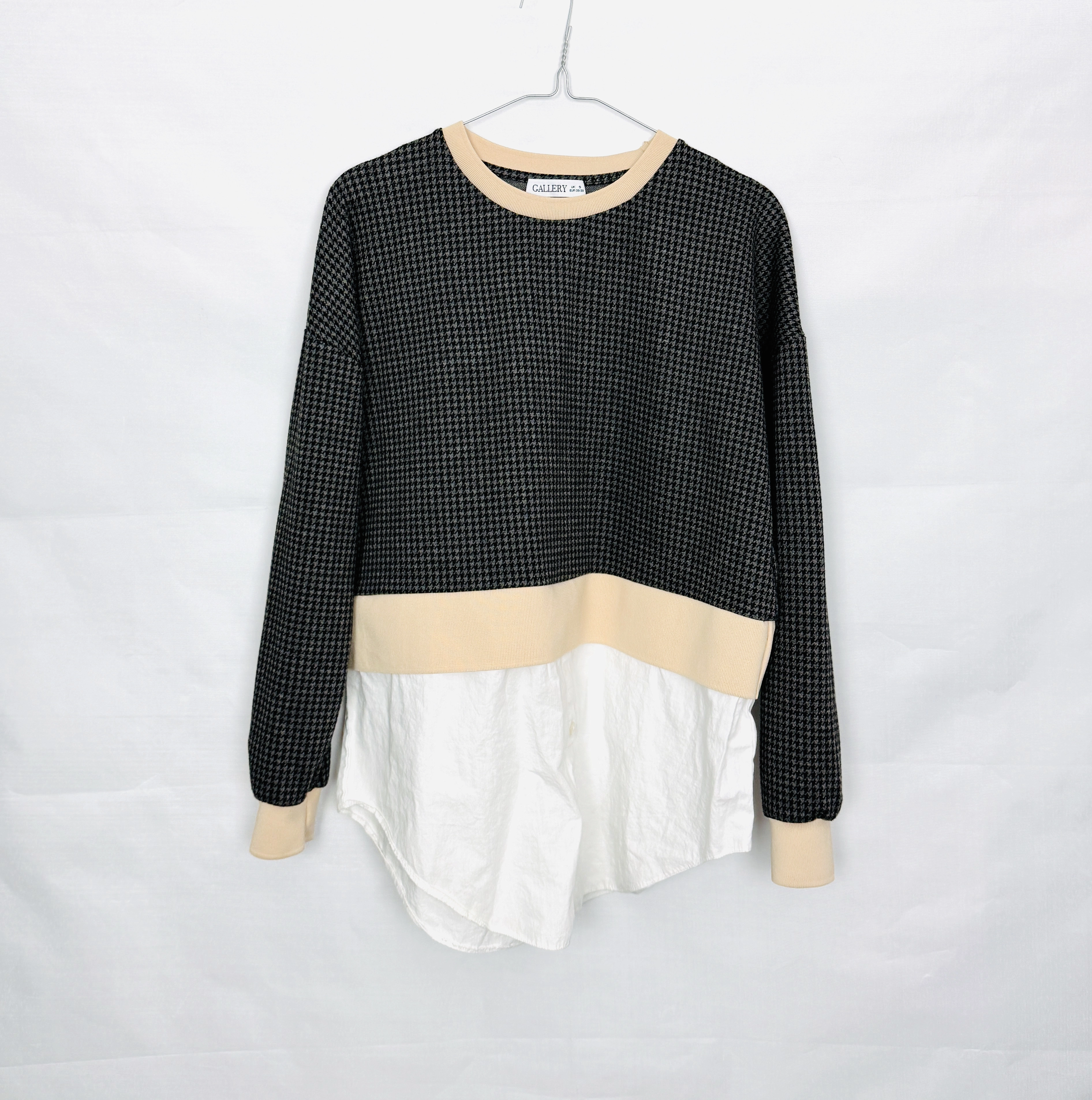 Bluza z koszulową wstawką pepitka S/M 36/38