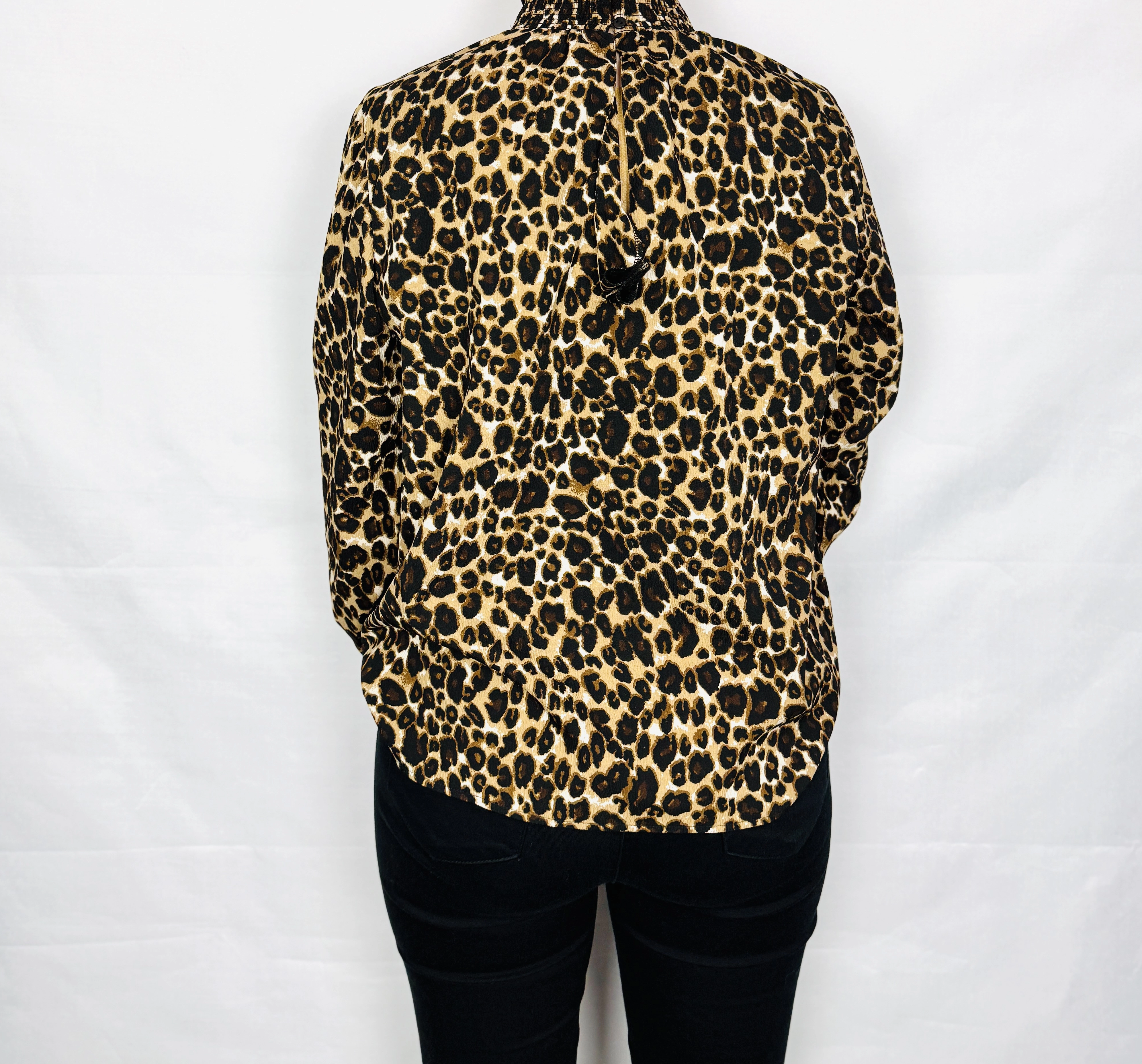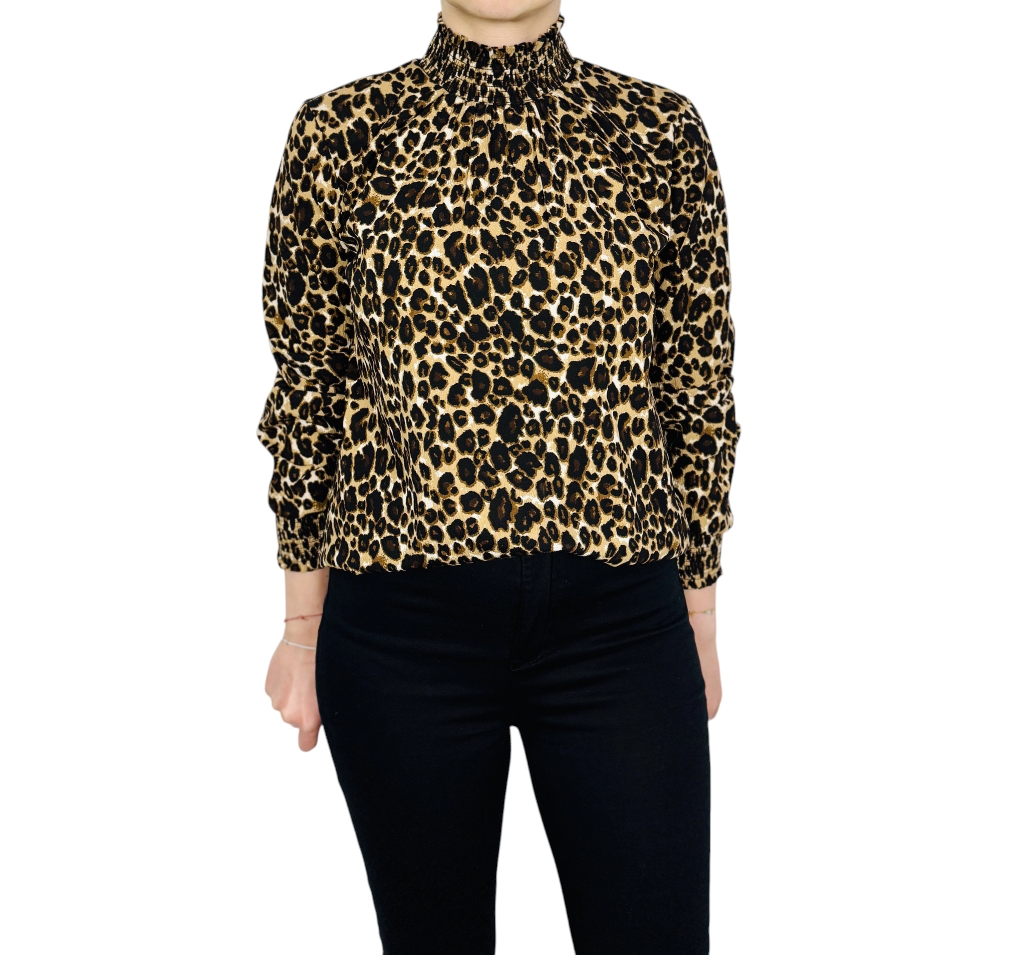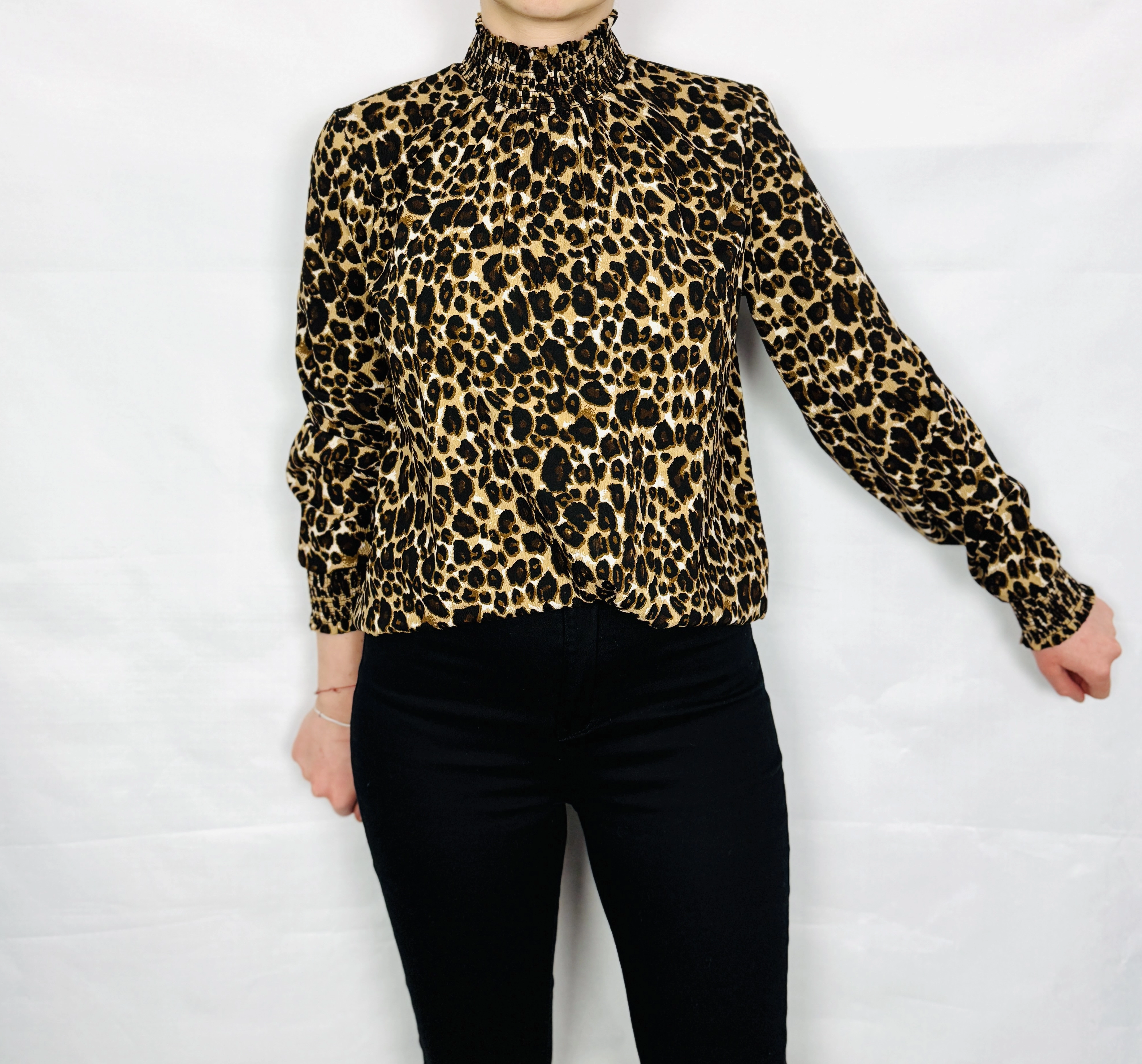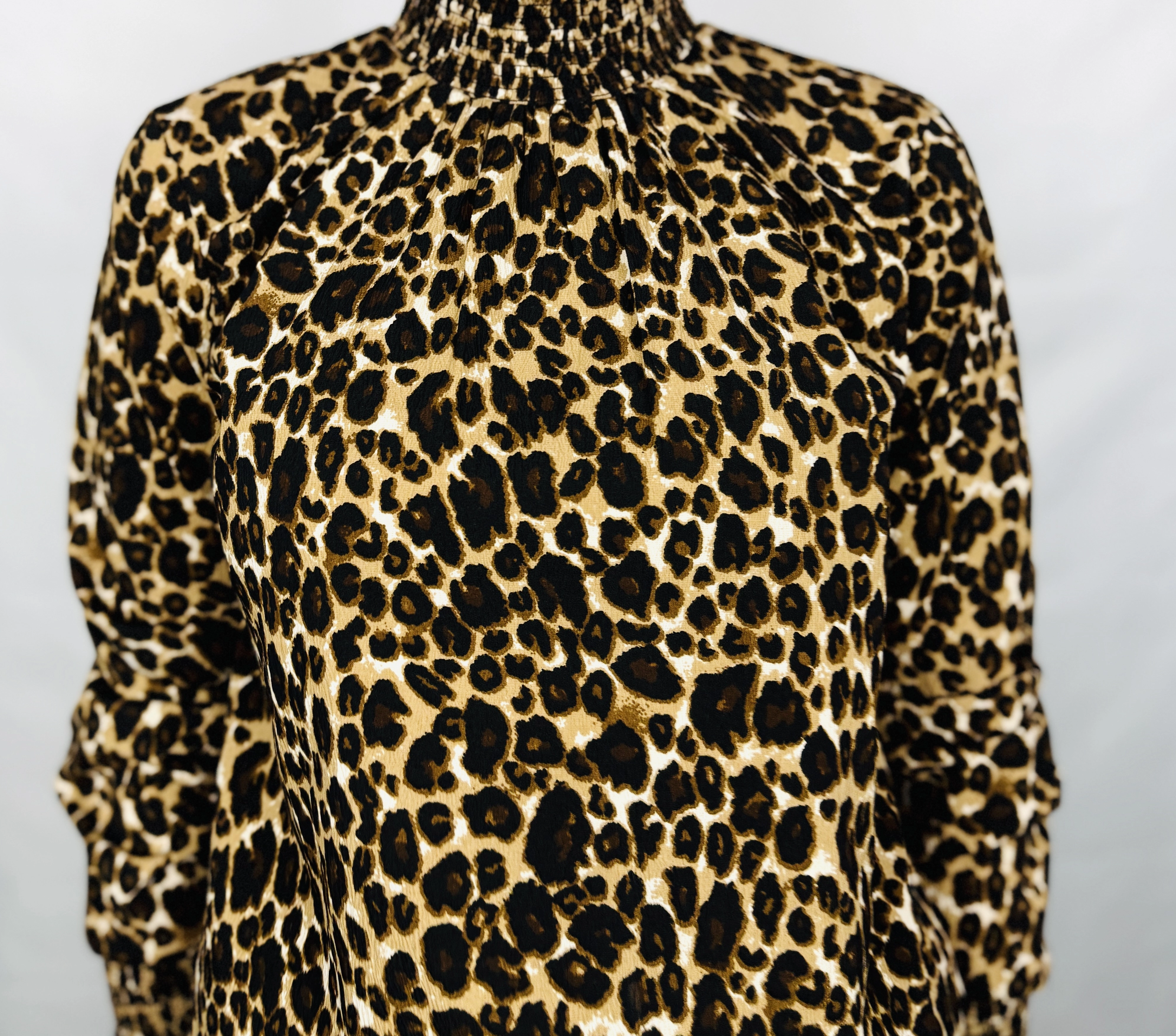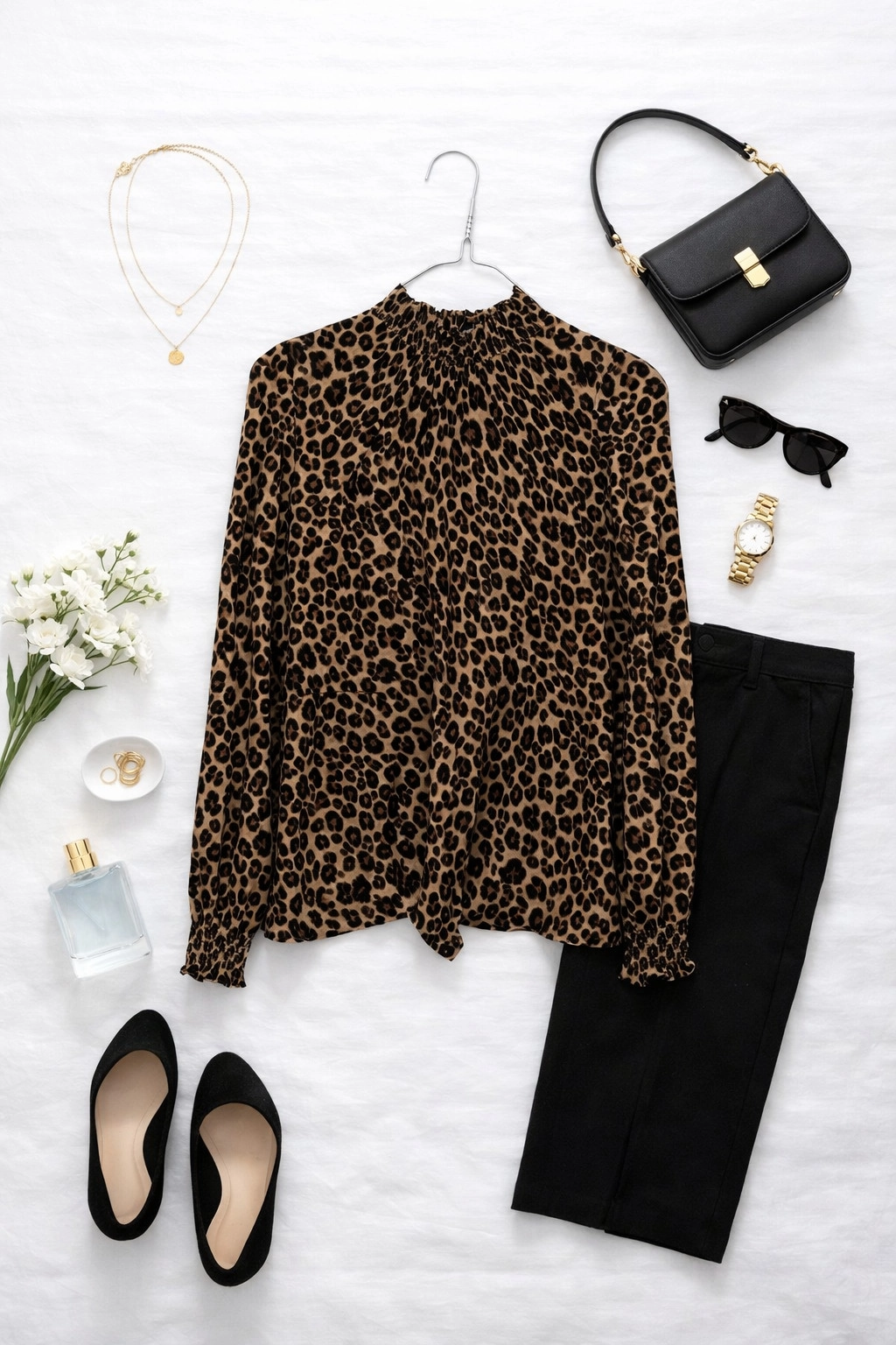 Ta bluzka to kwintesencja kobiecej pewności siebie, ubrana w jeden z najbardziej nastrojowych i ponadczasowych motywów w historii mody. Wyrazisty wzór w cętki, utrzymany w ciepłej tonacji brązów, beżu i głębokiej czerni, od razu przyciąga uwagę i nadaje całości luksusowego charakteru. To fason, który z jednej strony nawiązuje do klasycznej elegancji, a z drugiej emanuje drapieżną, nowoczesną energią. Idealna dla kobiet, które szukają ubrań z charakterem, potrafiących w mgnieniu oka odmienić nawet najprostszy zestaw i dodać mu odrobiny zmysłowości.