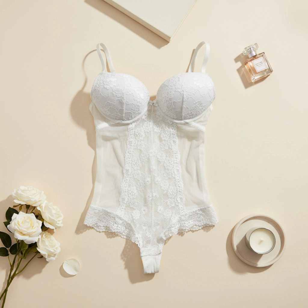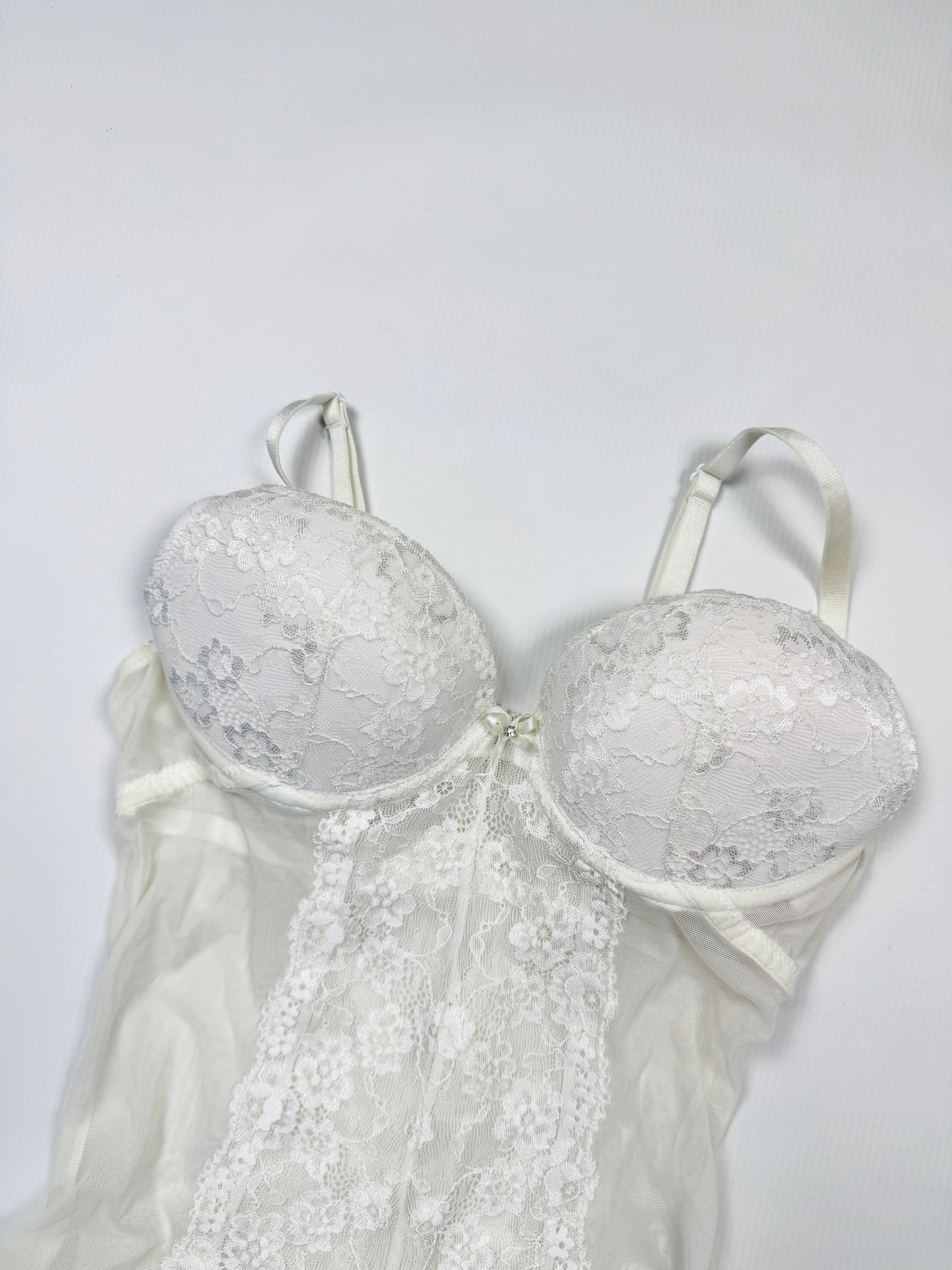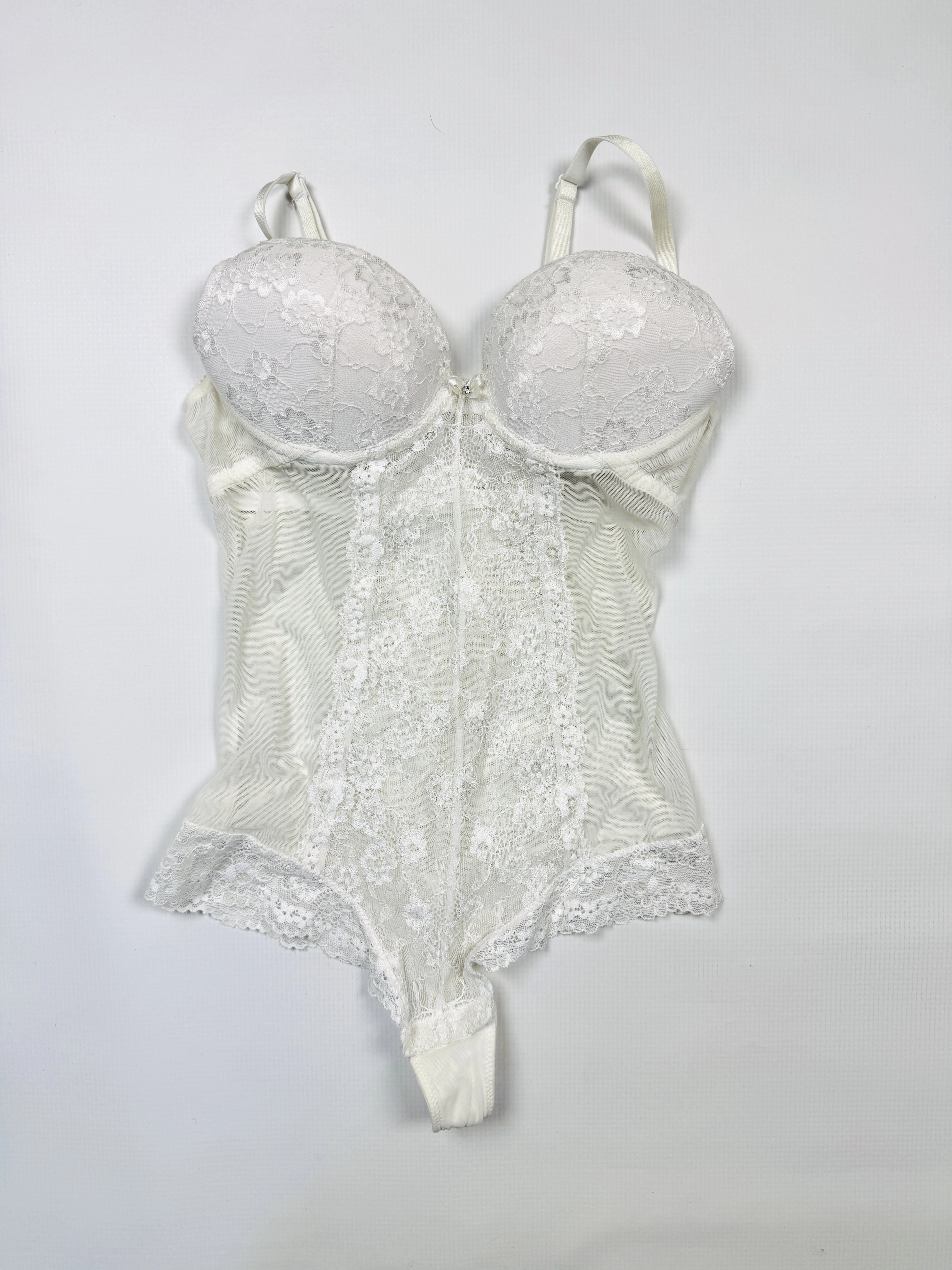 Body z wbudowanym biustonoszem koronka S 36 białe