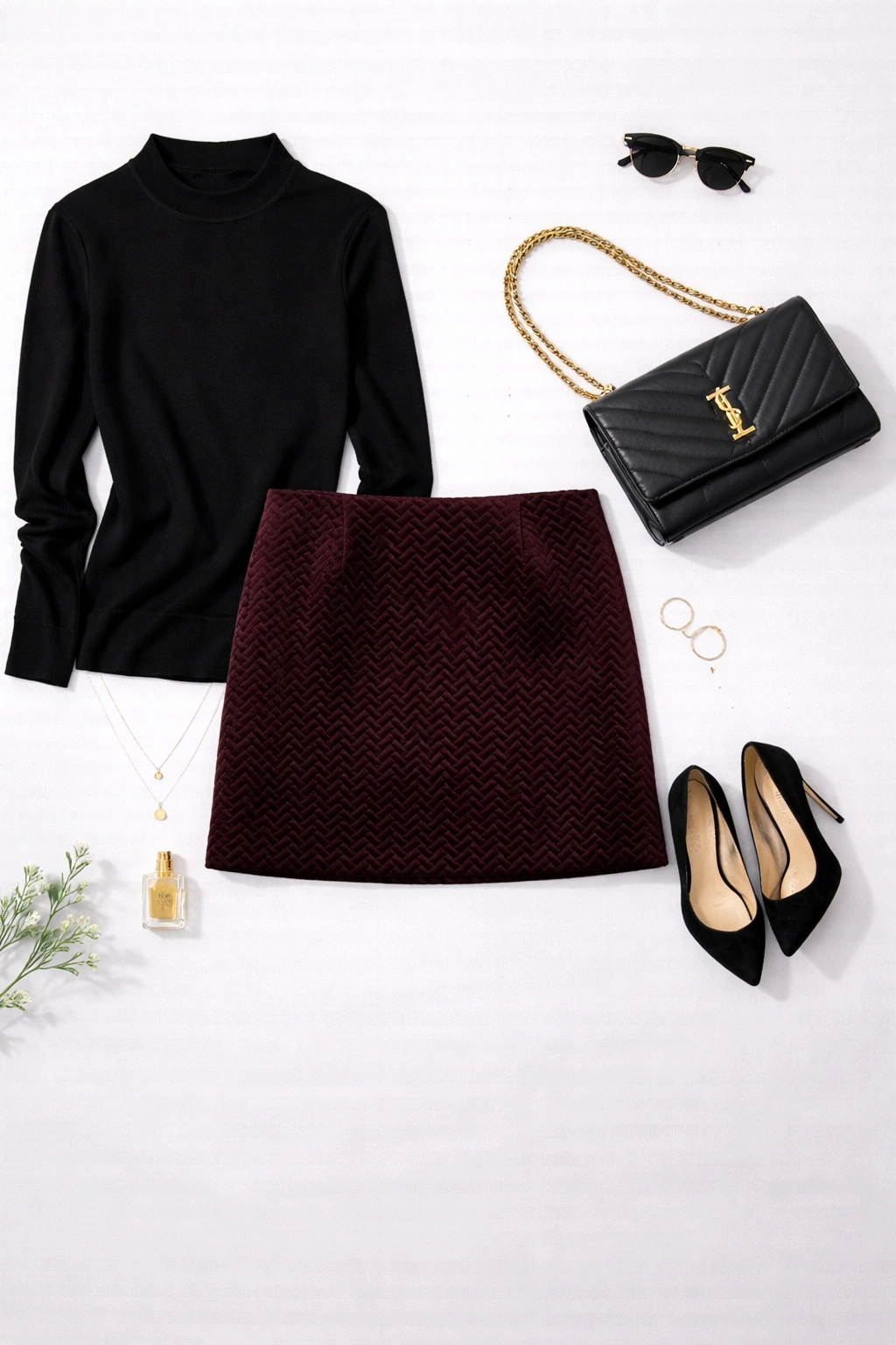 Bordowa spódnica pluszowa daje wiele możliwości stylizacji. Na co dzień można zestawić ją z prostym topem lub miękkim swetrem i wygodnym obuwiem, tworząc elegancki, ale swobodny look. W wersji bardziej formalnej świetnie komponuje się z koszulą i marynarką. Na wieczór doskonale wygląda w połączeniu z dopasowaną bluzką i butami na obcasie. Bordo pięknie łączy się z czernią, beżem, kremem oraz złotymi dodatkami, tworząc spójne i wyrafinowane stylizacje.
