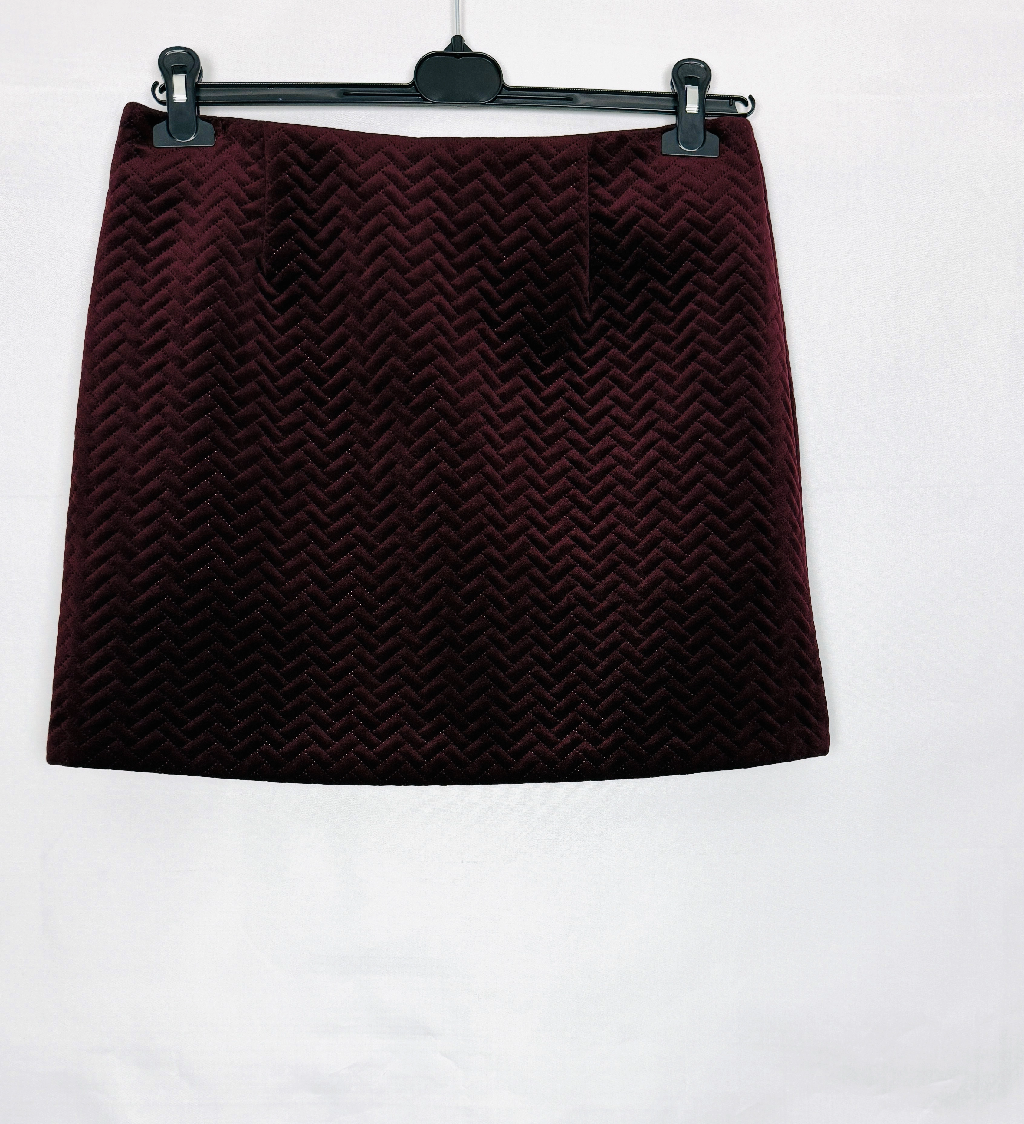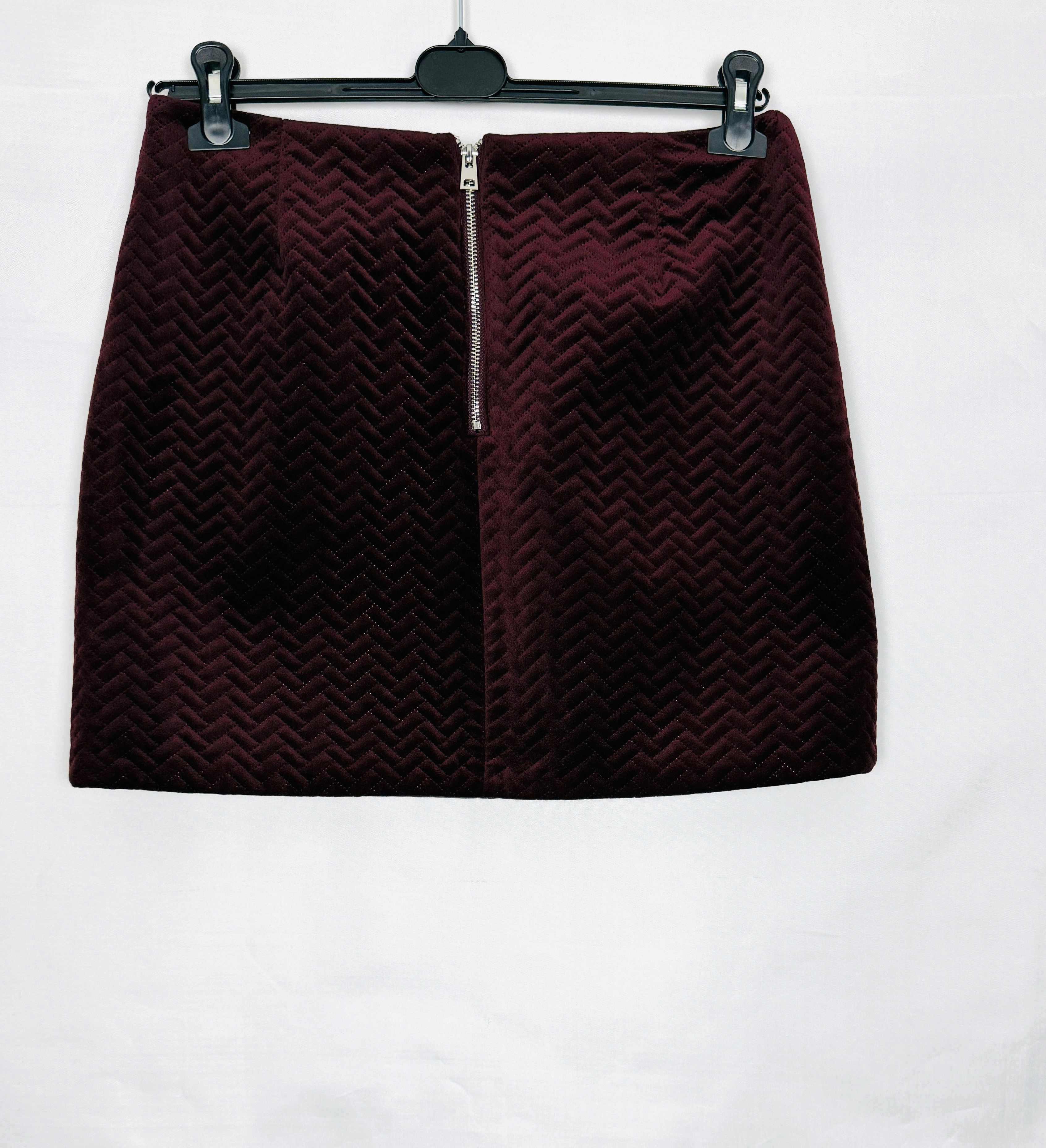 Ta bordowa spódnica mini zachwyca głębokim, szlachetnym kolorem i wyjątkową strukturą materiału, która przyciąga spojrzenia. Odcień bordo wprowadza nutę elegancji i zmysłowości, a jednocześnie pozostaje niezwykle stylowy i ponadczasowy. Całość ma w sobie coś luksusowego, dzięki czemu spódnica doskonale sprawdzi się zarówno w codziennych stylizacjach, jak i podczas bardziej wyjątkowych okazji.