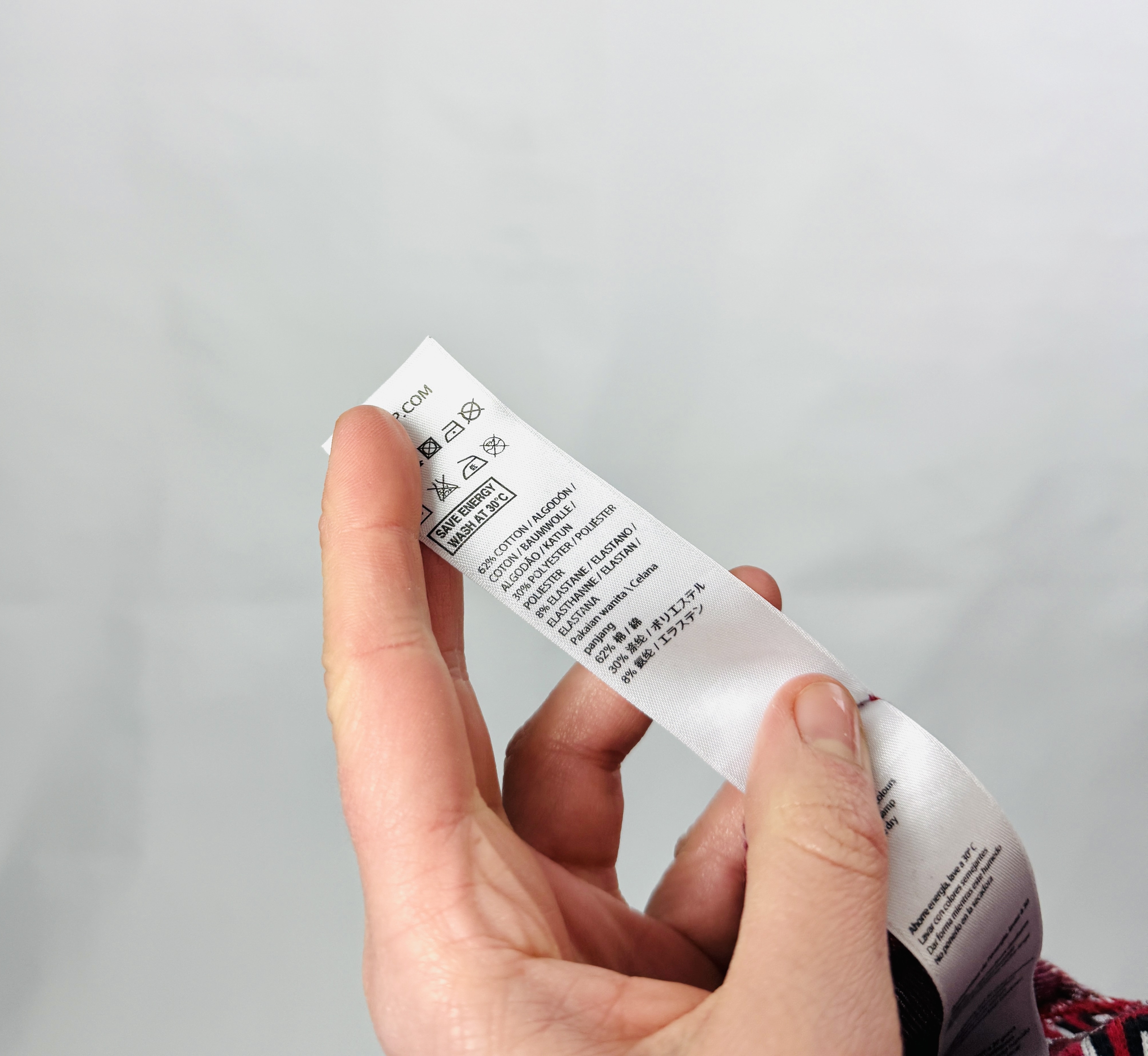 Materiał prezentuje się jako miękko układający się i elastyczny, o delikatnym połysku powierzchni, dzięki czemu tkanina subtelnie opływa sylwetkę i podkreśla geometryczny wzór bez zniekształceń. Struktura wygląda gładko i sprężyście, co sugeruje komfort noszenia oraz dobre dopasowanie do ciała. Dzięki temu spodnie łączą eleganckie wykończenie z wygodą — są wystarczająco plastyczne, by podążać za ruchami, a jednocześnie trzymają formę, co daje schludny, dopracowany efekt.