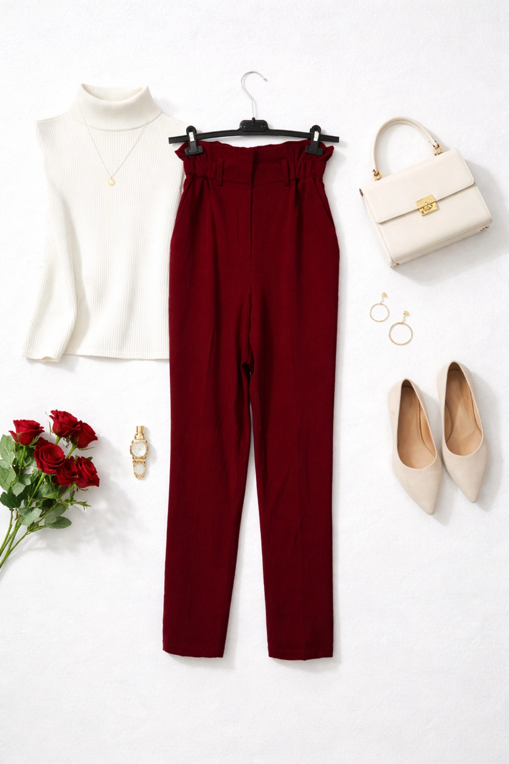 Te bordowe spodnie przyciągają uwagę głębokim, nasyconym kolorem, który dodaje stylizacjom elegancji i wyrazistości. To model, który łączy klasyczną formę z modowym akcentem, dzięki czemu świetnie sprawdzi się zarówno w codziennych zestawach, jak i bardziej dopracowanych, kobiecych stylizacjach. Odcień bordo wprowadza do garderoby ciepło i szlachetność, stanowiąc ciekawą alternatywę dla klasycznej czerni.