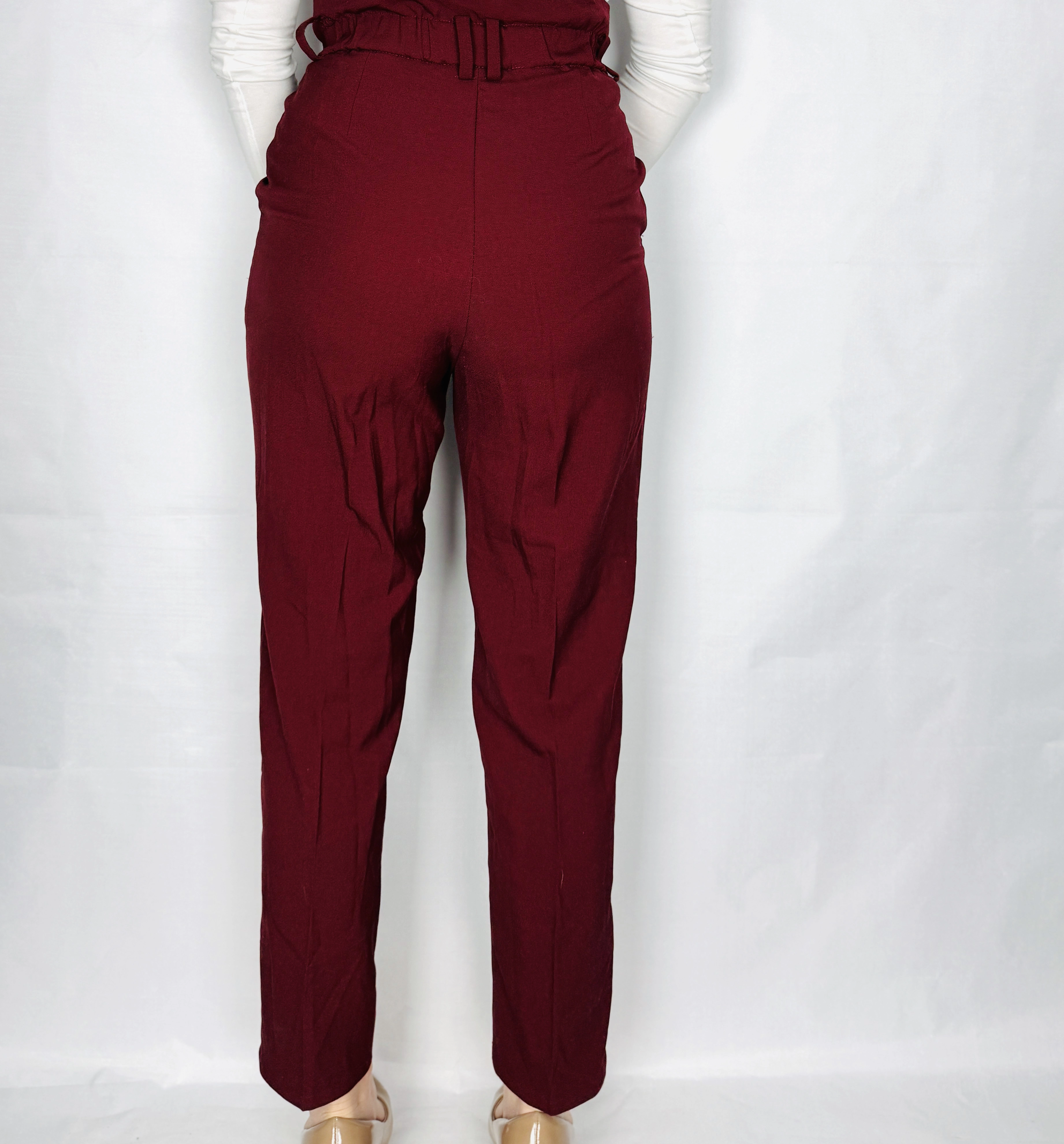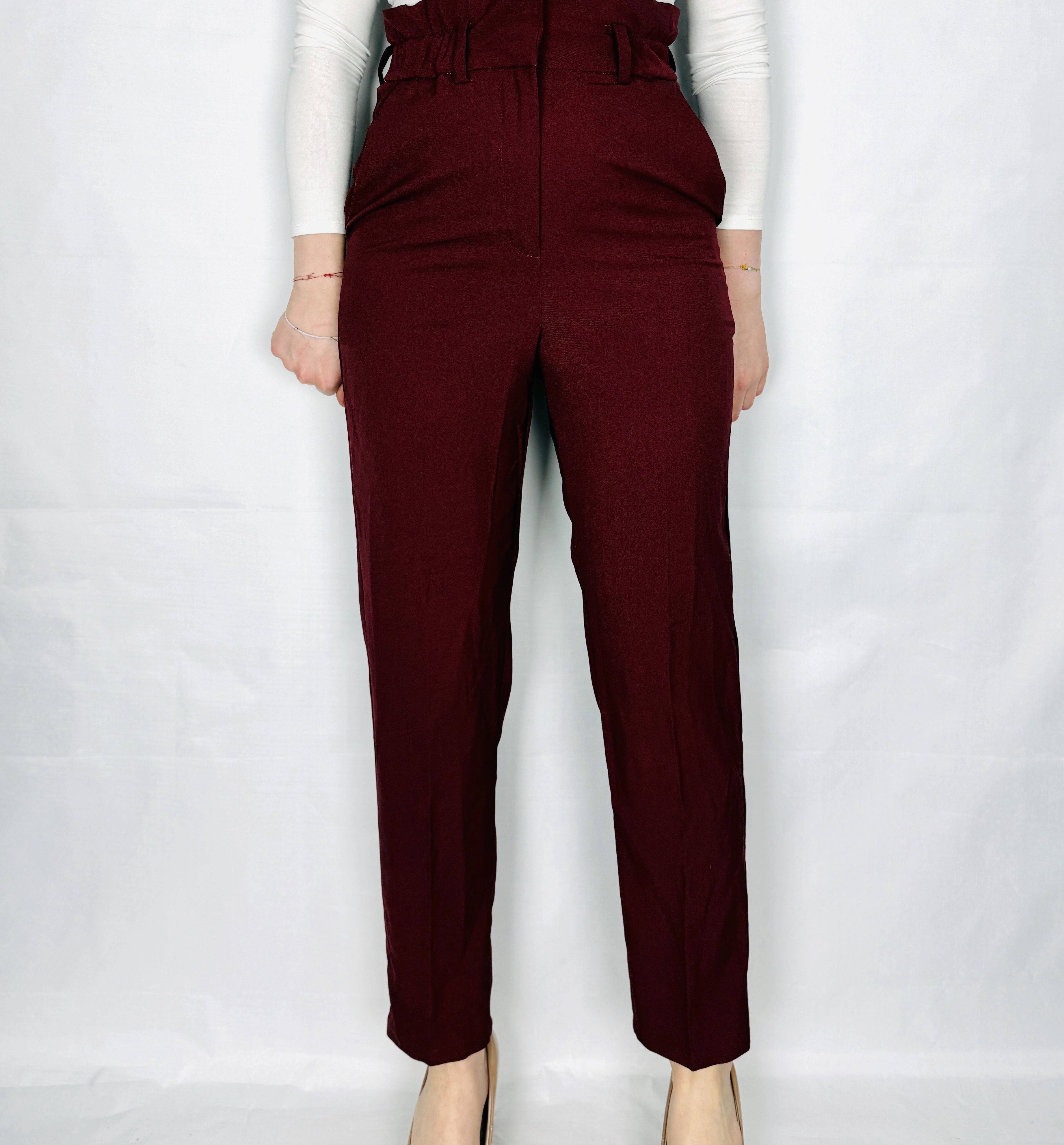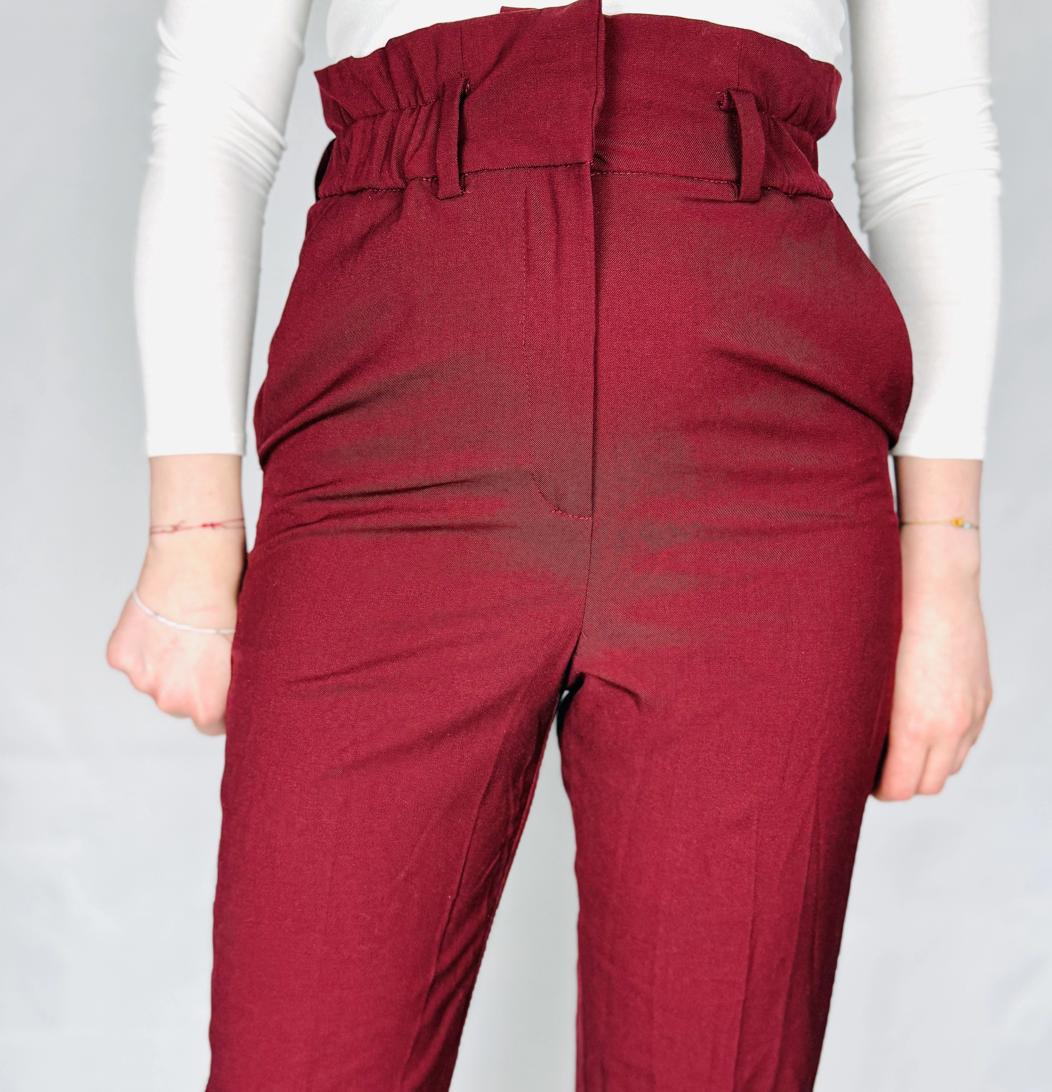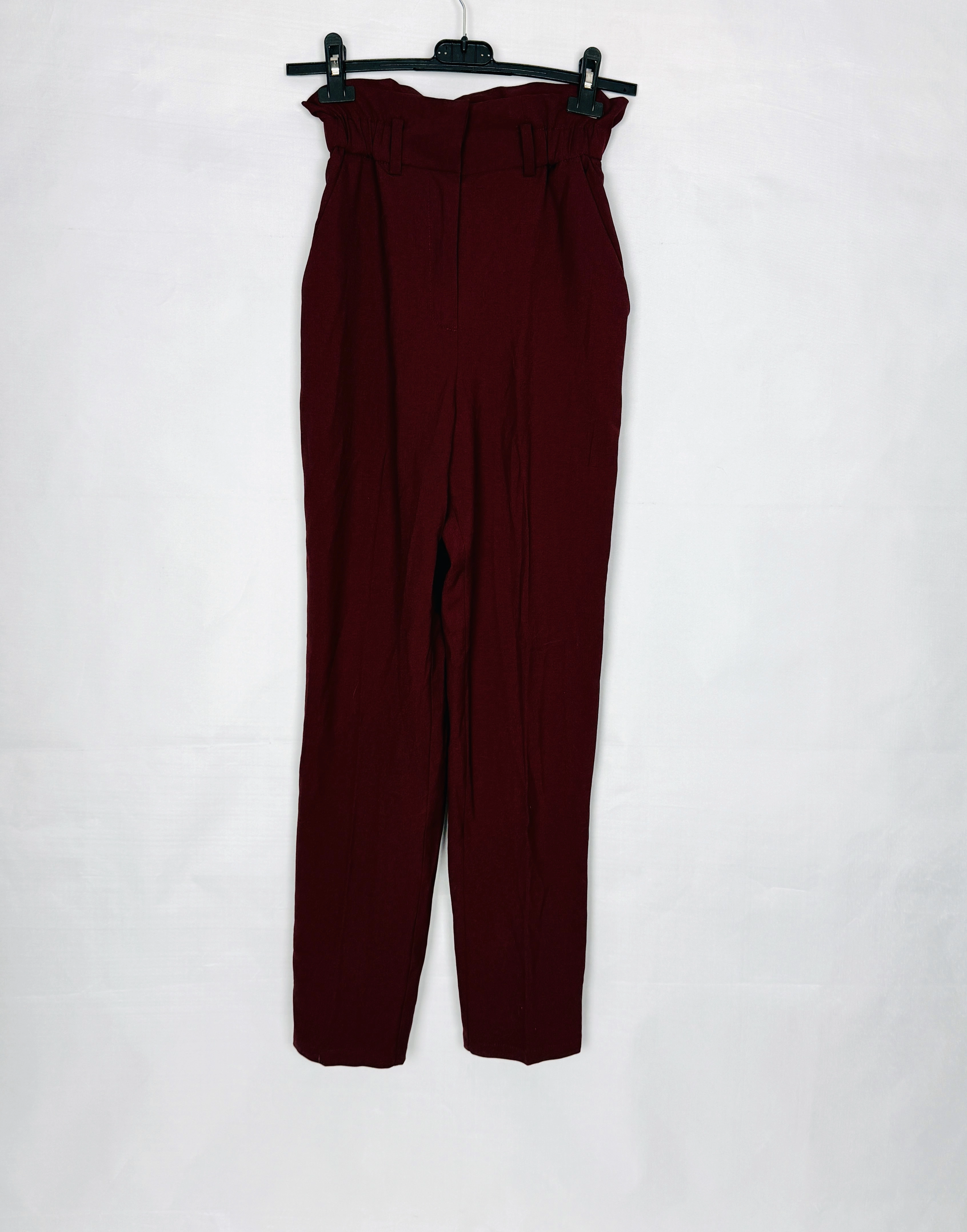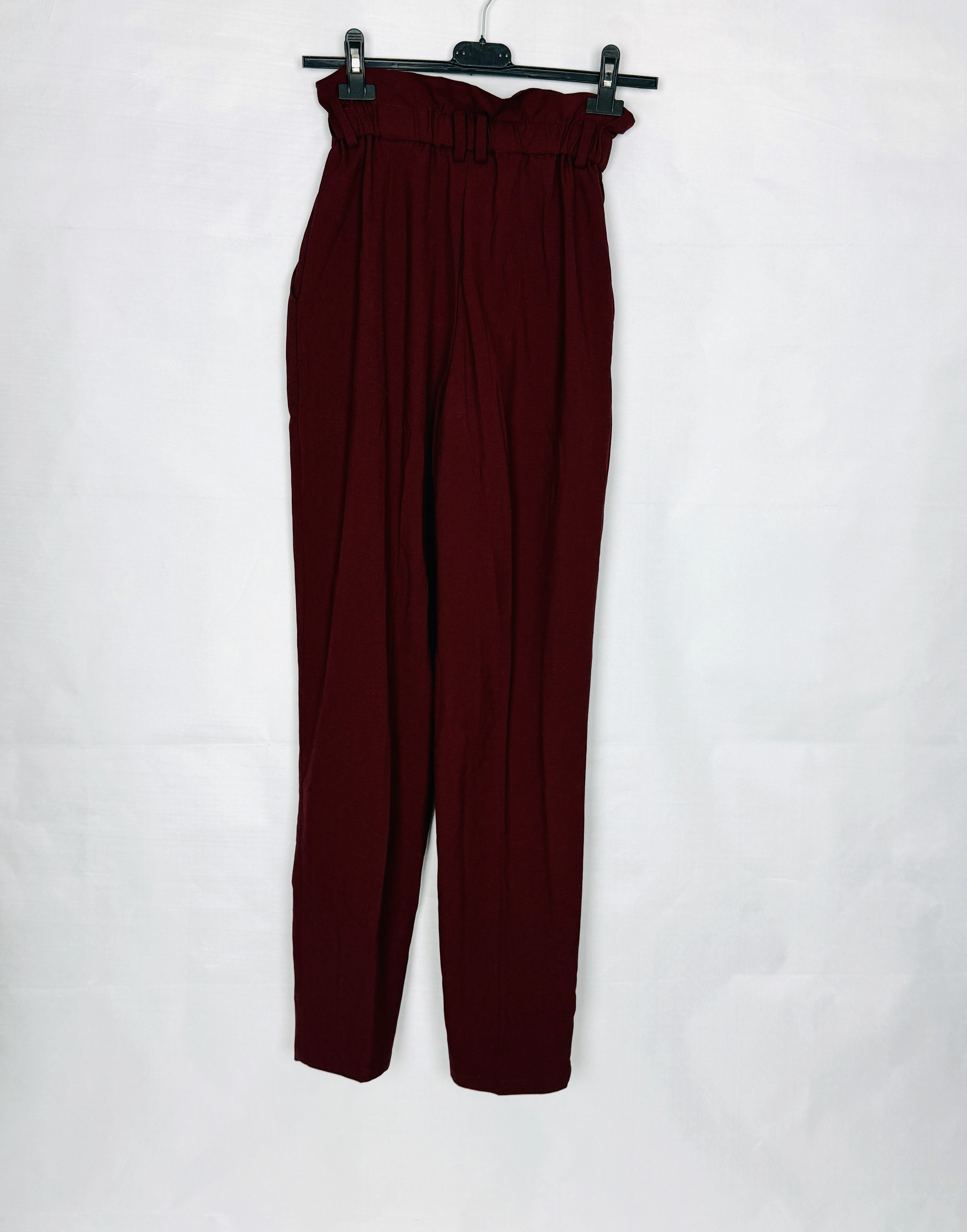 Bordowe spodnie z wysokim stanem XS 34