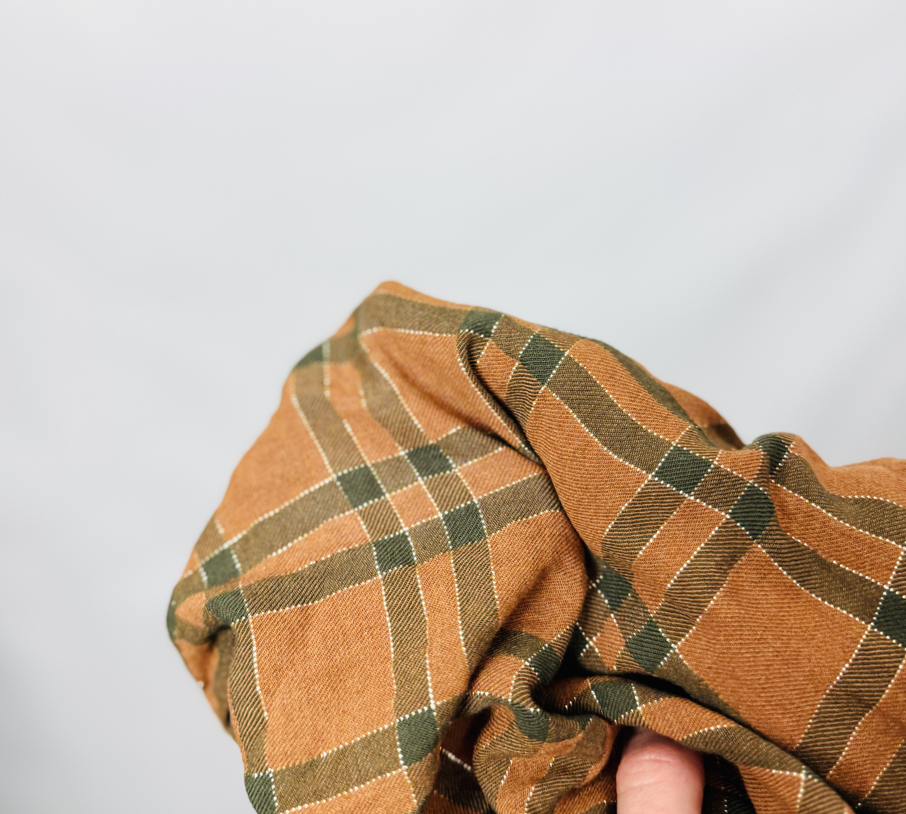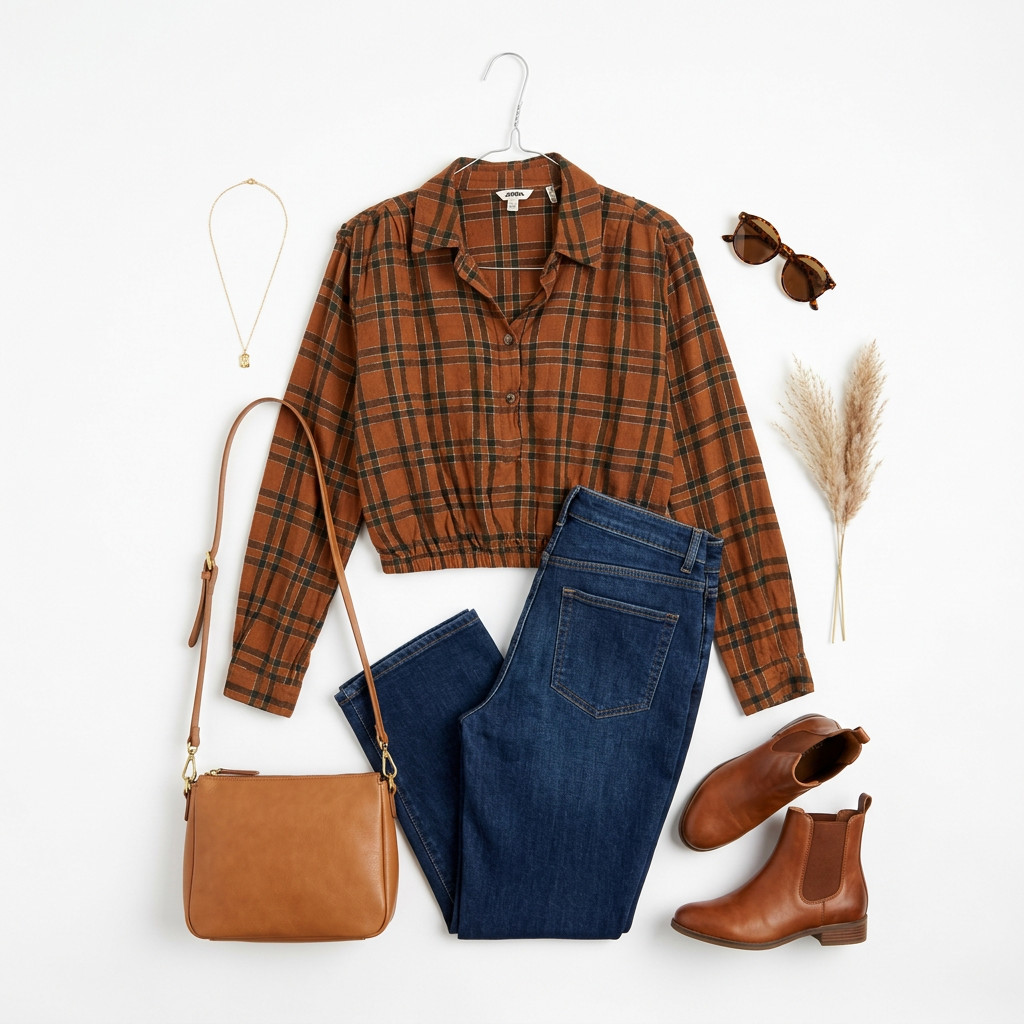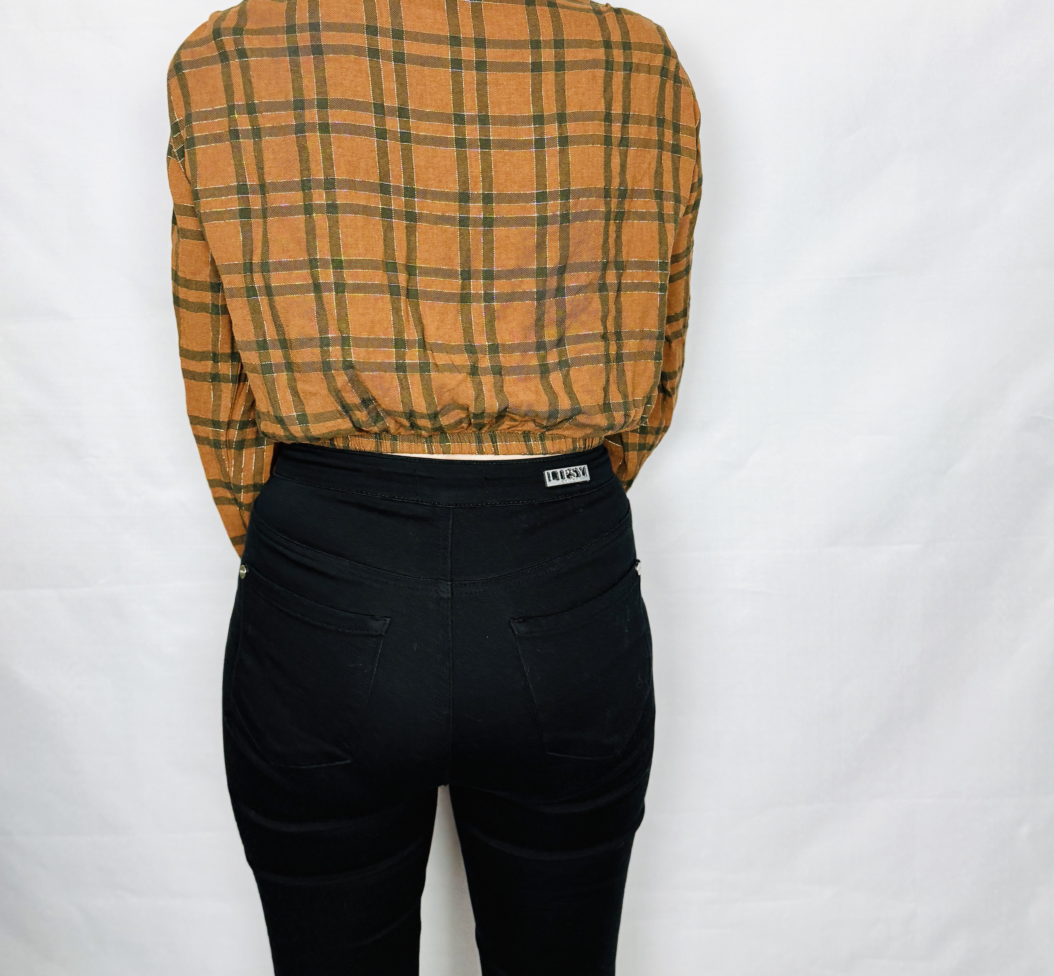 Ta brązowa bluzka w klasyczną kratę to połączenie przytulnej, jesiennej palety i kobiecej lekkości. Ciepły odcień brązu zestawiony z ciemniejszymi, zielonkawymi liniami tworzy uporządkowany, a zarazem naturalny wzór, który dodaje stylizacji wyrazu bez przesady. Całość ma w sobie spokojny, nieco rustykalny urok — to ubiór o spokojnym charakterze, który potrafi wprowadzić do garderoby elegancki, ale codzienny akcent.