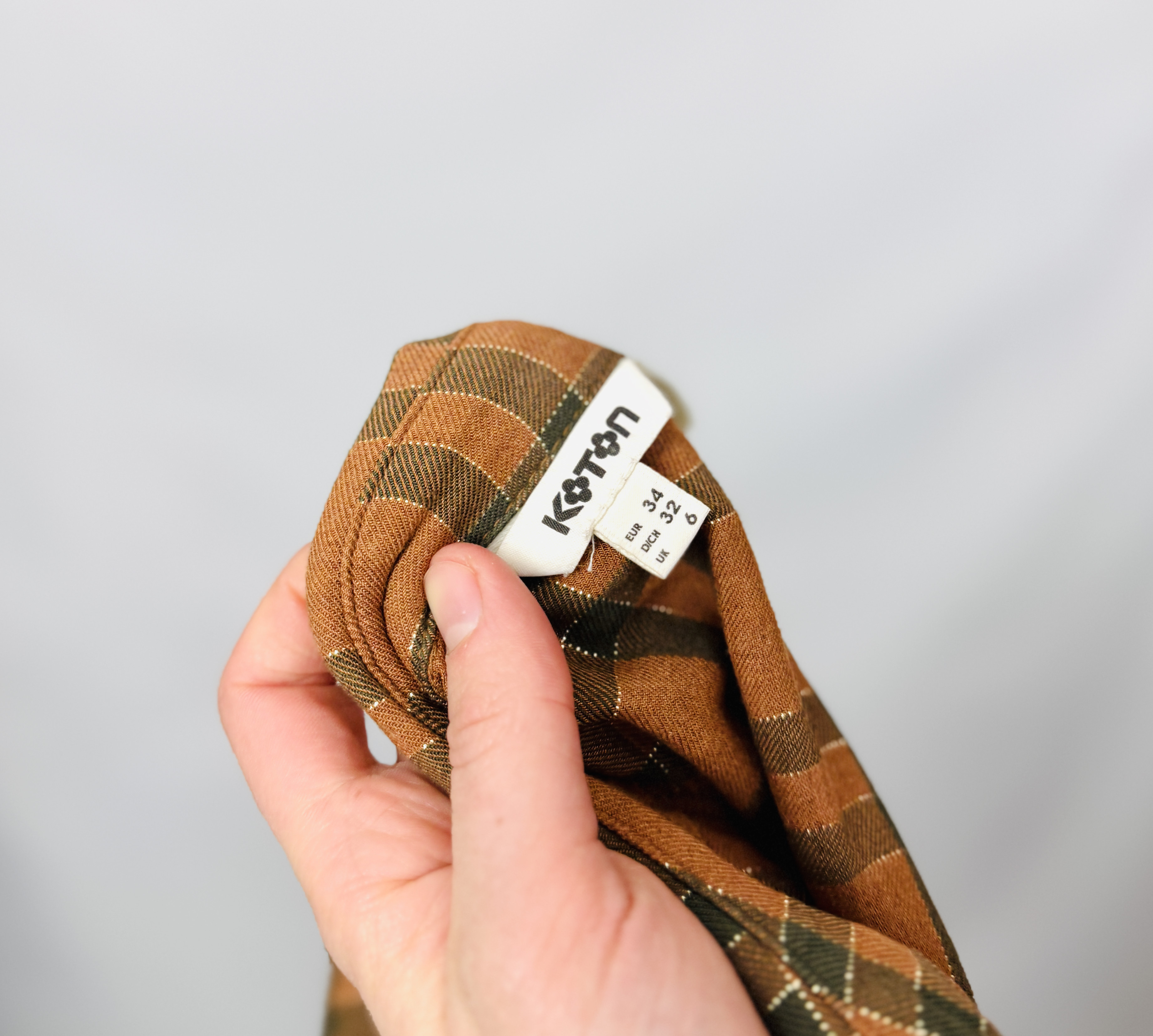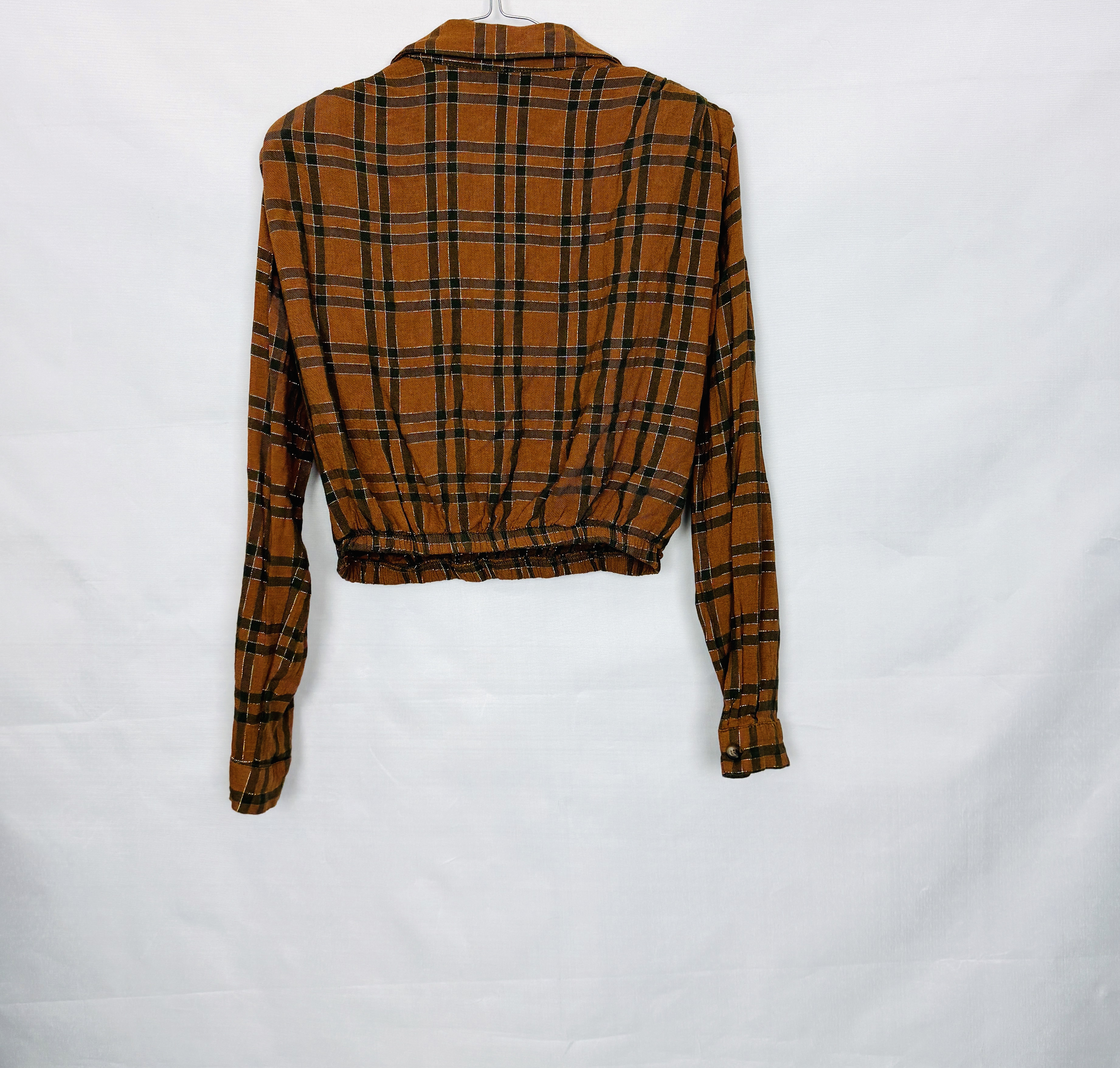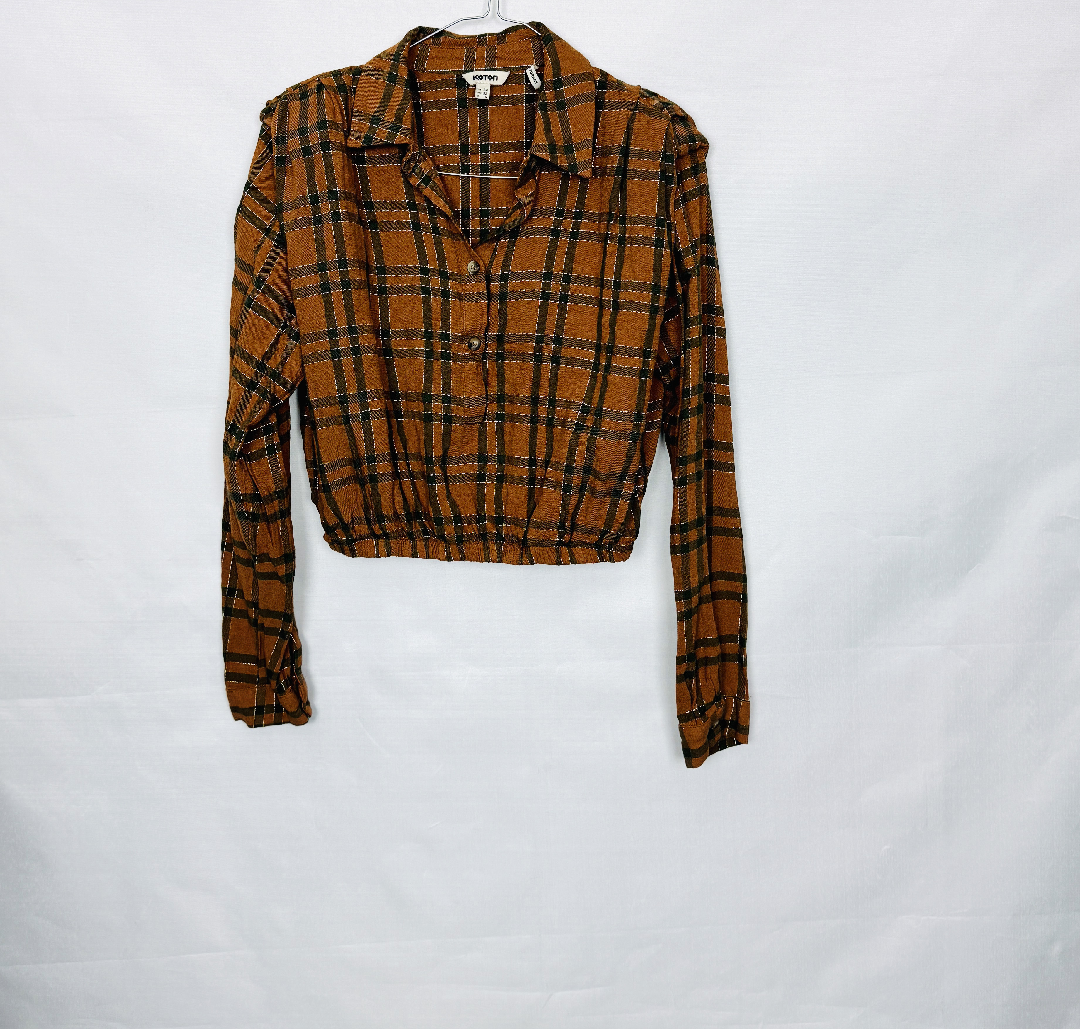 Brązowa bluzka w kratę z gumką XS 34