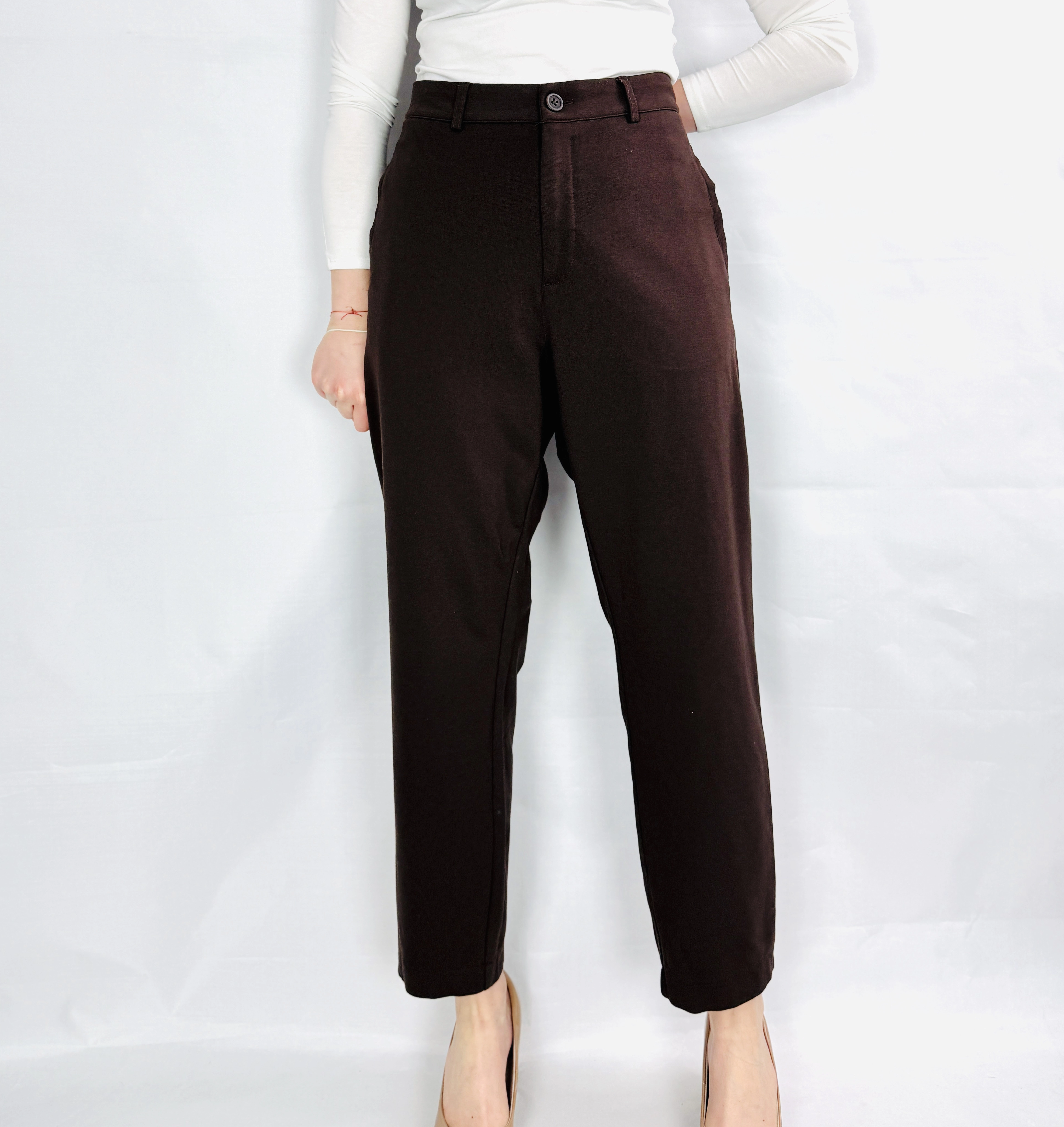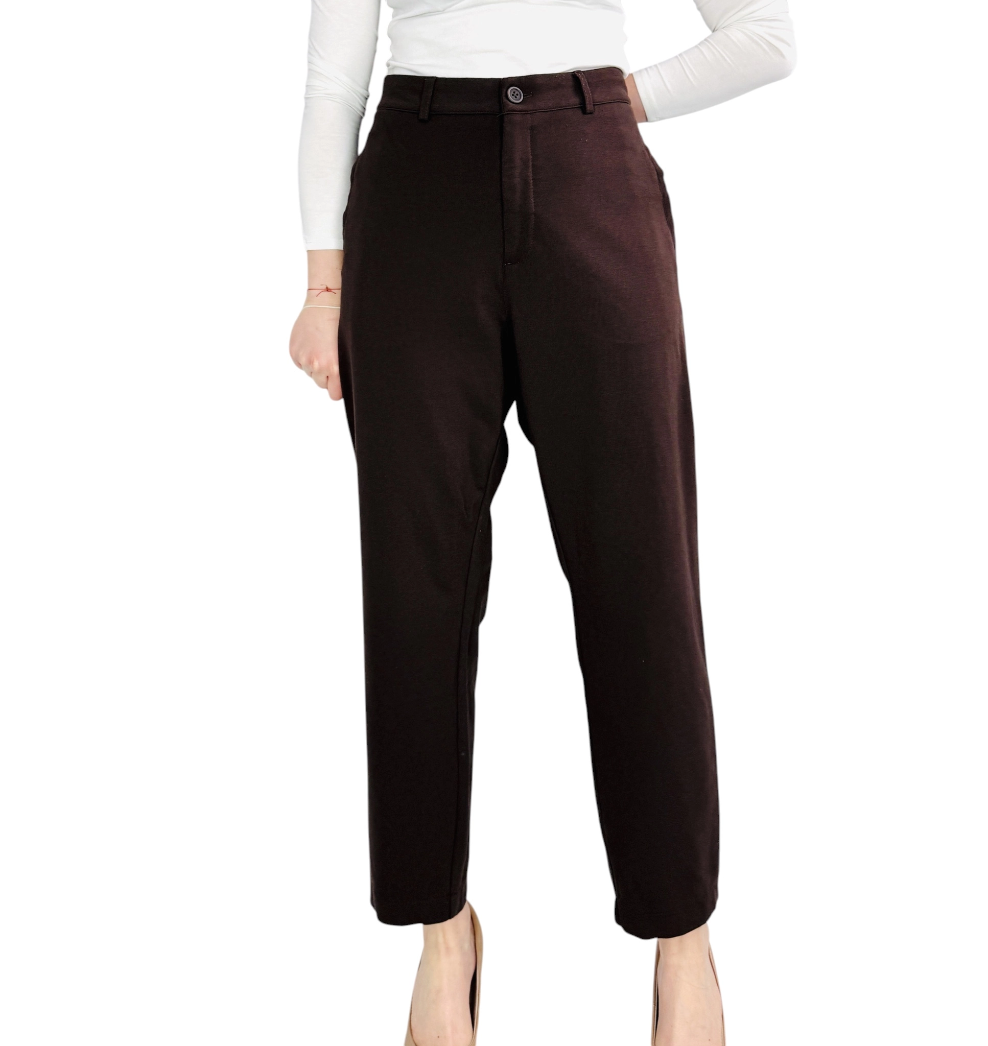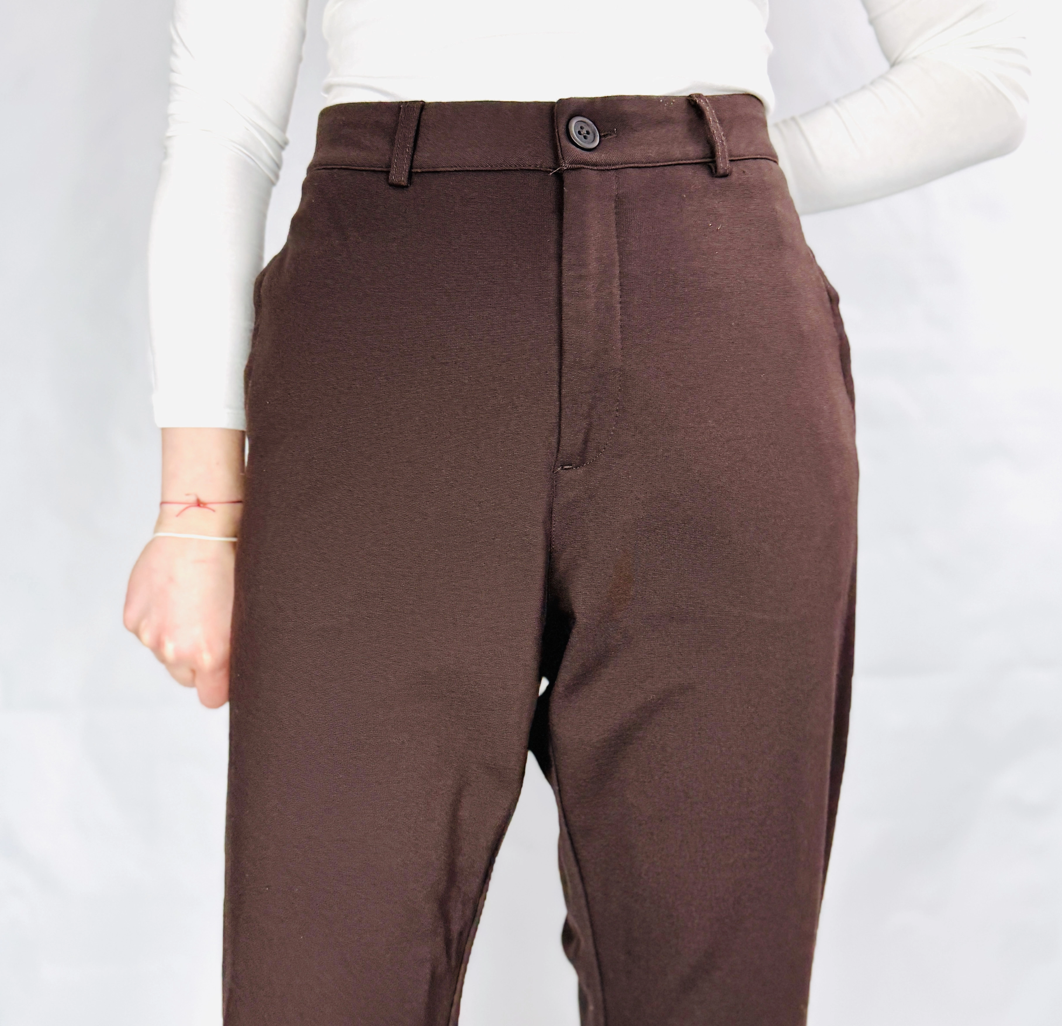 Te brązowe spodnie to kwintesencja klasycznej elegancji w nowoczesnym, niezwykle kobiecym wydaniu. Głęboki, czekoladowy odcień brązu nadaje całości szlachetnego i wyrafinowanego charakteru, sprawiając, że spodnie stają się idealną bazą dla kobiet ceniących stonowaną, a jednocześnie wyrazistą kolorystykę. To model, który emanuje spokojem i profesjonalizmem, oferując sylwetce nienaganny, dopracowany wygląd, który przyciąga wzrok swoją prostotą i wysoką jakością wykonania. Ich ponadczasowa forma sprawia, że są one doskonałym wyborem dla osób budujących kapsułową garderobę, w której królują barwy ziemi i klasyczne kroje.