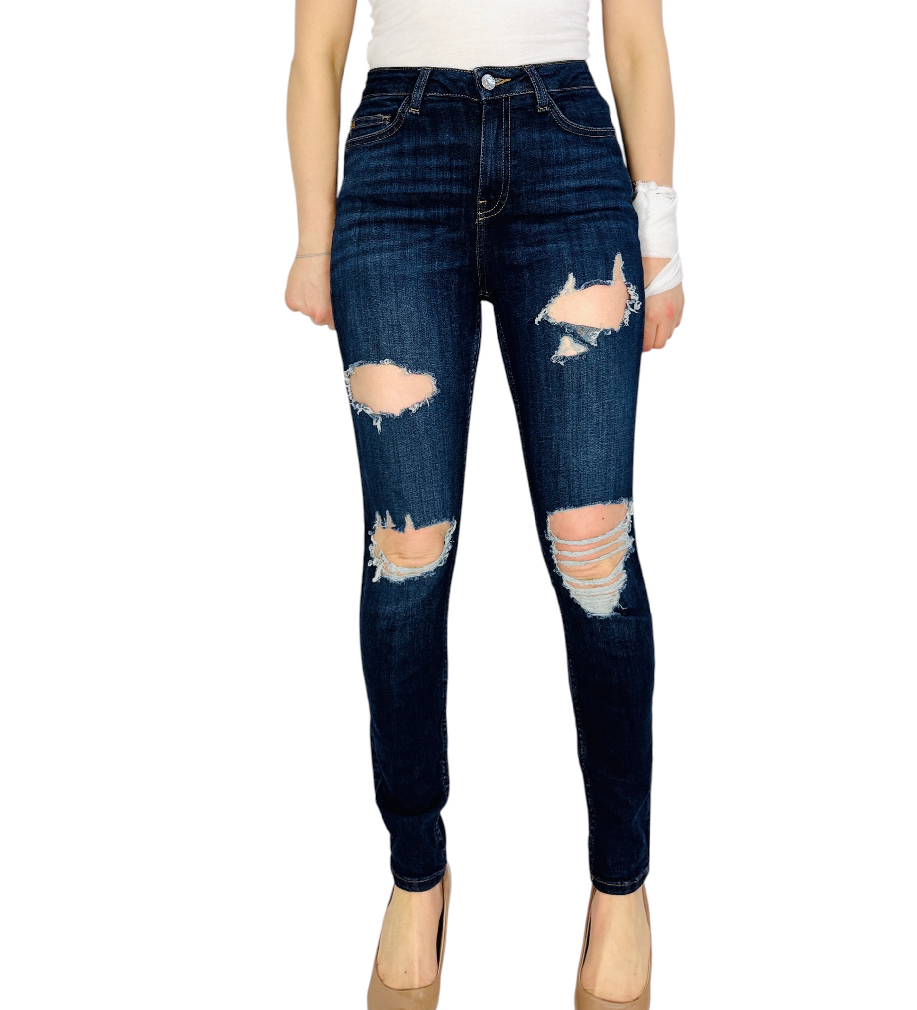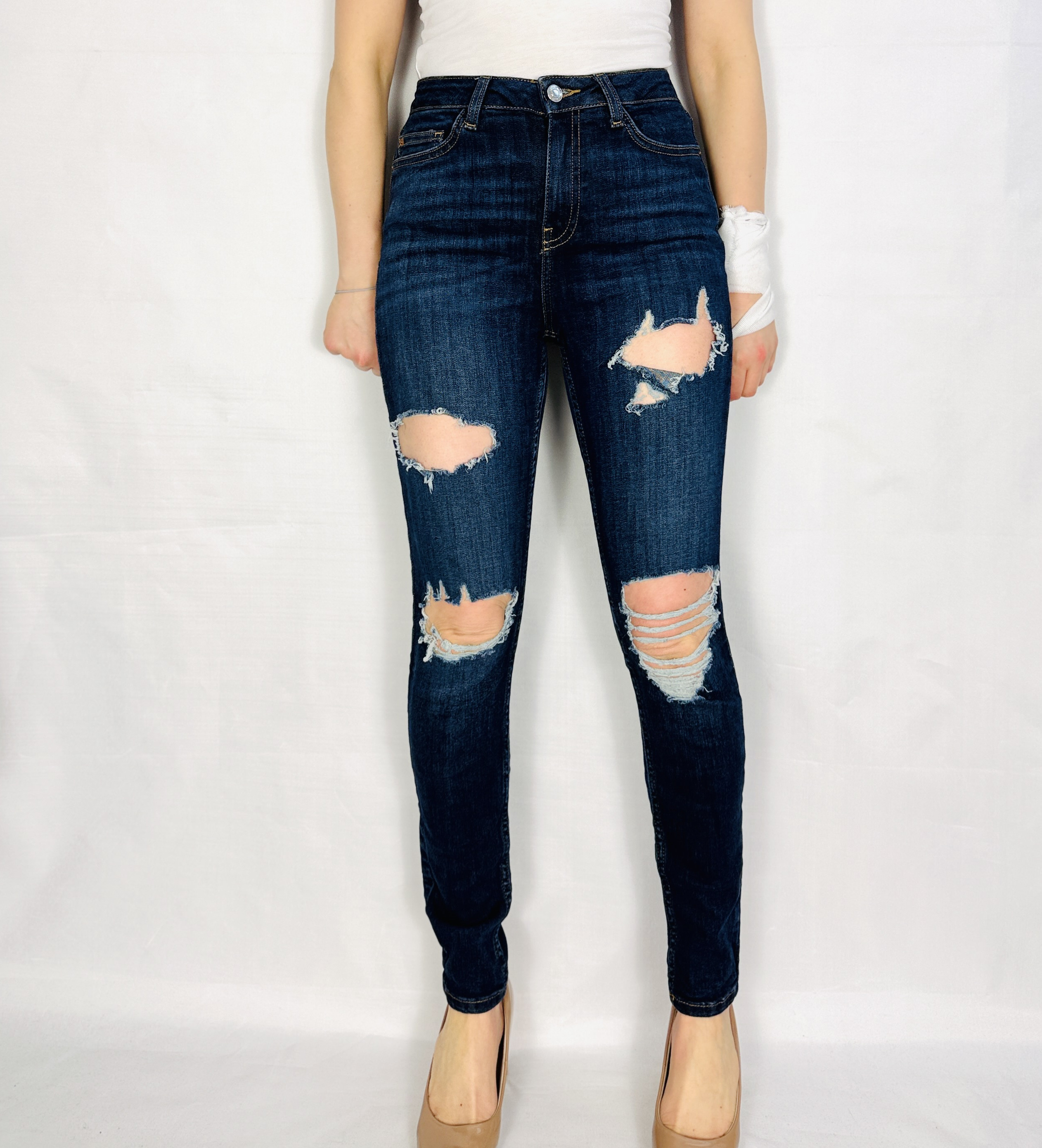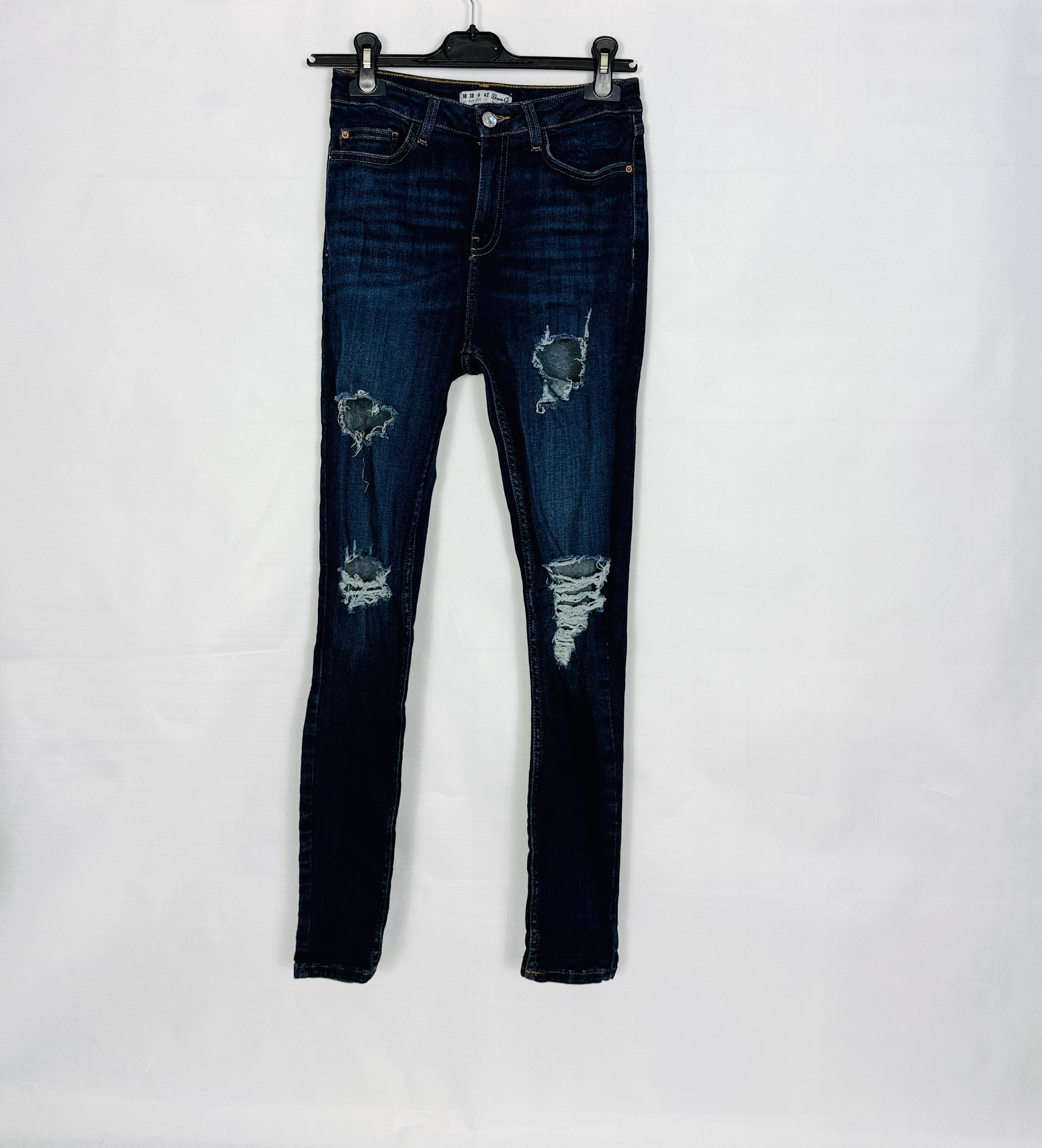Ciemnogranatowe jeansy z przetarciami XS 34